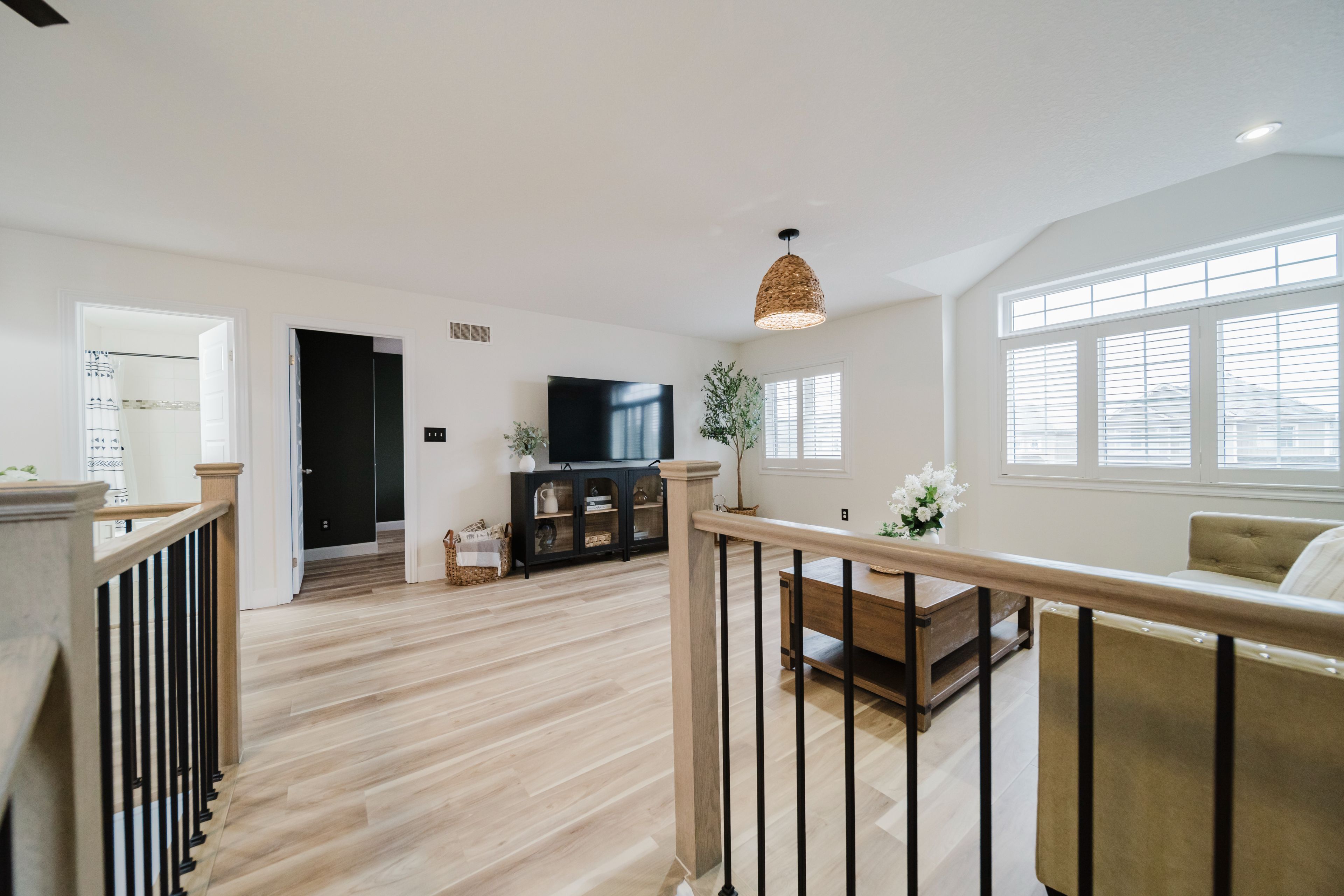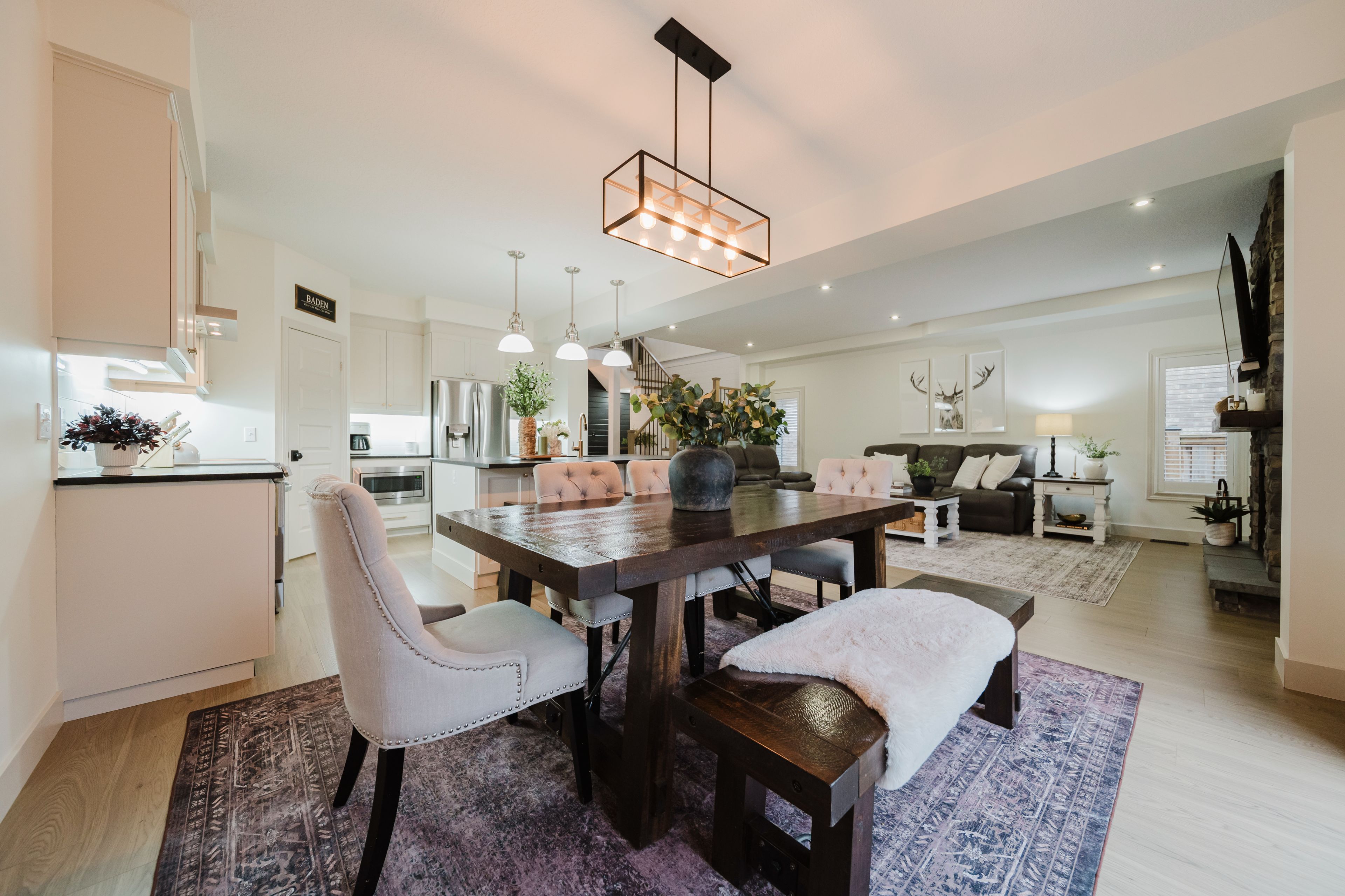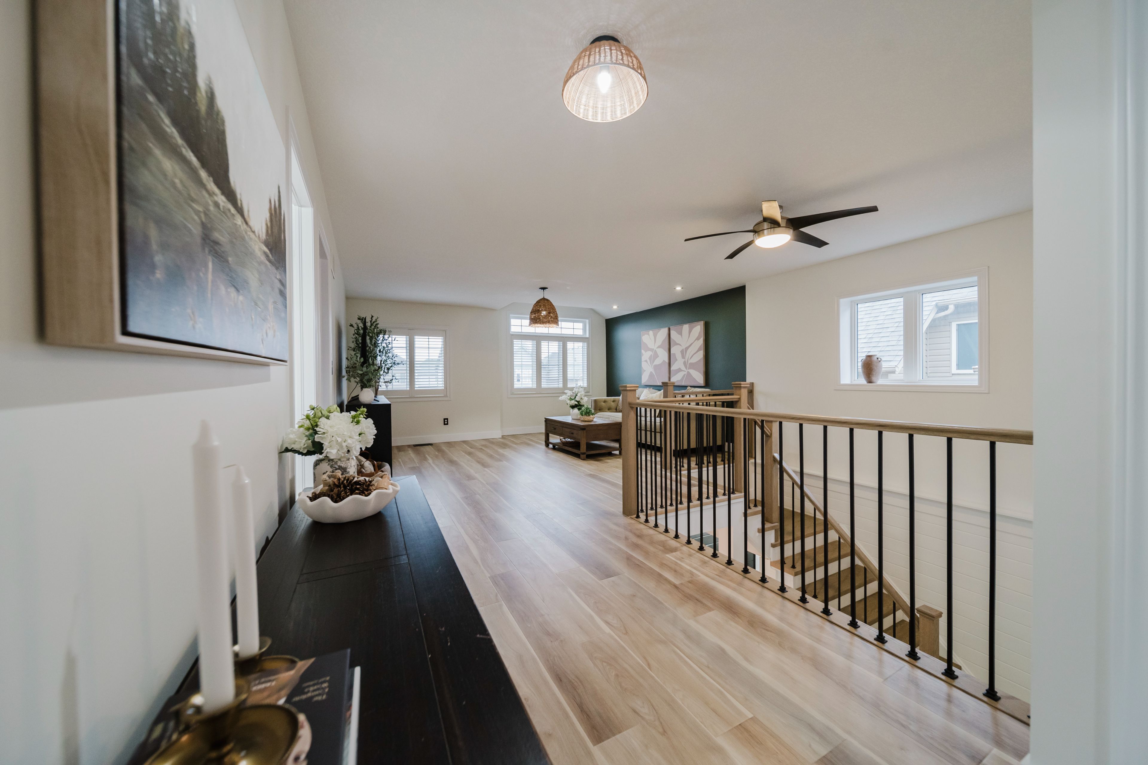 Step into this stunning, designer-inspired home where exceptional craftsmanship and thoughtful design come together to create a warm and inviting aesthetic. From the moment you enter, you'll be captivated by the unparalleled finishes and cohesive style throughout. The living room is anchored by a striking stone gas fireplace, offering both comfort and a beautiful focal point for everyday living and entertaining. The fully renovated kitchen is equally impressive, featuring an oversized island and a custom walk-in pantry-perfect for both functionality and style. A true standout feature of the home is the modern railing, a showstopping architectural element that can be admired from multiple vantage points, adding to the home's open and airy feel. Sleek, contemporary flooring flows seamlessly throughout the entire home, offering a completely carpet-free living experience. With 2,260 sq ft of well-designed living space, this home offers 3 spacious bedrooms with the potential for a 4th (via a converted upper-level living area), 3 bathrooms, and the convenience of second-floor laundry. Two separate living areas provide flexibility for families of all sizes, while california shutters throughout add both elegance and privacy. The unfinished basement is already fully studded and insulated, complete with oversized windows and a bathroom rough-in-offering endless potential to customize and expand your living space. Set on a 40' frontage lot, the exterior is equally impressive, featuring an oversized rear sliding door, a widened driveway with parking for four vehicles, and a 2-car garage with soaring 12' ceilings. Located in a quiet, family-friendly neighbourhood, this home offers the perfect balance of peaceful small-town living with convenient access to nearby city amenities. This home is truly a work of art-one that must be experienced in person to fully appreciate its design, quality, and attention to detail.