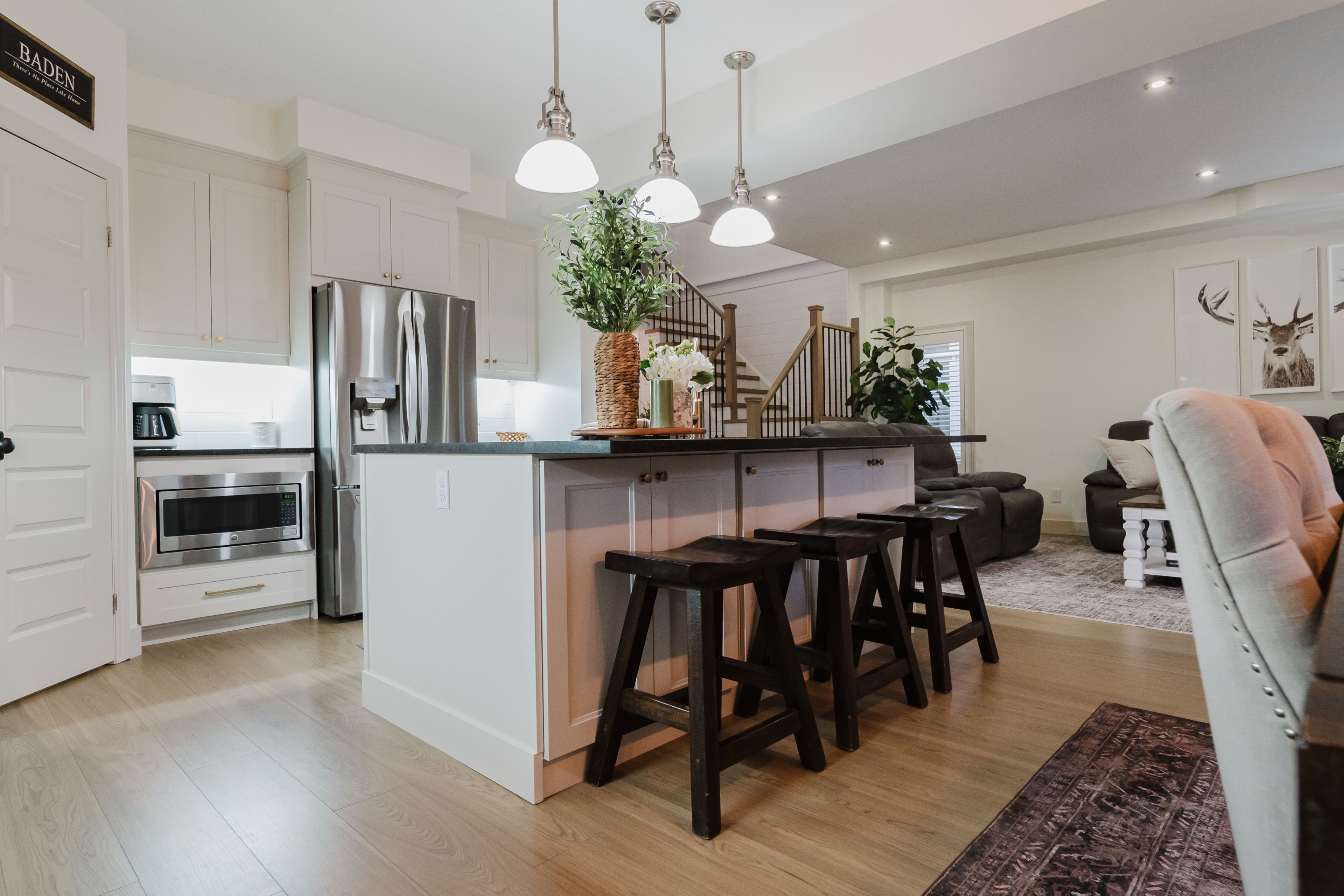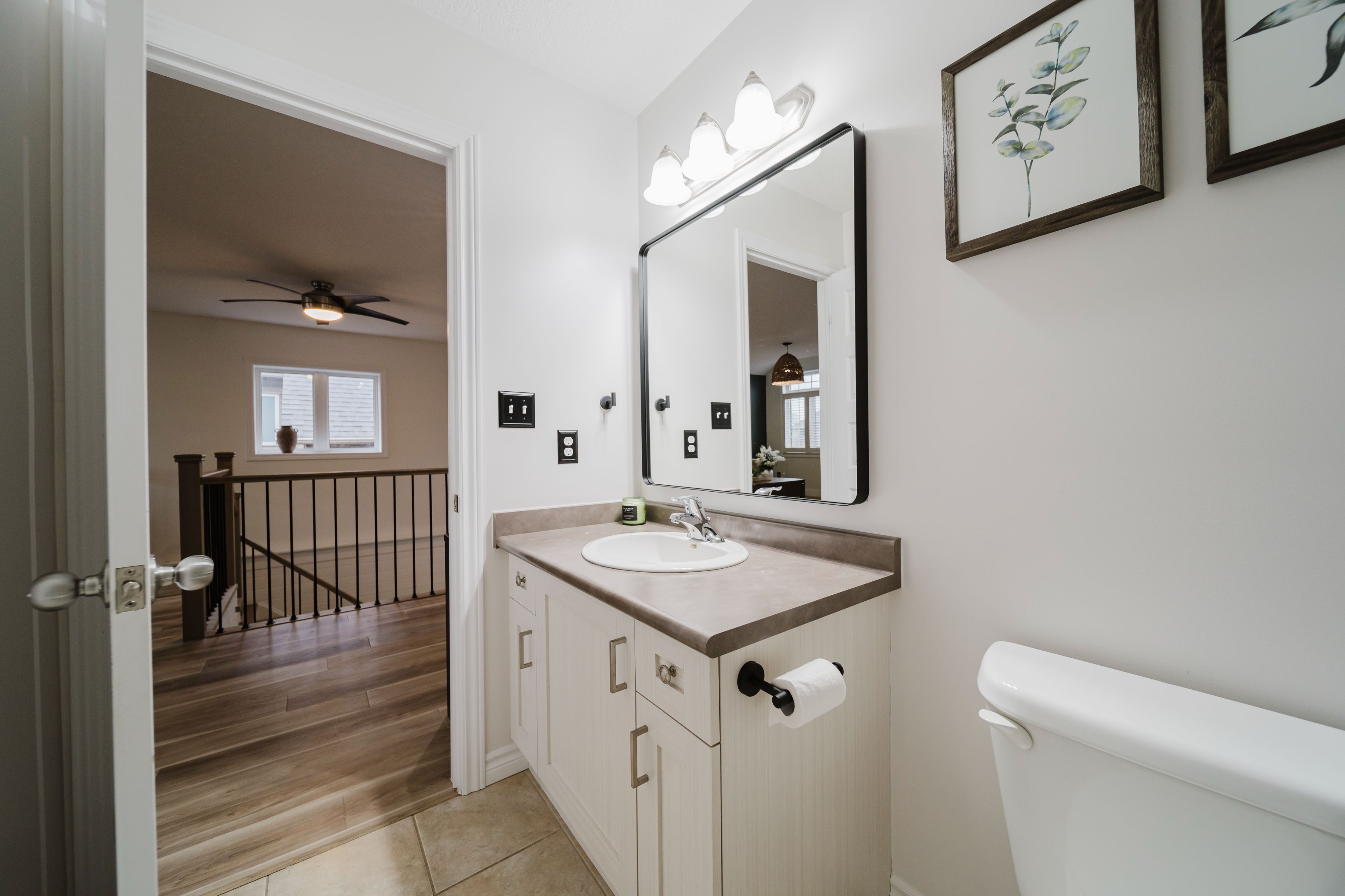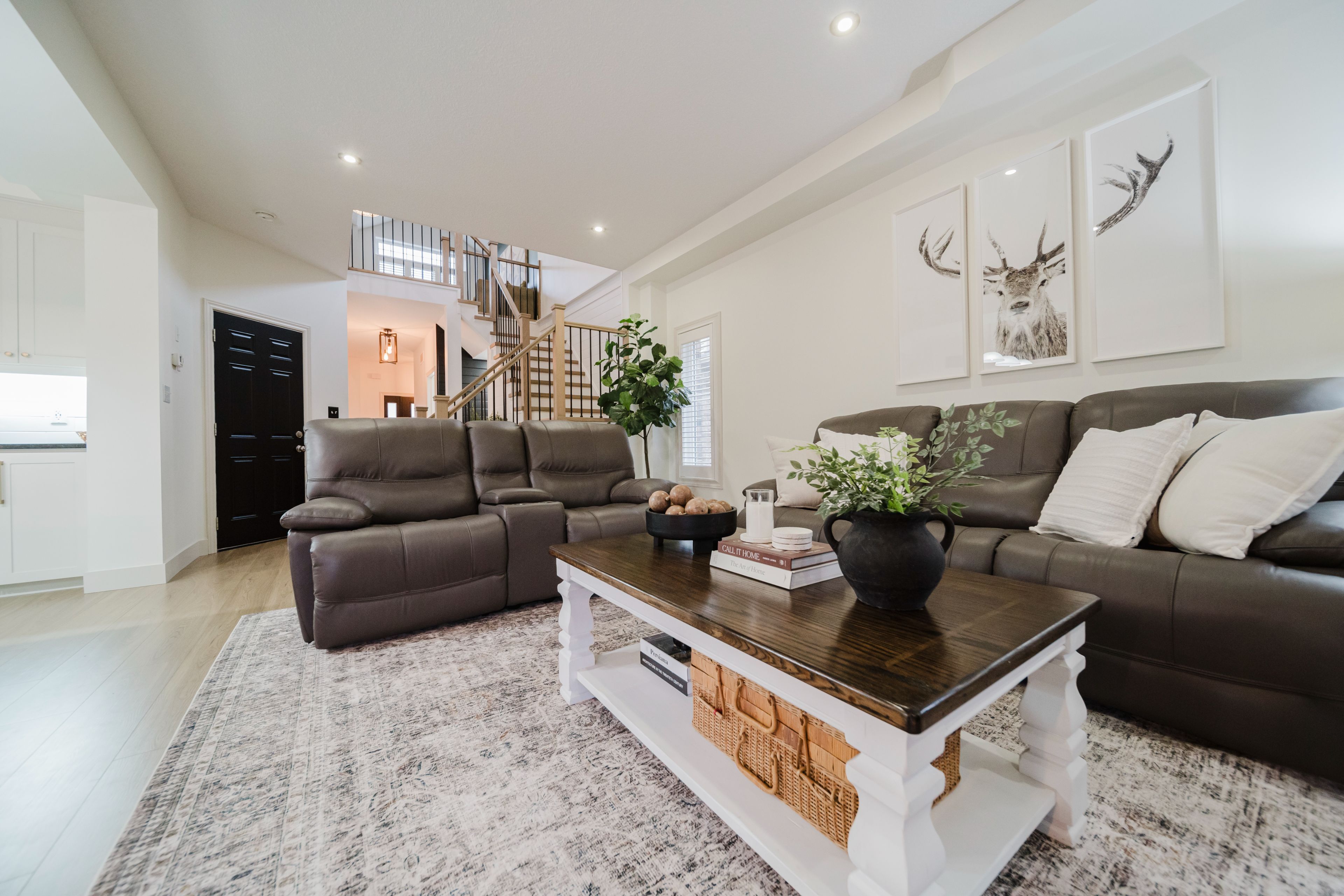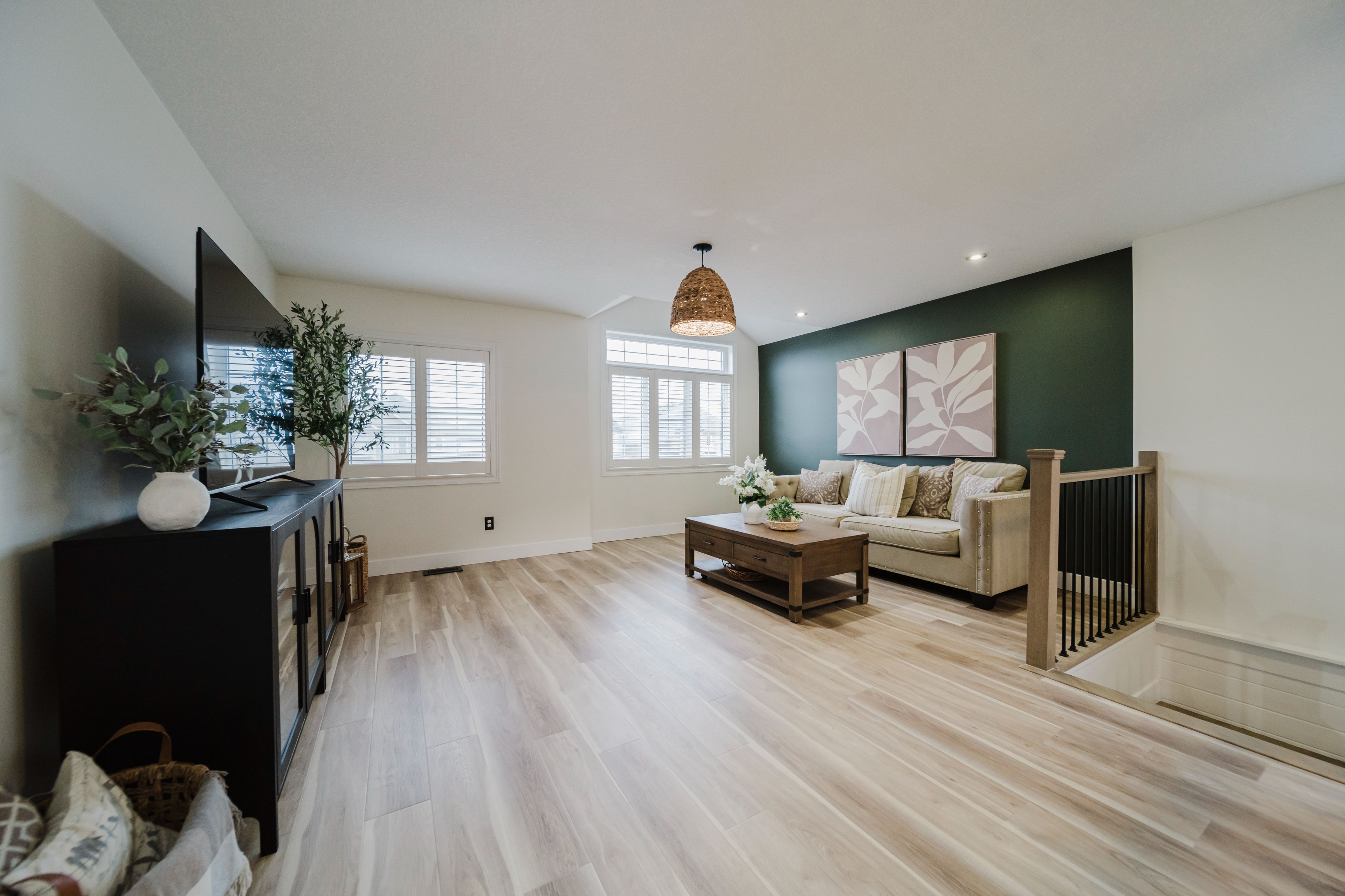 Step into this stunning, designer-inspired home where exceptional craftsmanship and thoughtful design come together to create a warm and inviting aesthetic. From the moment you enter, you'll be captivated by the unparalleled finishes and cohesive style throughout. The living room is anchored by a striking stone gas fireplace, offering both comfort and a beautiful focal point for everyday living and entertaining. The fully renovated kitchen is equally impressive, featuring an oversized island and a custom walk-in pantry-perfect for both functionality and style. A true standout feature of the home is the modern railing, a showstopping architectural element that can be admired from multiple vantage points, adding to the home's open and airy feel. Sleek, contemporary flooring flows seamlessly throughout the entire home, offering a completely carpet-free living experience. With 2,260 sq ft of well-designed living space, this home offers 3 spacious bedrooms with the potential for a 4th (via a converted upper-level living area), 3 bathrooms, and the convenience of second-floor laundry. Two separate living areas provide flexibility for families of all sizes, while california shutters throughout add both elegance and privacy. The unfinished basement is already fully studded and insulated, complete with oversized windows and a bathroom rough-in-offering endless potential to customize and expand your living space. Set on a 40' frontage lot, the exterior is equally impressive, featuring an oversized rear sliding door, a widened driveway with parking for four vehicles, and a 2-car garage with soaring 12' ceilings. Located in a quiet, family-friendly neighbourhood, this home offers the perfect balance of peaceful small-town living with convenient access to nearby city amenities. This home is truly a work of art-one that must be experienced in person to fully appreciate its design, quality, and attention to detail.