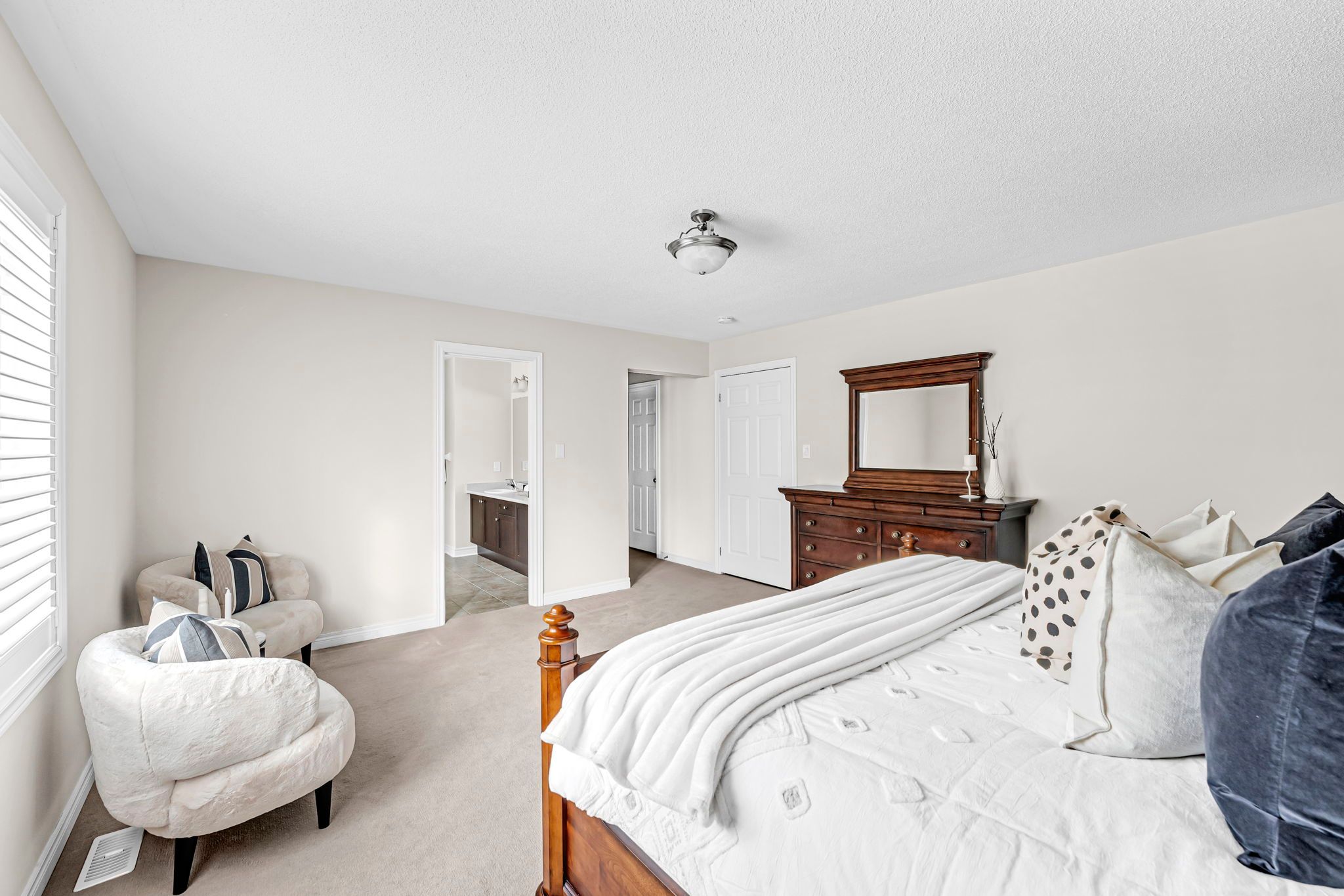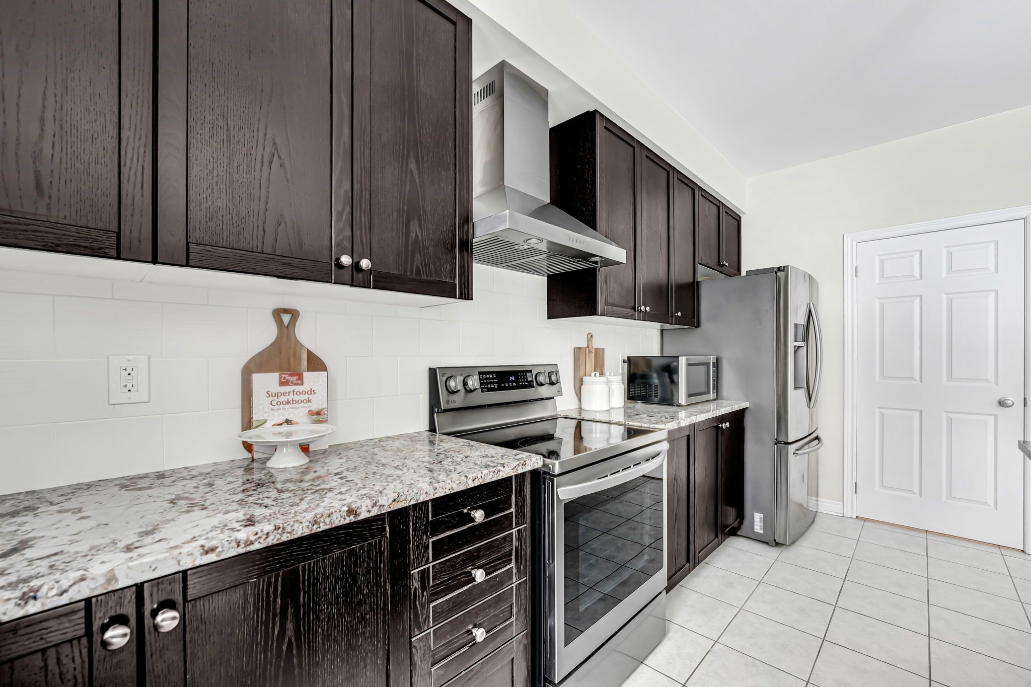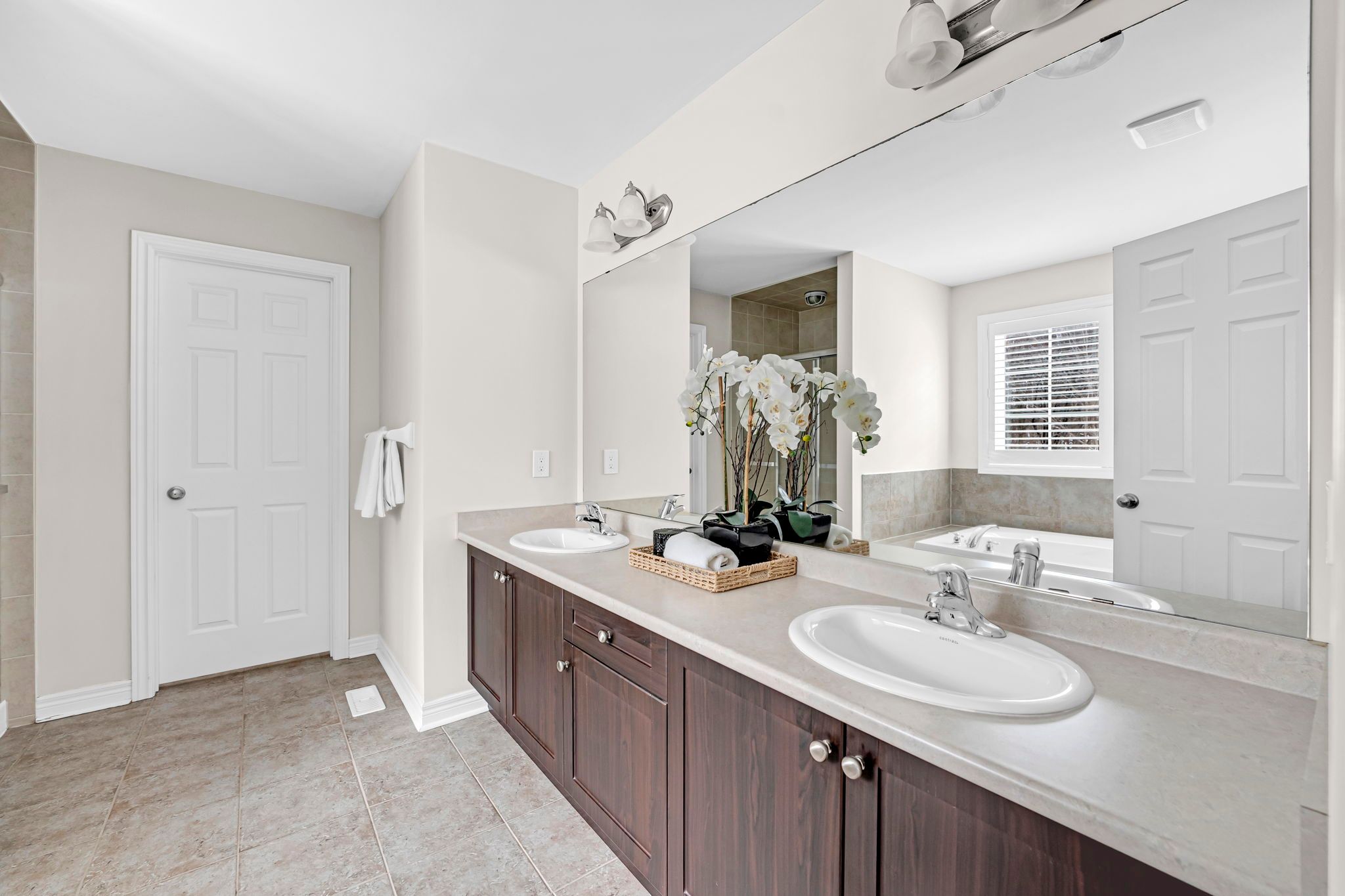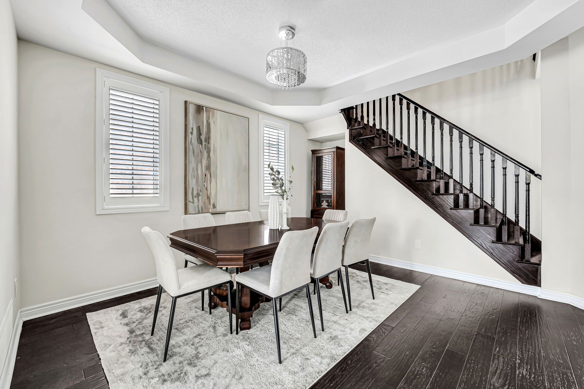 Welcome to this stunning luxury home in the highly sought-after harper hills community of ajax, is situated on a premium ravine lot and impeccably maintained by the original owners.. Offering a functional 3+1 bedroom layout and 5 bathrooms, this home was originally designed as a 4-bedroom plan and thoughtfully converted with the builder into a spacious 3-bedroom design, with the option to easily revert. Each bedroom features its own full ensuite and large closet. The main floor boasts upgraded hardwood floors, high ceilings, a formal dining area, separate living room, and a bright open-concept family room with a fireplace and large windows. The modern kitchen includes newer stainless steel appliances, a large centre island, and a sun-filled breakfast area. The finished basement offers a large living area, an additional bedroom, a 3-piece bathroom, oversized windows, and ample storage. Enjoy a premium ravine lot offering exceptional privacy and a peaceful natural setting conveniently located near schools, shopping, medical facilities, restaurants, and quick access to hwy 401 & 412.