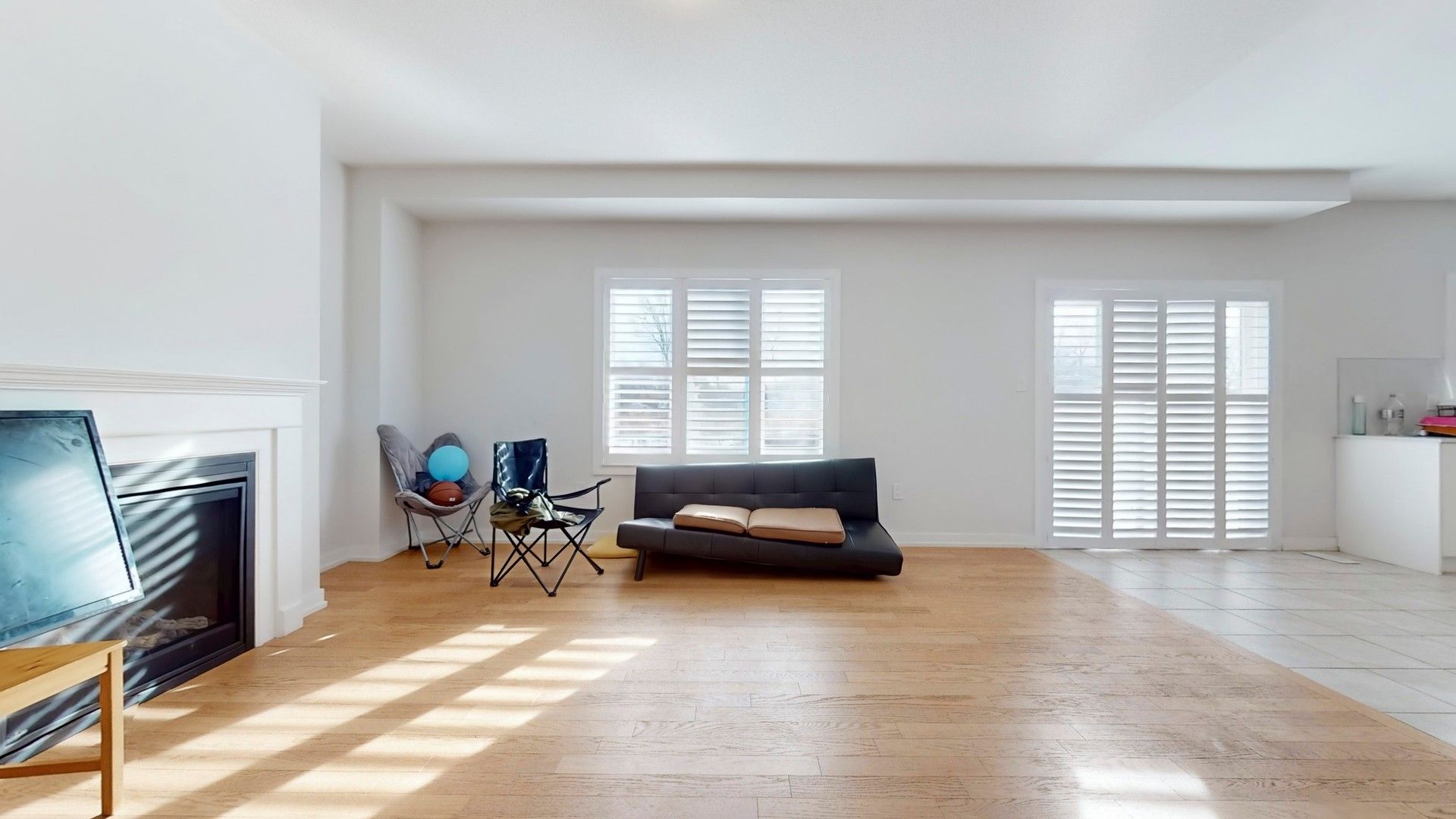 • Cozy living room featuring a fireplace for ambiance.