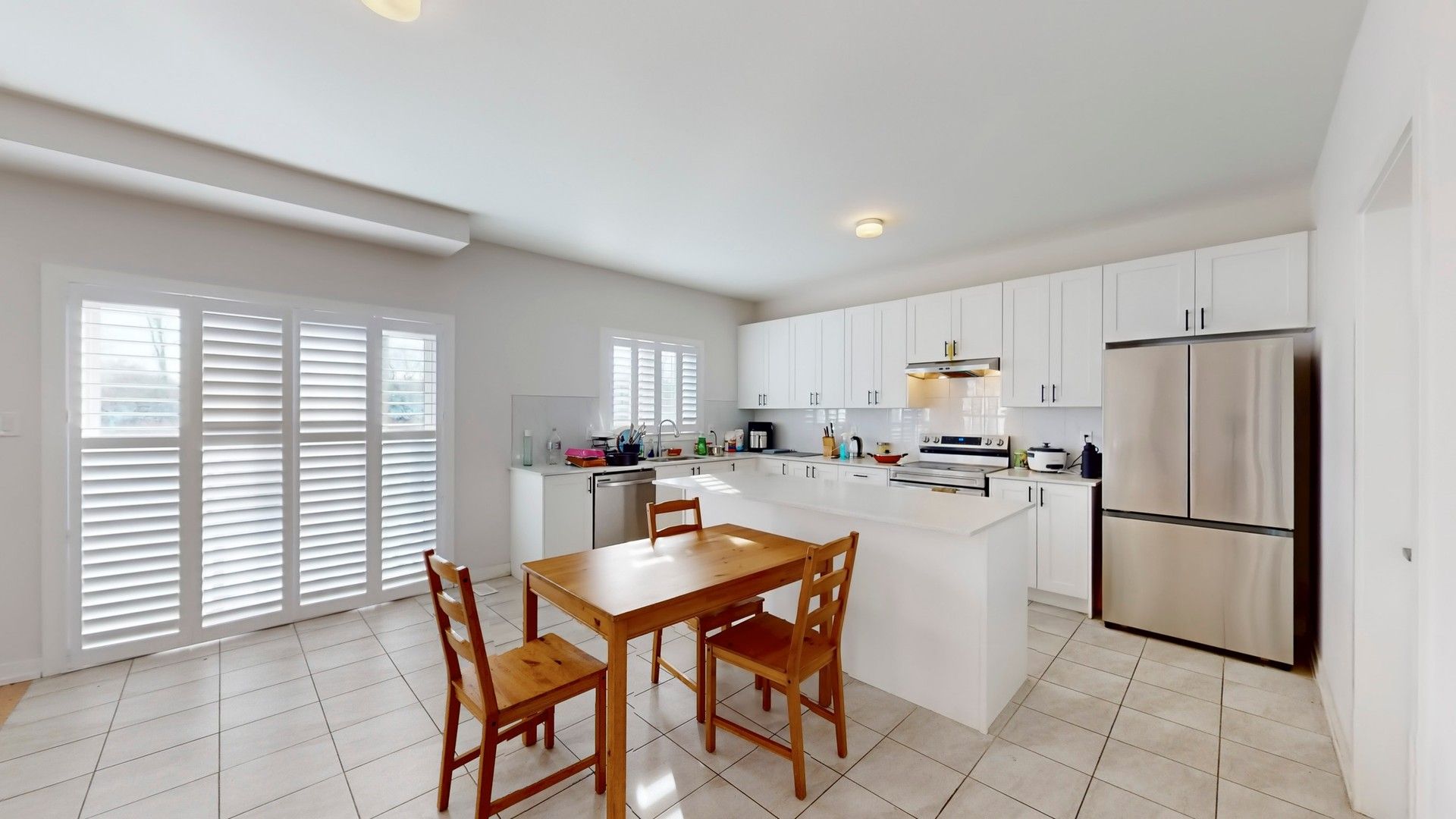 • Modern kitchen equipped with stainless steel appliances.