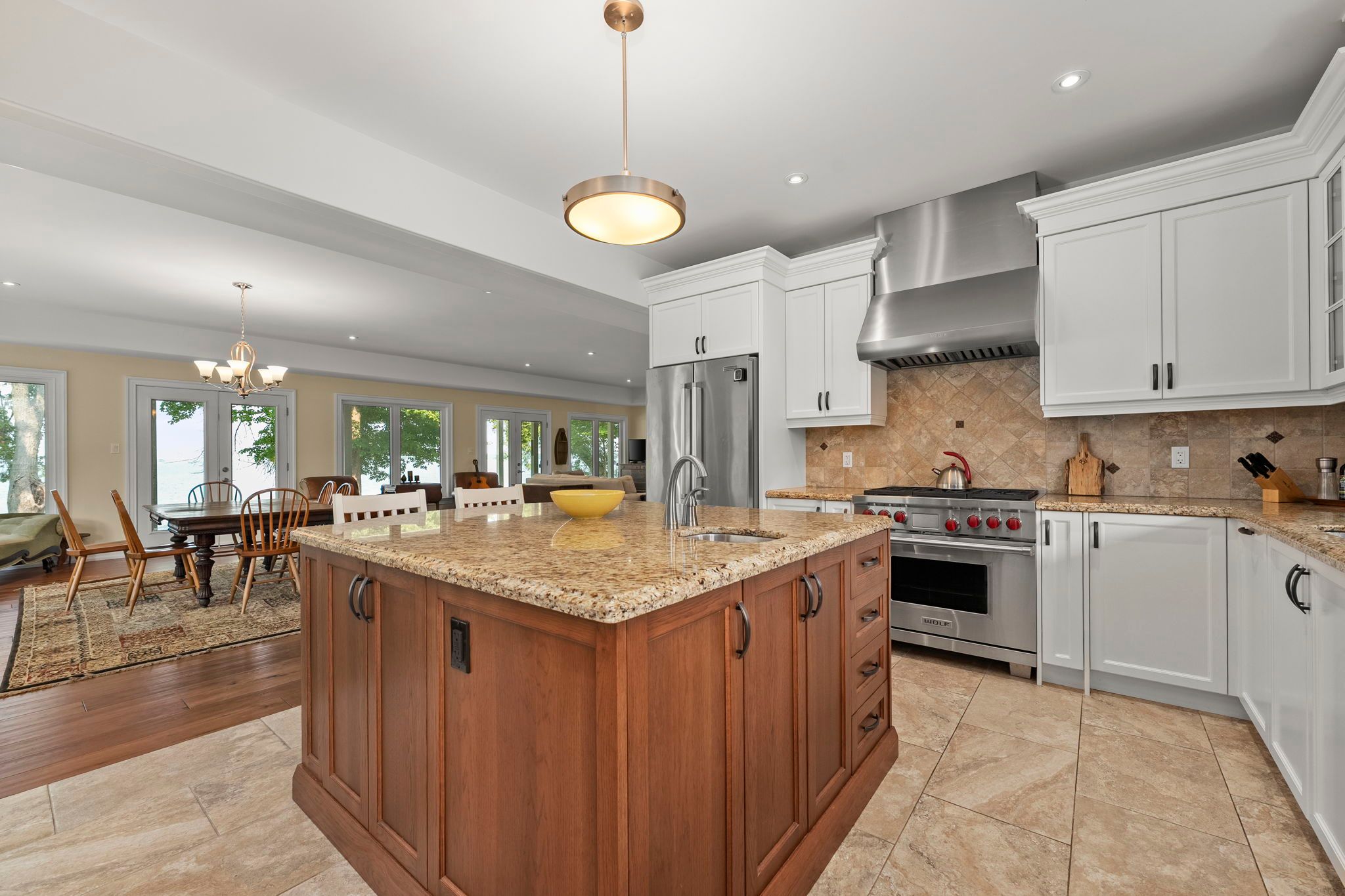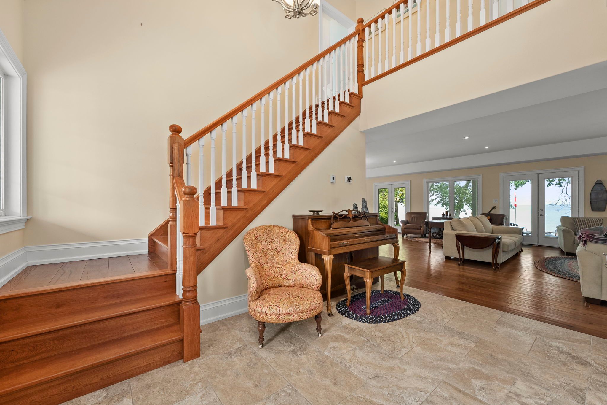 Subtype DetachedIndoor Features Auto Garage Door Remote, Built-In Oven, Generator - Full, Primary Bedroom - Main Floor, Sump Pump, Water Softener, Ventilation System, Water Heater Owned, Water TreatmentOutdoor Features Deck, Landscaped, Porch, Patio, Year Round Living, Privacy, FishingAmenities Beach, Golf, Lake Access, Marina, School, WaterfrontOwnership FreeholdViews Lake, Water, Clear, PanoramicWaterfront DirectBasement UnfinishedFoundation Poured ConcreteHeating / Cooling Forced AirHeating Fuel GasSewer Septic