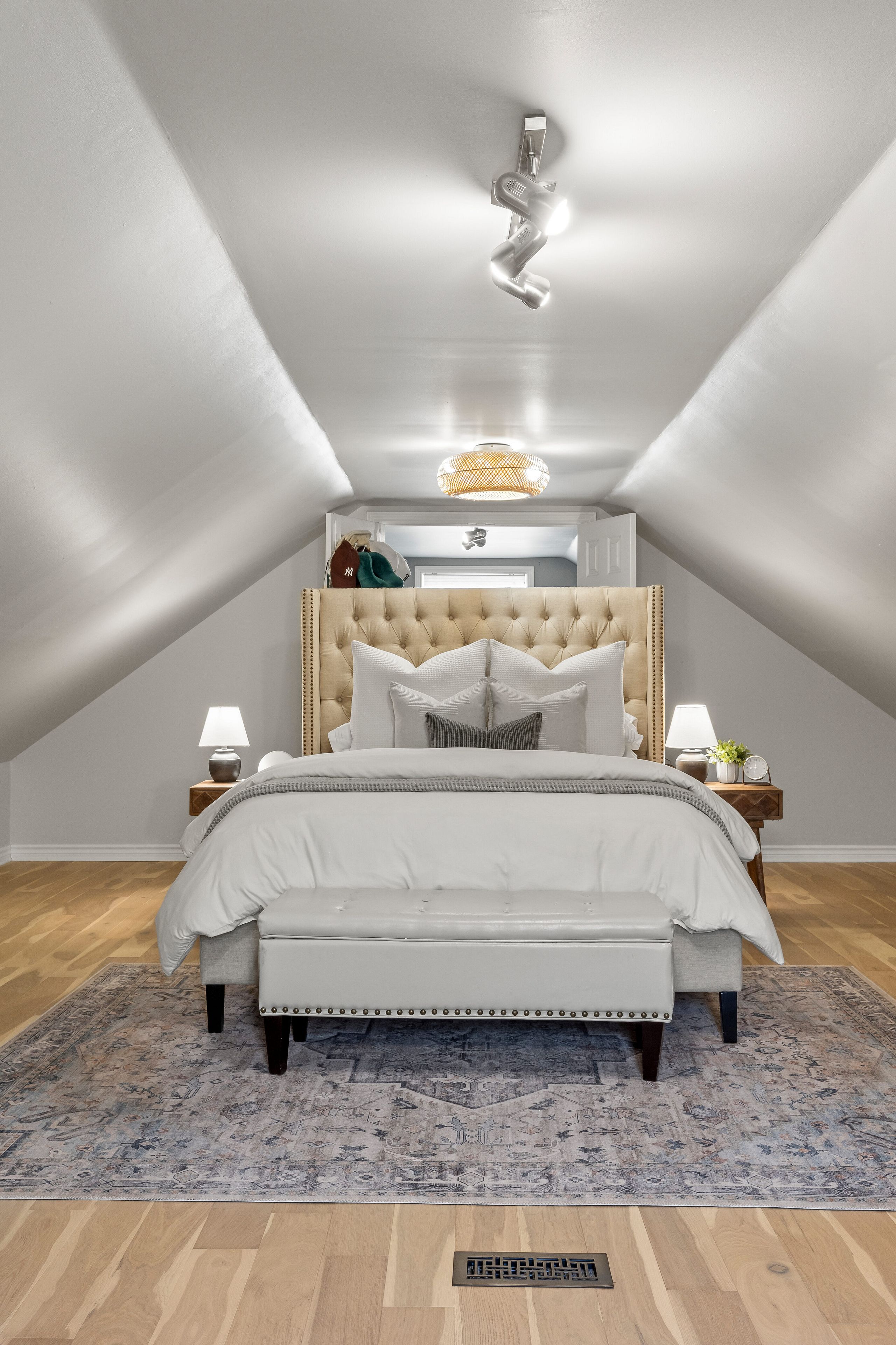 • Private upstairs retreat with walk-in closet and Juliet balcony overlooking the yard.
