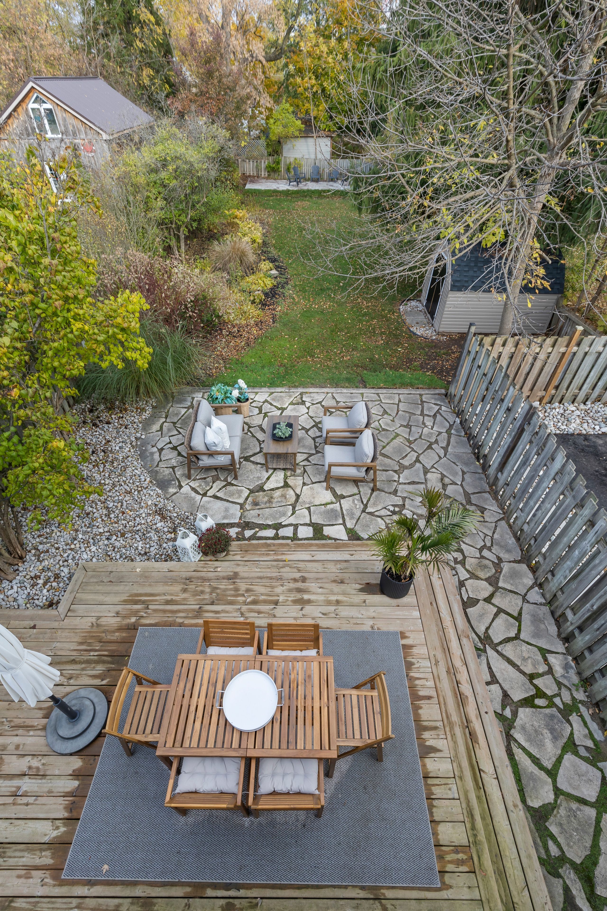 Beautifully updated home with separate granny suite in sought-after old south! Step inside to an open- concept main level featuring an inviting living area ideal for both everyday living and entertaining. The spacious living room showcases an updated gas fireplace, large front window with charming leaded glass accents, and seamless flow into the showstopping kitchen. The kitchen boasts quartz countertops, stainless steel appliances including a wine fridge, coffee bar, open shelving, ample cabinetry, and a large island with plenty of seating. The main floor also offers convenient laundry, a bright bedroom, and a modern 4-piece bath. Upstairs, discover a private retreat currently used as the primary suite, complete with hardwood flooring, a generous walk-in closet and juliet balcony overlooking the tranquil backyard. Laminate flooring throughout the main level adds a cohesive, modern touch to this character-filled home. The fully finished lower level features a beautifully updated one-bedroom granny suite with its own laundry and storage- perfect for extended family, guests, or potential rental income. Outdoor living is a delight with a spacious backyard featuring a deck and flagstone patio, as well as a welcoming front porch ideal for morning coffee on the quiet, tree-lined street. This home blends timeless charm with thoughtful modern updates, all within walking distance to wortley village's shops, cafes, parks, and transit. Updates include: roof (2022), electrical (2017), waterproofing (2017), basement windows (2017, except bath and stairs), furnace (approx. 2004), kitchen & kitchen appliances (2022), main level flooring (2022), second level hardwood (2021).