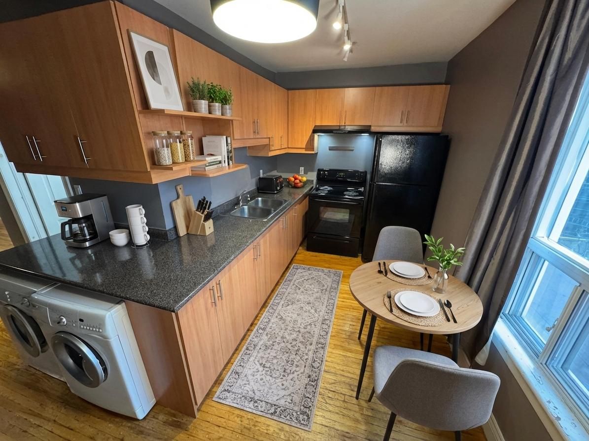 • Convenient in-unit Euro washer and dryer for easy laundry.