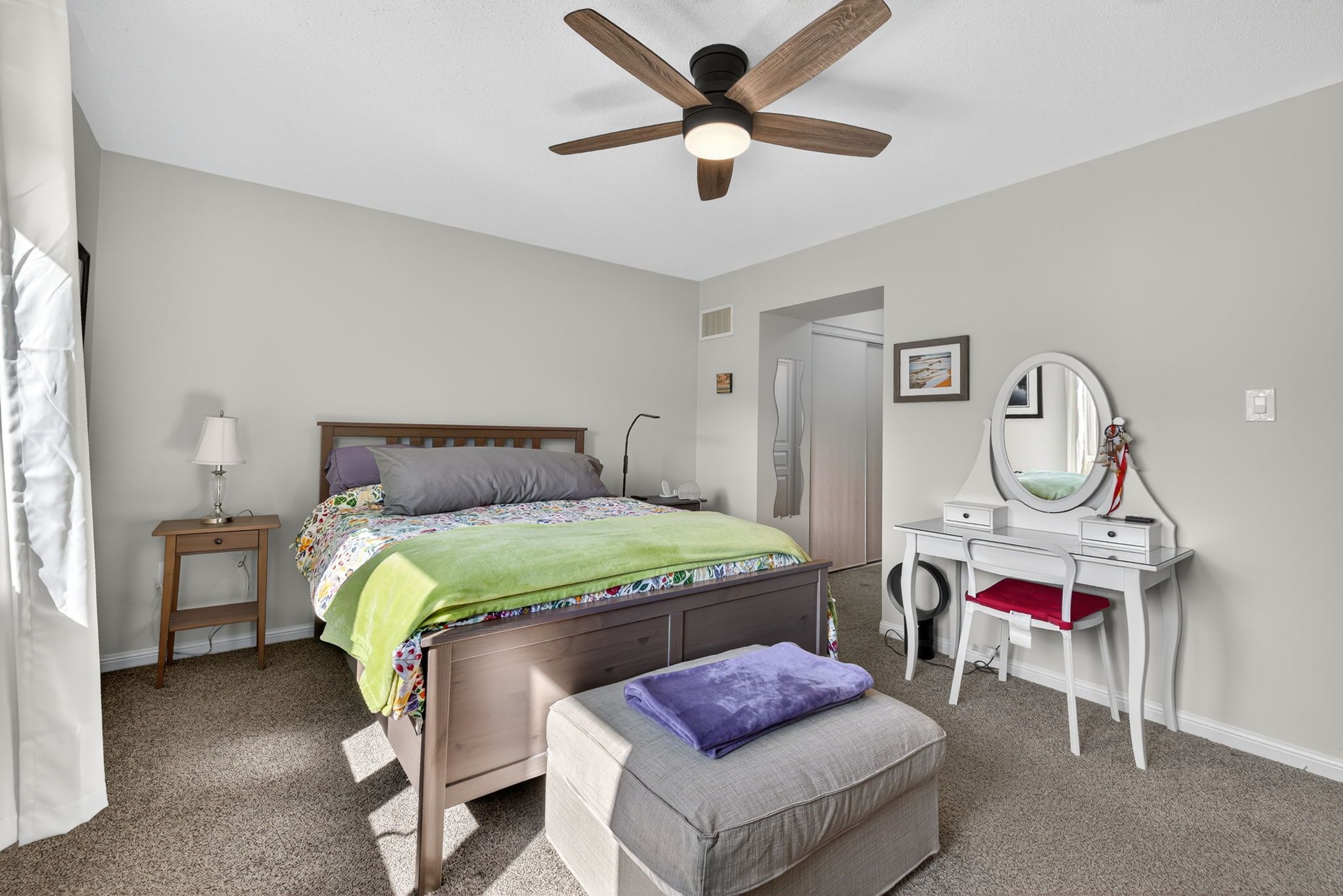 • Primary bedroom includes a private ensuite and double closets for convenience.