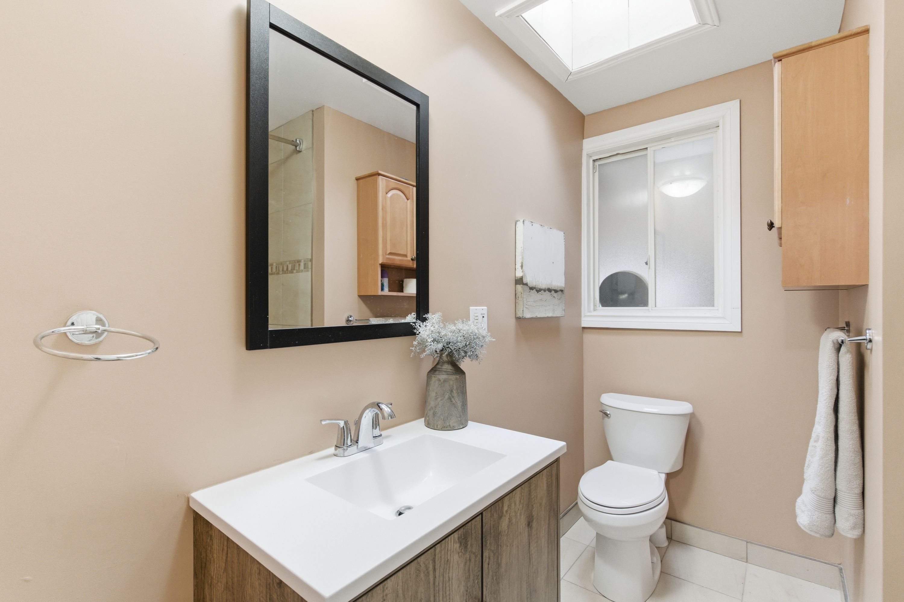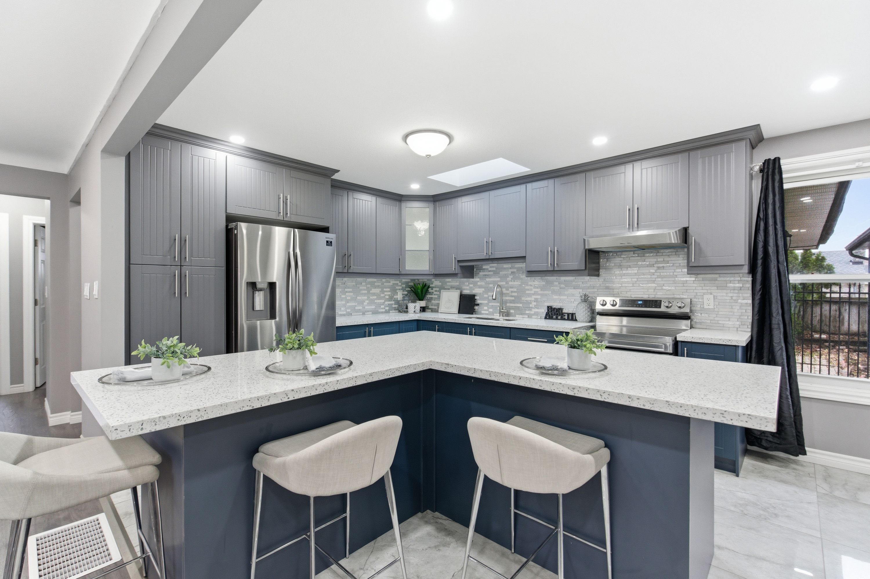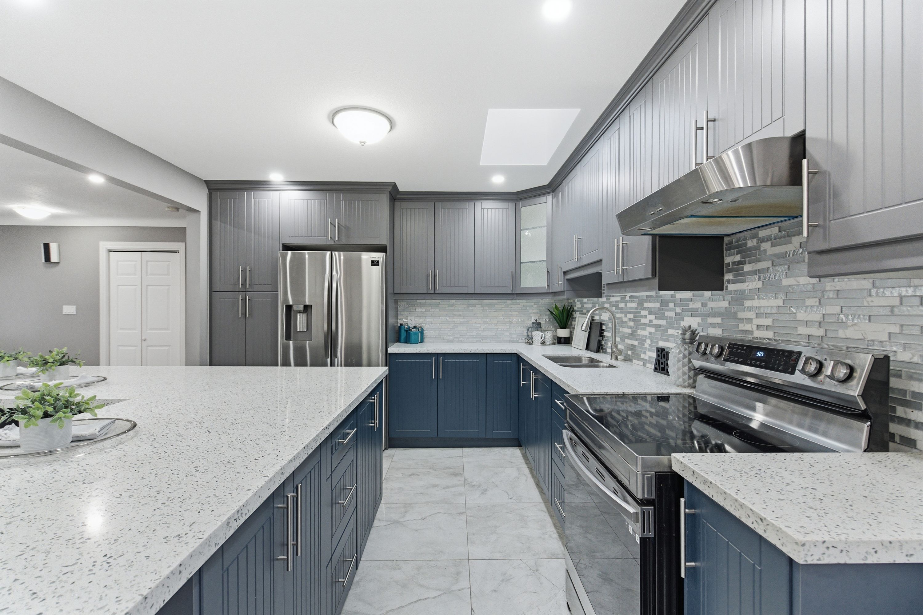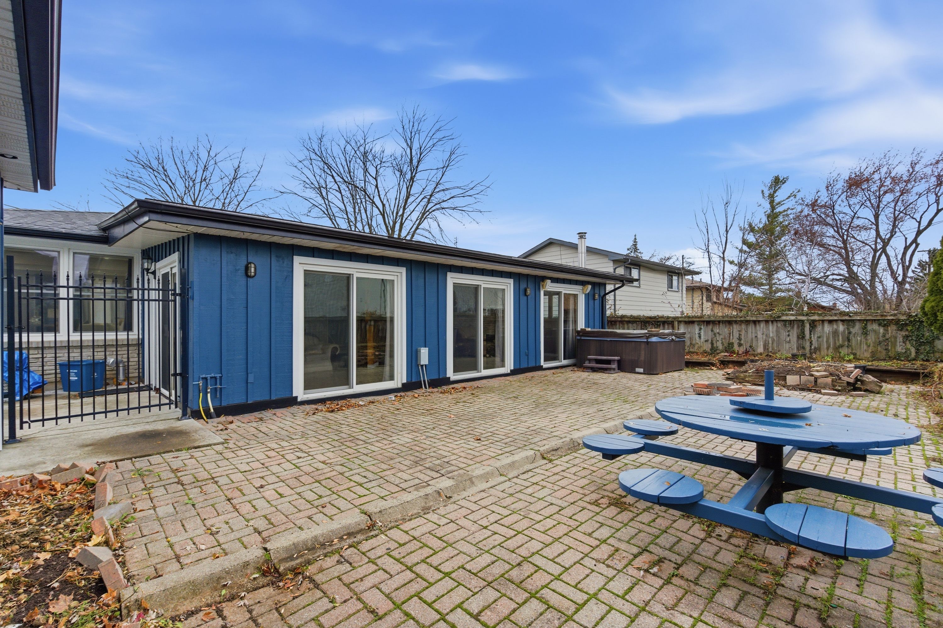 • Bright sunroom with skylight and easy access to the fenced backyard.