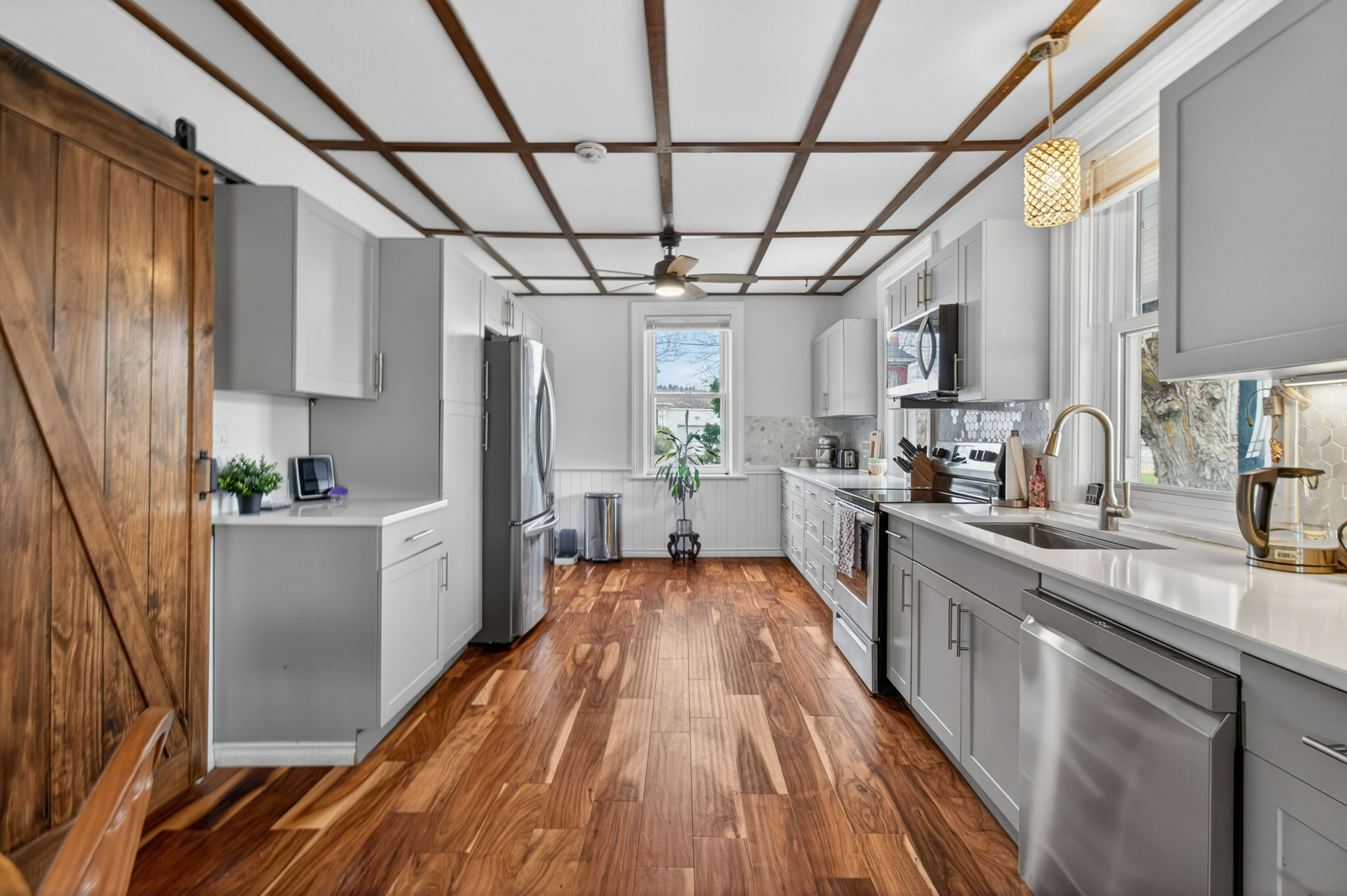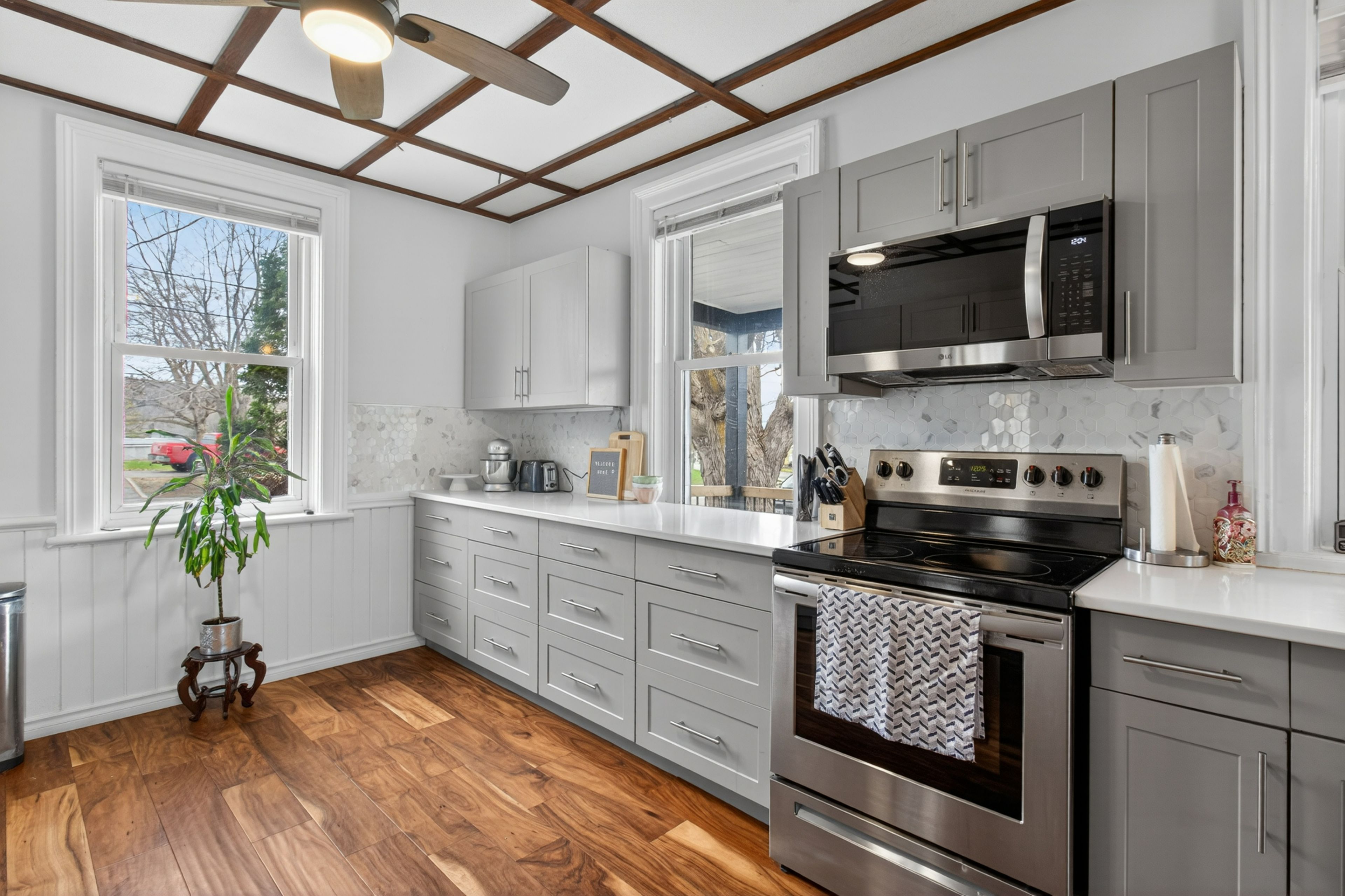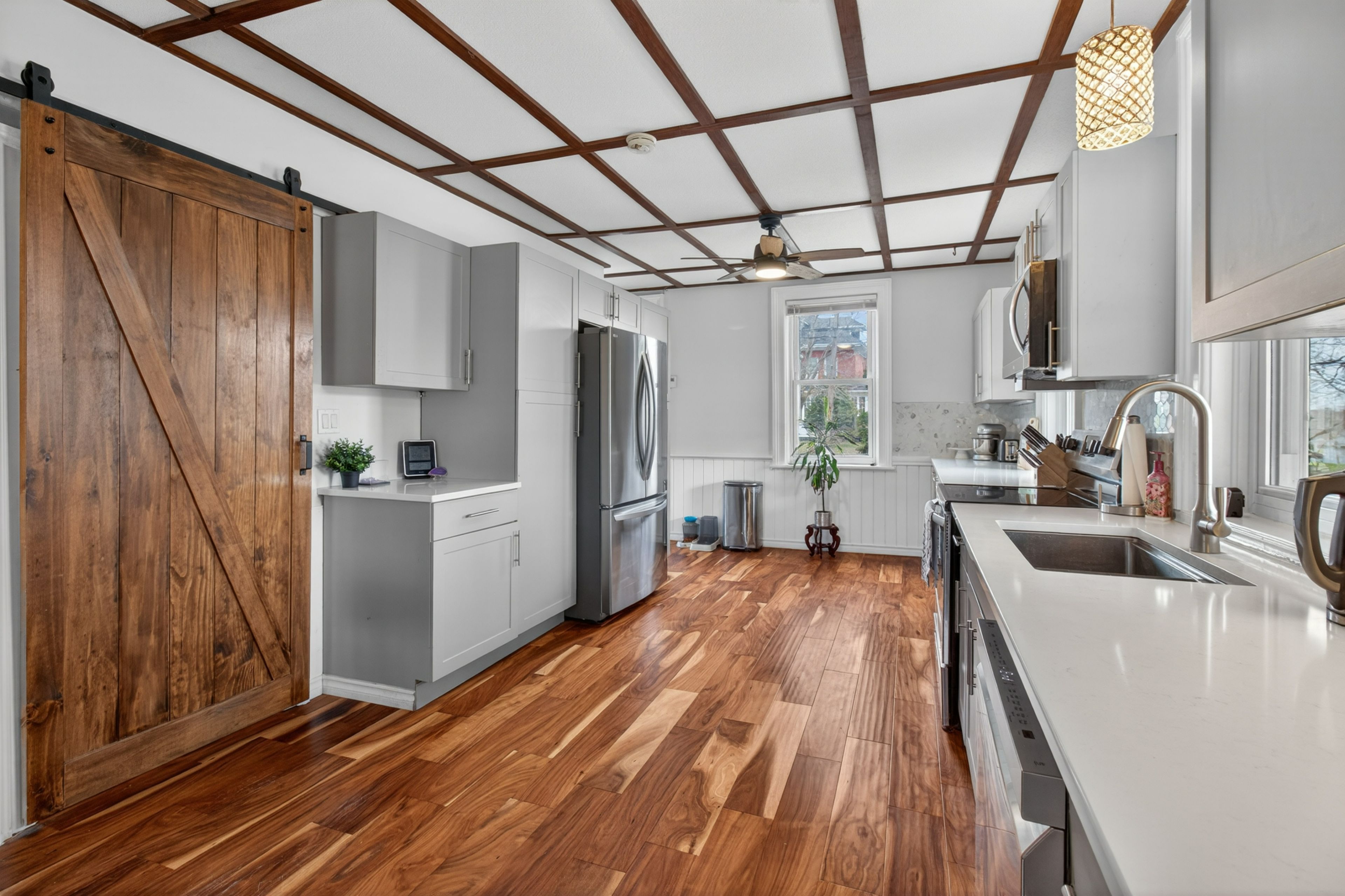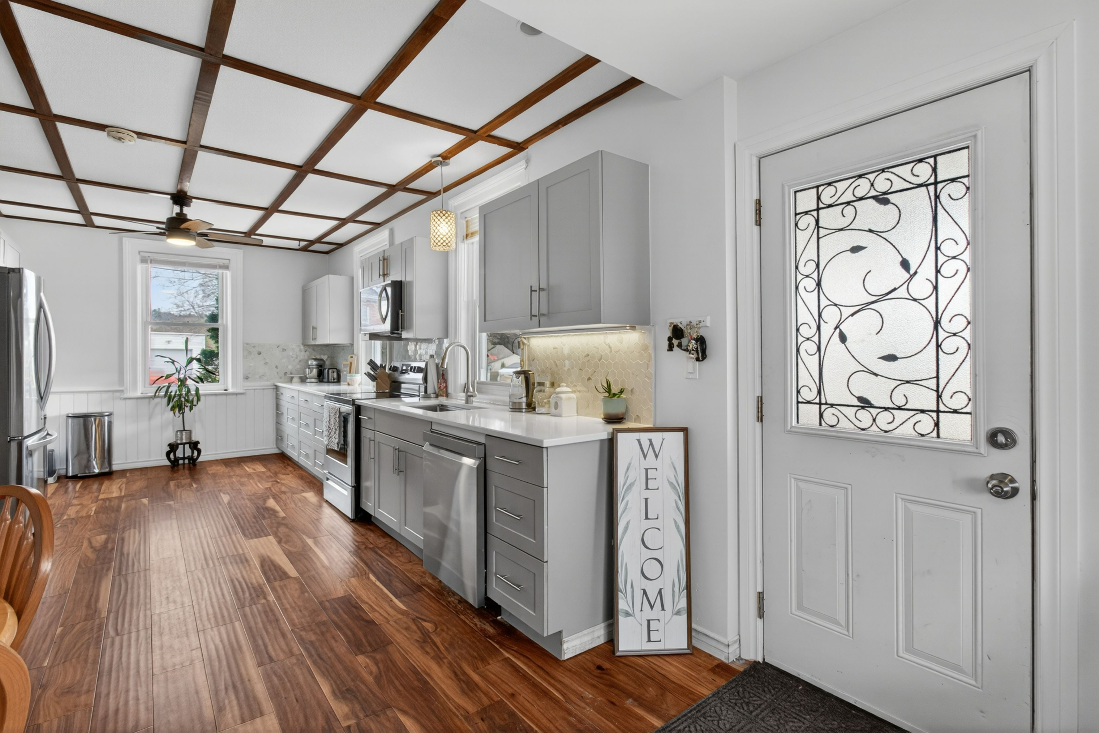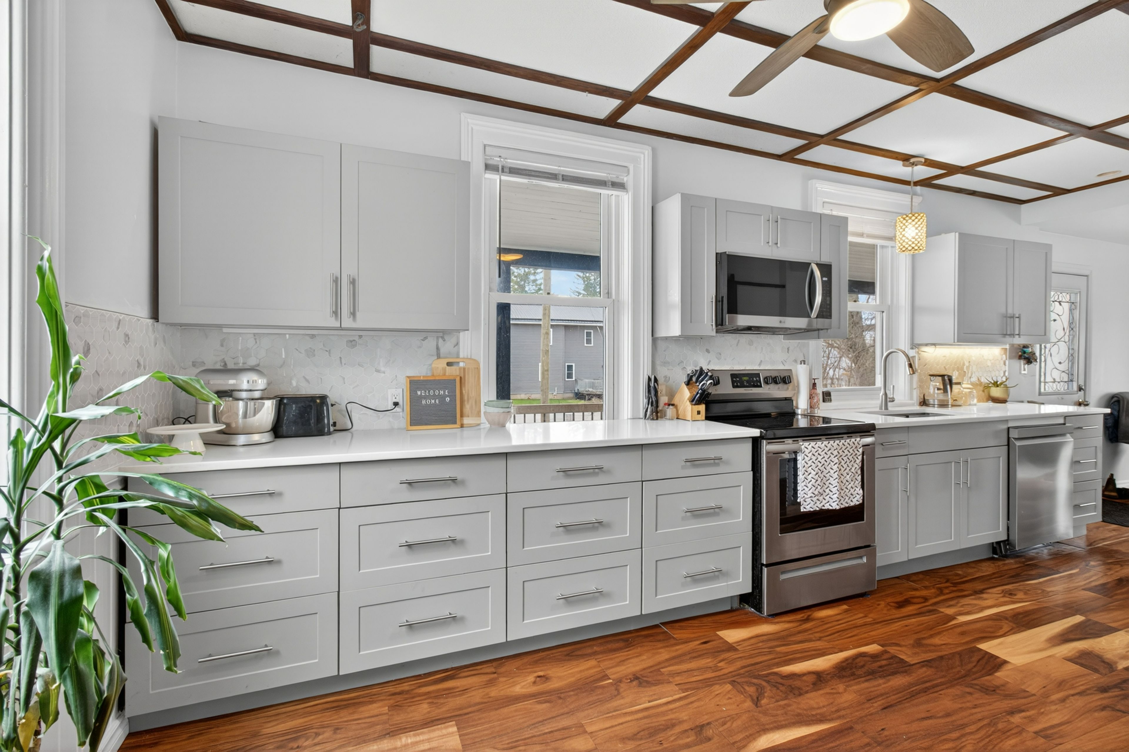 • Elegant kitchen with new appliances and quartz countertops for entertaining.