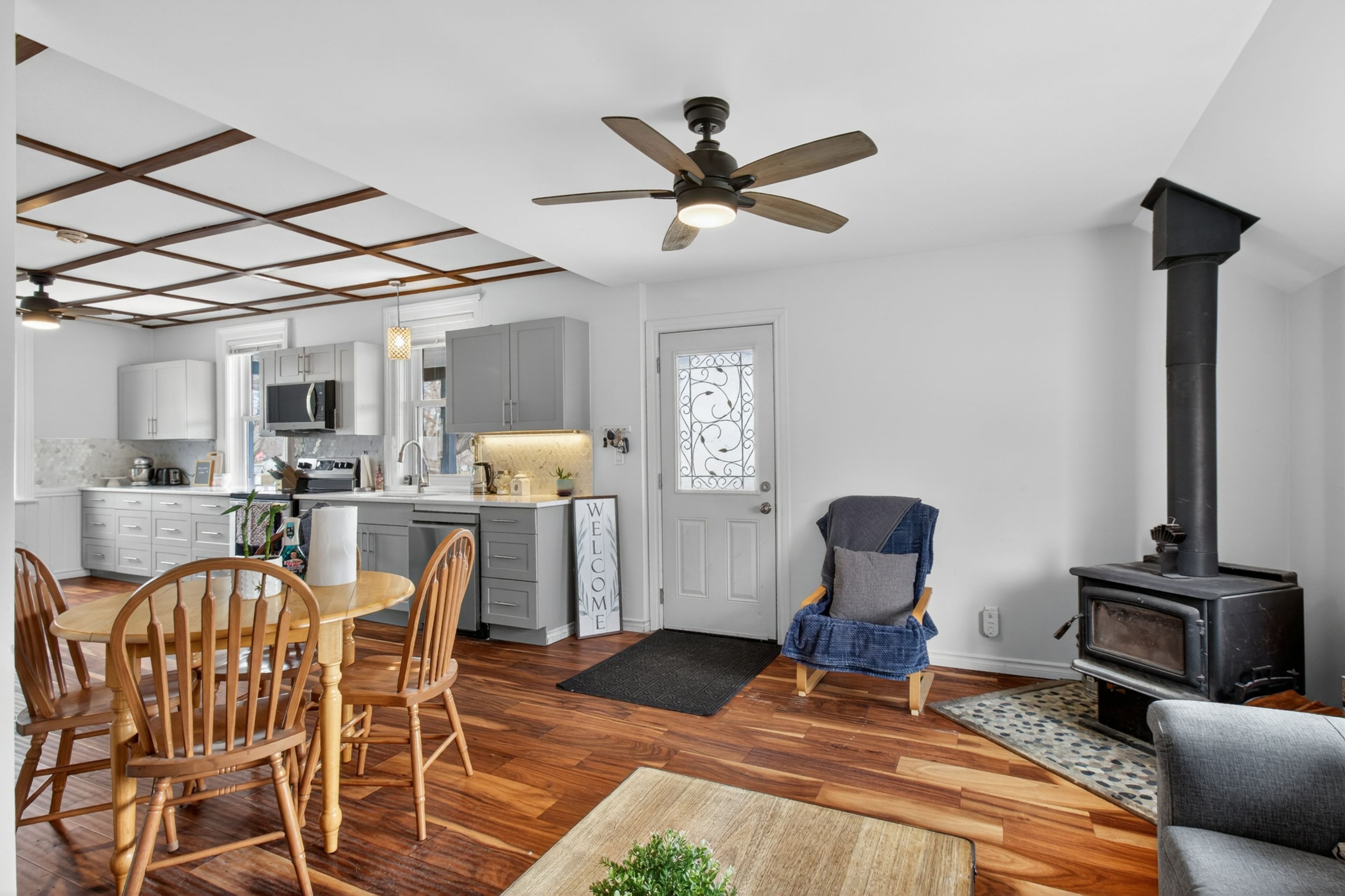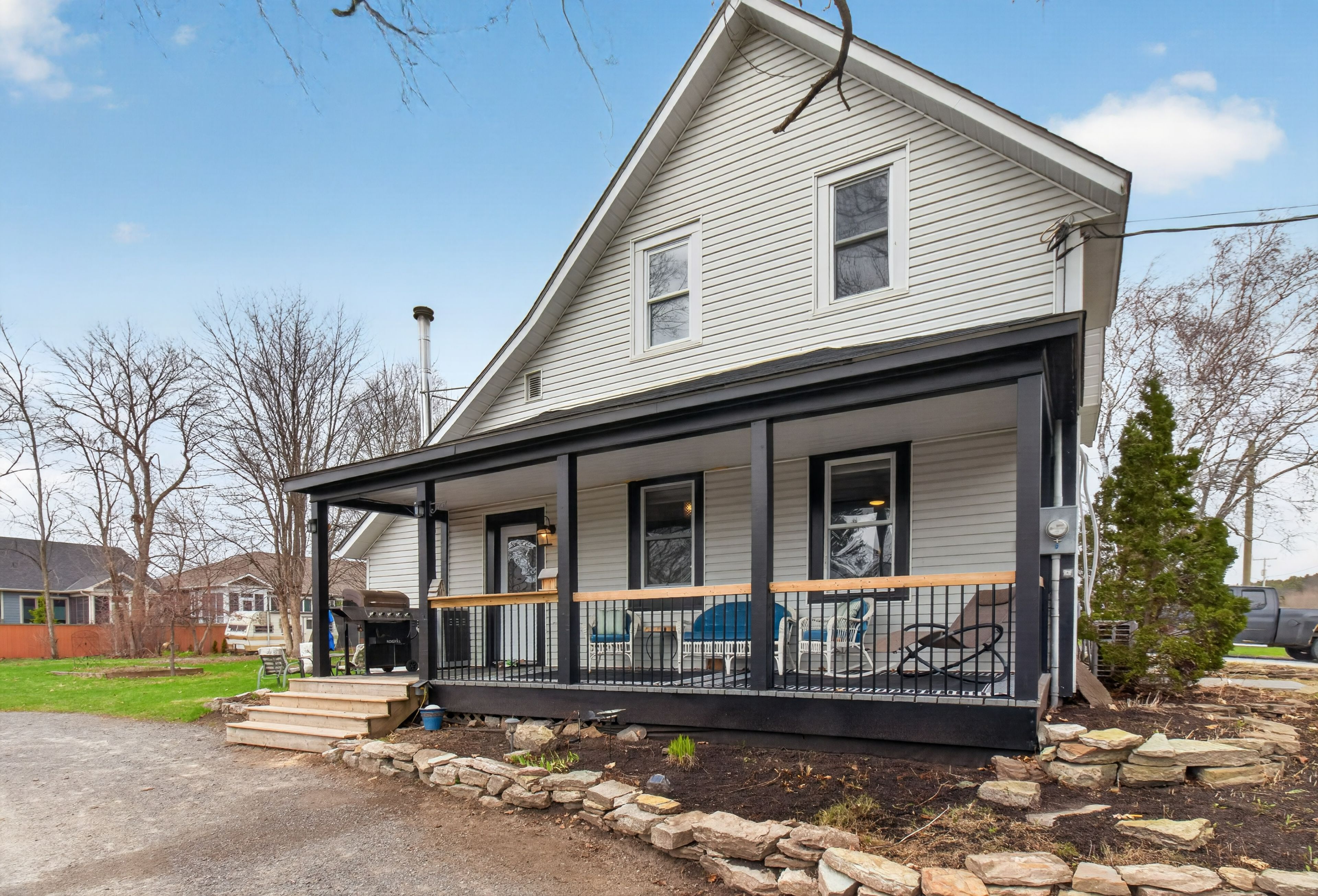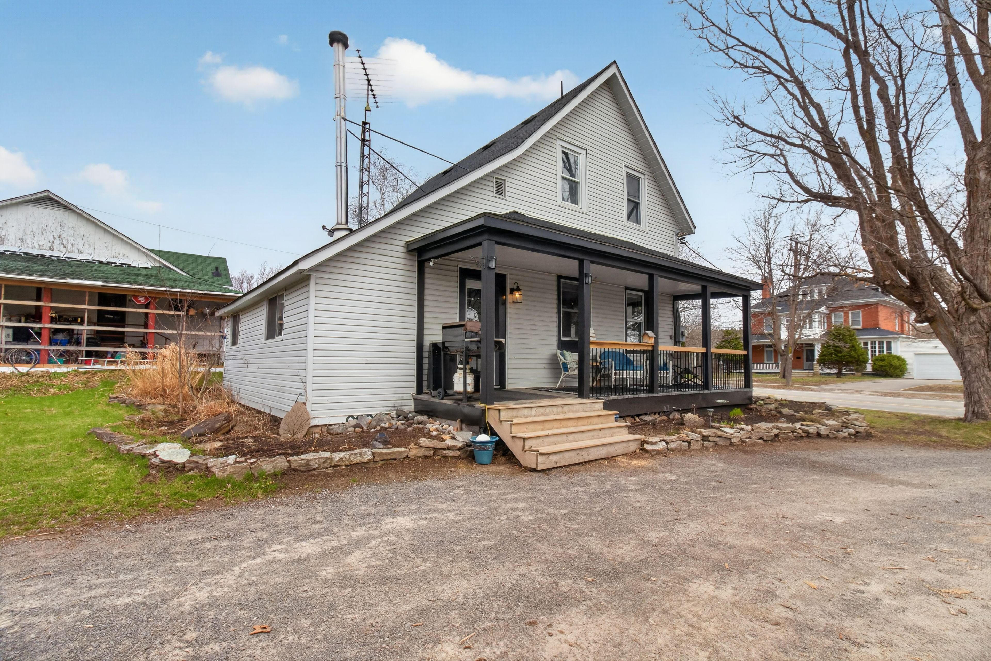 Discover refined small-town living in the heart of westport, ontario. This charming and thoughtfully updated home is set on a generous, level lot with an expansive driveway and beautifully curated gardens that enhance its inviting curb appeal. The welcoming front porch, complete with new railings, offers a serene setting to enjoy quiet mornings and warm summer evenings. Inside, the home has been tastefully renovated throughout, featuring engineered hardwood flooring and a bright, cohesive design. The elegant kitchen is truly the heart of the home, showcasing new appliances, quartz countertops, and a layout designed for both everyday living and entertaining. The main floor hosts a spacious primary bedroom, along with a convenient powder room, laundry area and mudroom. A cozy wood-burning fireplace adds warmth and character to the living space. Upstairs, three additional bedrooms and a well-appointed 3-piece bath provide ample room for family or guests. Ideally situated within the village, this property is just a short stroll to the arena, excellent schools, and westport's picturesque waterfront. A graceful blend of modern updates and timeless charm, this home offers an exceptional opportunity to enjoy village living at its finest, this home is ready to welcome you.