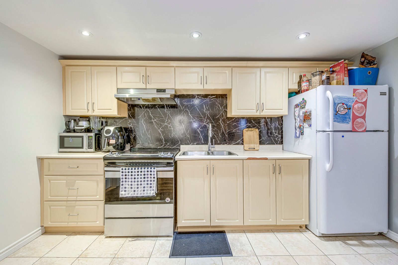 • Finished basement apartment with reliable tenant offers rental income.