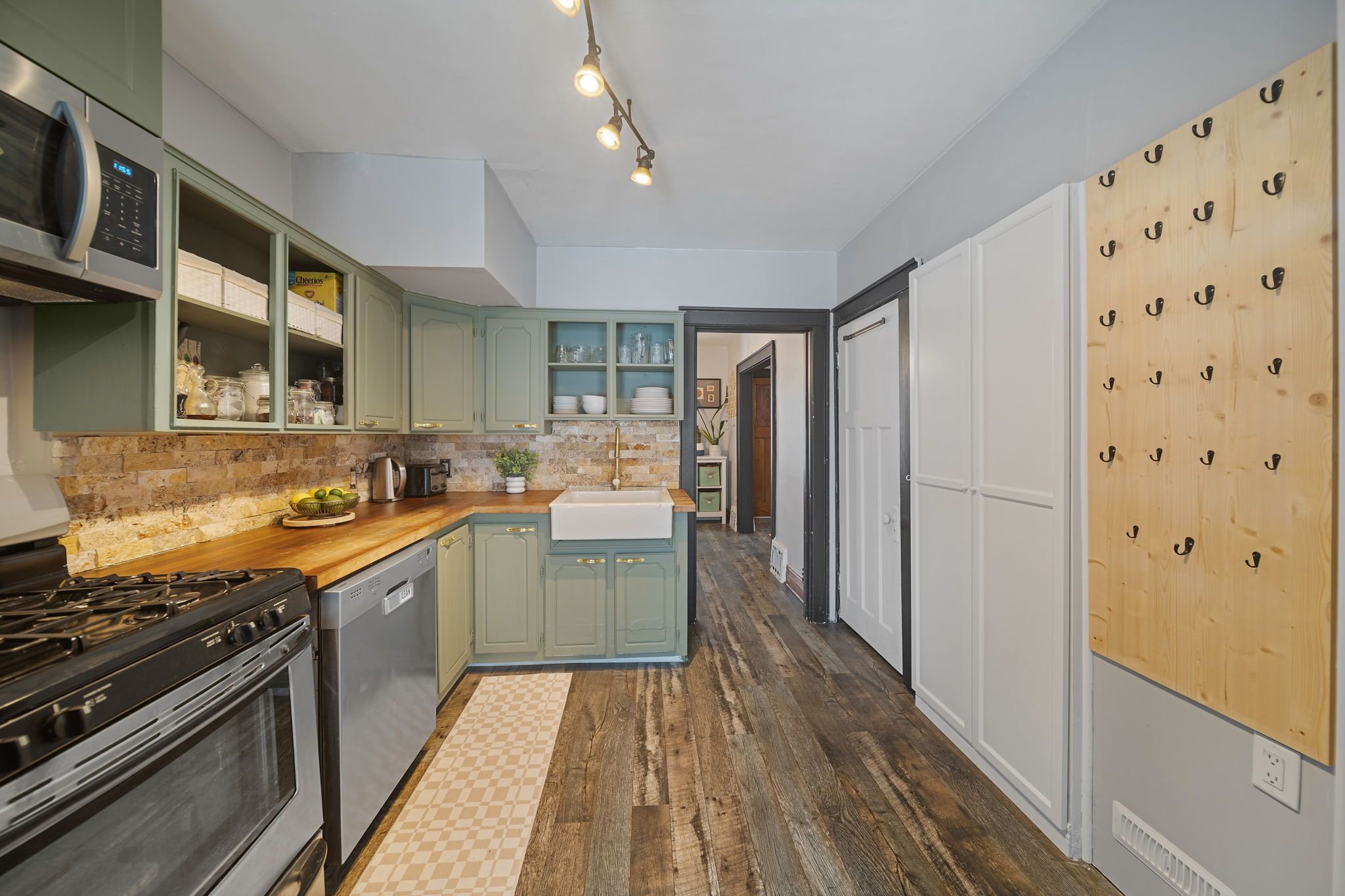 Welcome to 22 cope street, a charming 1. 5-storey brick home tucked into a quiet, central hamilton neighbourhood with quick access to the red hill valley parkway for easy commuting across the city, the gta, or niagara. This warm and inviting home blends timeless character with thoughtful modern updates. The upper level features two spacious bedrooms with deep closets and a full newly updated bathroom. On the main floor, you're welcomed from the covered front porch into bright living and dining spaces filled with original trim, a decorative brick fireplace, and an easy, functional layout. The kitchen offers stainless steel appliances, a stone backsplash, and butcher block counters, connecting seamlessly to a rear mudroom and a versatile additional main-floor room that works beautifully as a playroom, office, or third bedroom. Downstairs, the fully finished basement provides excellent bonus living space, laundry and storage, plus an added two-piece bath. Outside, the backyard is private and well cared for, featuring newer fencing, a concrete patio, and updated gates, perfect for relaxing, entertaining, or enjoying a bit of greenery in the city. Significant improvements have been completed throughout ownership, with over $25,000 in recent updates including sewer lining, back-flow protection, basement flooring and levelling, plumbing upgrades, a beautifully renovated bathroom, and more, offering peace of mind for the next homeowner. Located close to parks, trails, schools, and everyday amenities, 22 cope street is a wonderful opportunity to enjoy a move-in-ready home with character, comfort, and long-term value in the heart of hamilton.