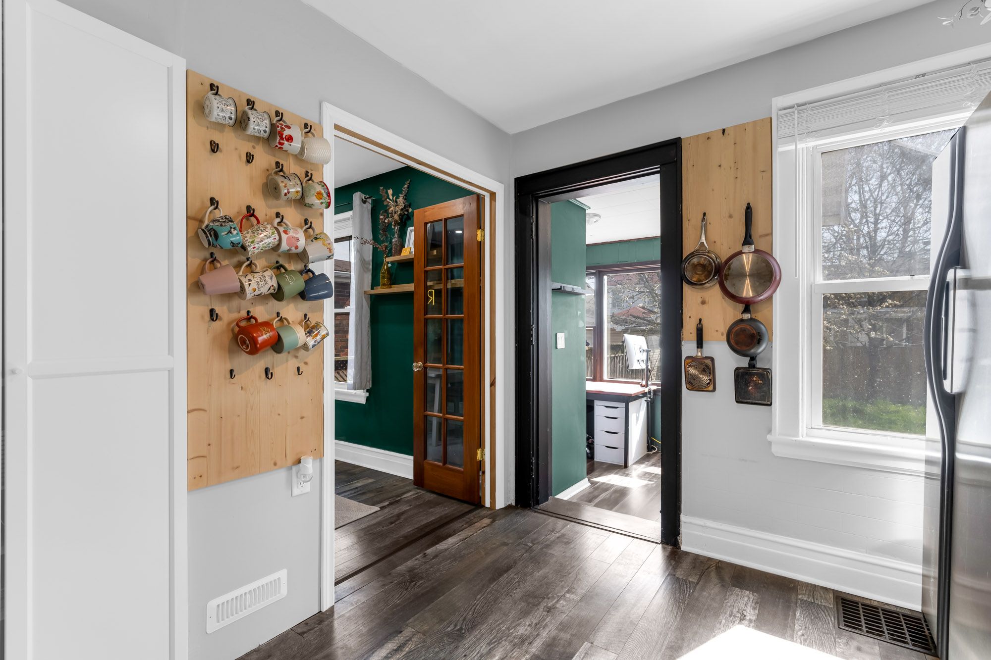Welcome to 22 cope street, a charming 1. 5-storey brick home set in a quiet, family-friendly hamilton neighbourhood, just a short walk to schools, parks, and everyday amenities. Set on a 98 ft deep lot, it offers both convenience and a beautiful sense of space outdoors. Inside, the home feels warm and inviting with original character and thoughtful updates. Upstairs you will find two spacious bedrooms and a beautifully renovated full bathroom. The main floor offers bright, welcoming living and dining spaces with original trim and a decorative brick fireplace, alongside a functional kitchen with stainless steel appliances, butcher block counters, and a stone backsplash. A rear mudroom and flexible bonus room provide the perfect space for a home office, playroom, or use as a third bedroom. The fully finished basement adds comfortable additional living space, along with laundry, storage, and a two-piece bath. Thoughtful updates throughout ownership offer peace of mind, including basement improvements (2024). The private backyard is a true extension of the home, with newer fencing, a concrete patio (2023), and updated gates (2024), perfect for relaxing evenings or hosting family and friends. A move-in ready home in a location families truly love, offering character and comfort.