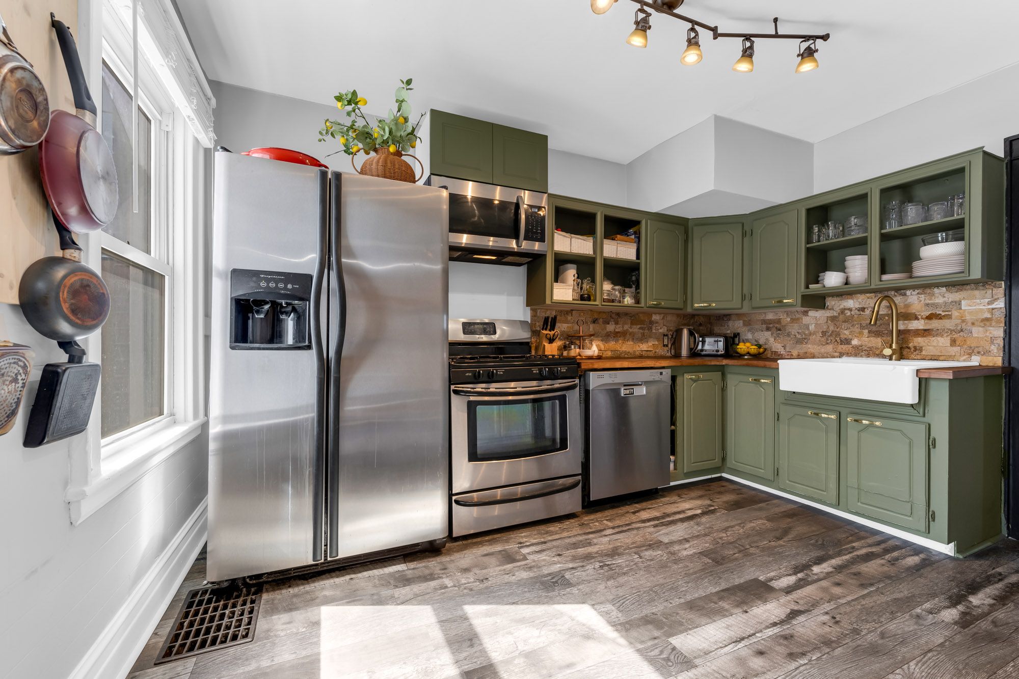• Two generous bedrooms and a renovated full bathroom upstairs.