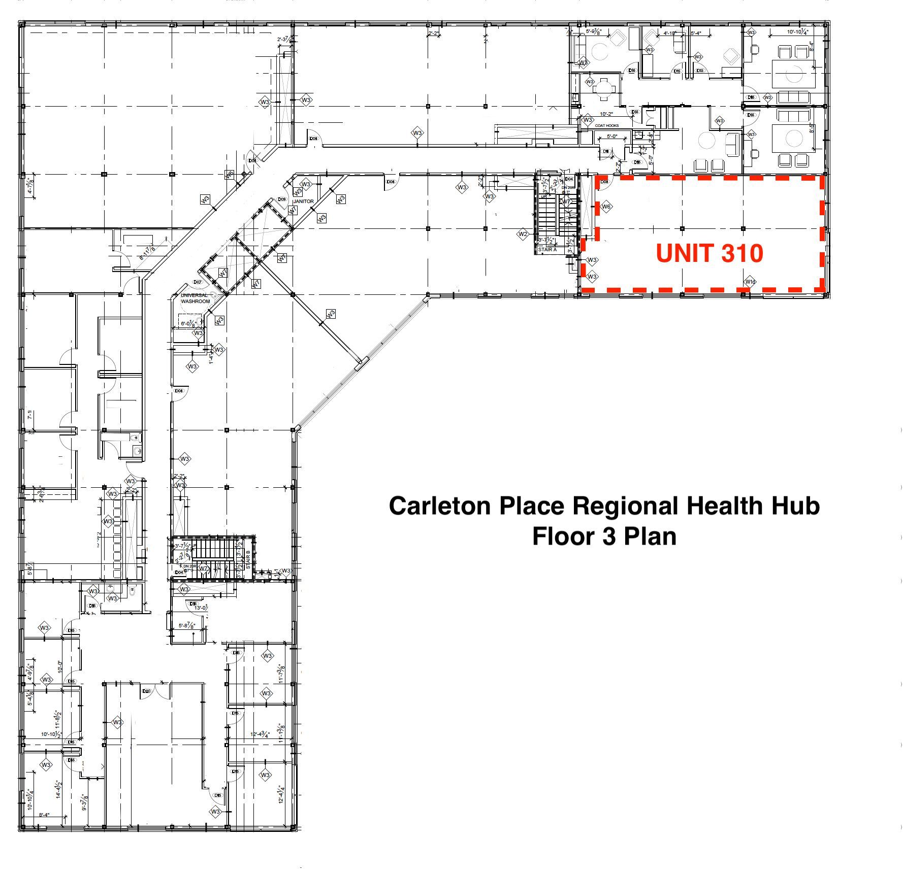 Health care provider opportunity. Now open and operating, the carleton place regional health hub is a purpose-built primary care facility merging all local family physicians into a single 15,000 square foot clinic. The hub serves the western outlying ottawa region from the ottawa western suburbs to regional towns such as perth and smith falls. The building currently welcomes 300+ patient visits per day and growing, creating exceptional exposure and referral opportunities for allied health providers. Physicians are looking to provide continuity and coordination of patient care by collaborating on-site with other inter-professional health providers. A strong tenant mix is already in place including pharmacy, hearing, optical, psychotherapy and counselling services. Carleton place is the epicentre of west regional ottawa, canada's fastest growing region, with easy access to a population basin over 600,000. Retail has responded to the region's growing needs with a strong presence in carleton place including numerous big-box players. The health hub is a proactive response to the region's lacking, yet continuously growing, need for primary care delivery. Exciting opportunities remain for collaboration, including podiatry, dentistry, endoscopy, dermatology, pain management, and others. Units available from 1,000 to 8,000. Some units can be merged for larger users. Unit 310 offers approximately 1,347 sq. Ft. Of corner unit office space with stunning views and glazing along two walls, filling the space with beautiful natural light. The layout is highly flexible and can easily accommodate a mix of enclosed offices and open-concept workspace, or be demised into smaller offices to suit a variety of medical and professional users.