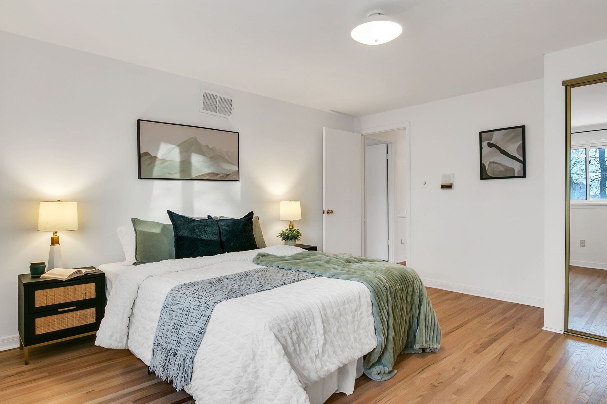 Spacious 4-bedroom detached home with a double car garage - this is one you truly need to see. Filled with loads of natural light throughout, the main floor offers great flow with separate living and dining rooms. The welcoming family room features a fireplace and beautiful exposed wood beams that add so much character. The eat-in kitchen includes walkouts from both the kitchen and family room to the backyard deck. Perfect for entertaining or easy summer evenings. The kitchen also offers a great opportunity to update and make the space your own. Four generous bedrooms, including a primary retreat with 3pc ensuite bath. The finished lower level provides flexible space for a rec room, home office, or guests. Freshly painted with hardwood flooring throughout, this home is move-in ready and offers excellent potential to personalize the kitchen and bathrooms to suit your style. Located close to schools, shopping, transit, and major highways, this is a fantastic opportunity in a well-connected neighbourhood. Come see it for yourself. You won't be disappointed.