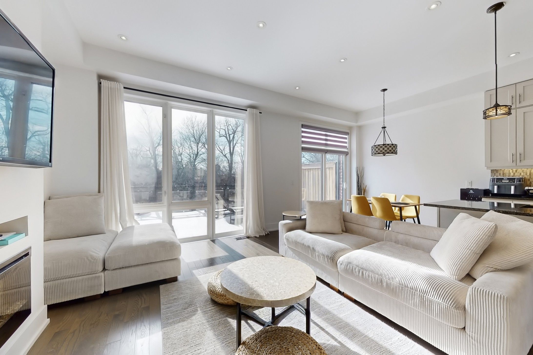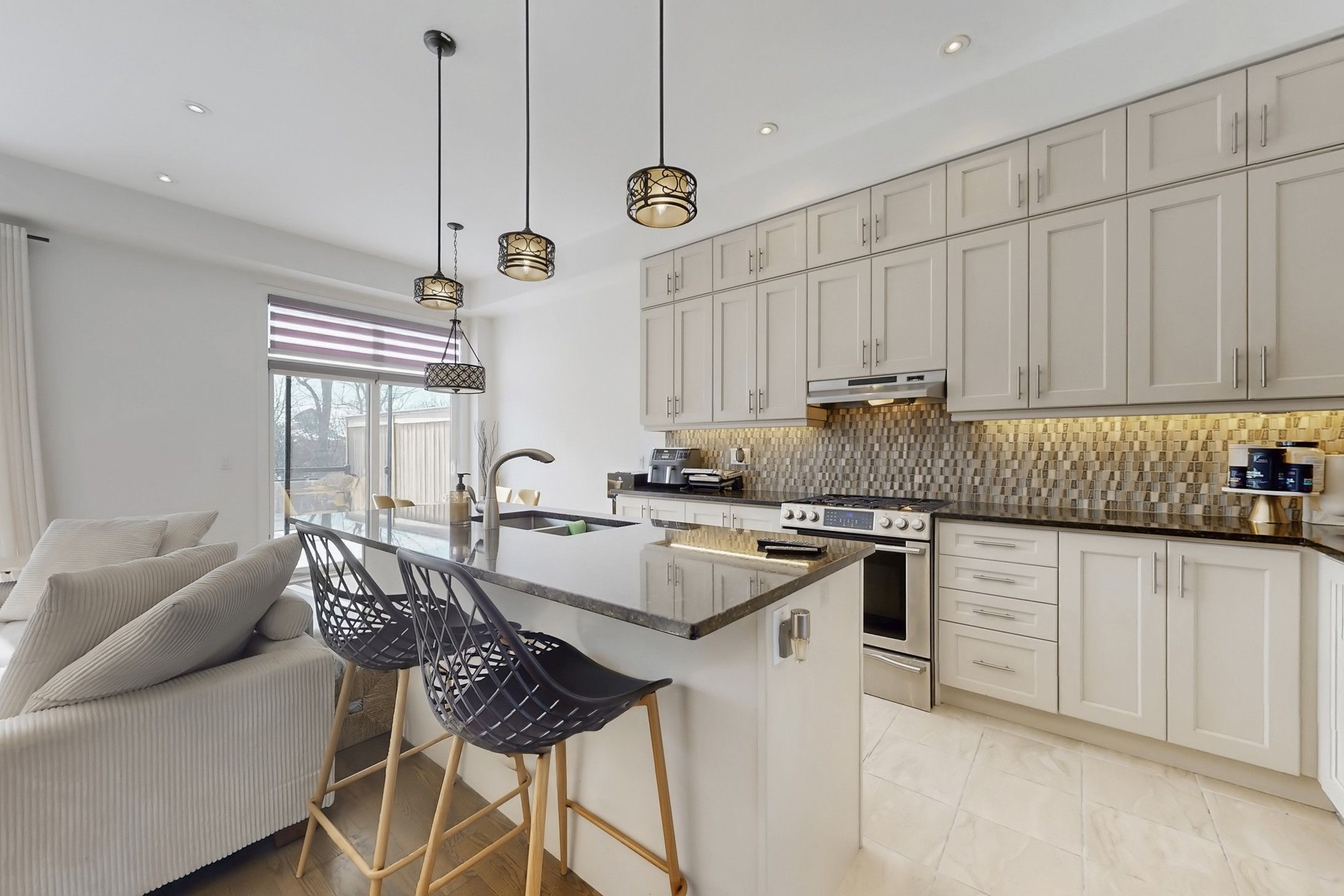 **3d view available**gorgeous executive style freehold townhouse backing onto beautiful **ravine** $100k premium paid for: ravine lot, extended deck & larger backyard. Natural stone front steps and new backyard pavement. Open concept layout - 10' smooth ceilings on main floor & 9' ceilings on 2nd floor. Huge floor to ceiling windows. Full size deck o/l ravine. 3 bedrooms plus finished basement with full bath & walk out to large private backyard. Upgraded hardwood floors, kitchen, bath. This unparalleled location is mere steps from grocery, coffee shops, restaurants, lcbo, la fitness, banks, and more. Exceptional top-ranking schools, parks and convenient access to the 407 & hwy 7