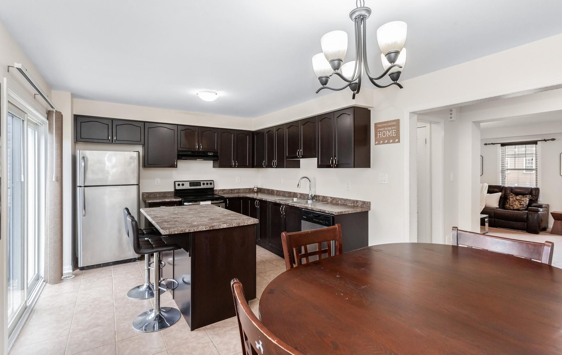 • Open-concept living and dining area with spacious upgraded kitchen.