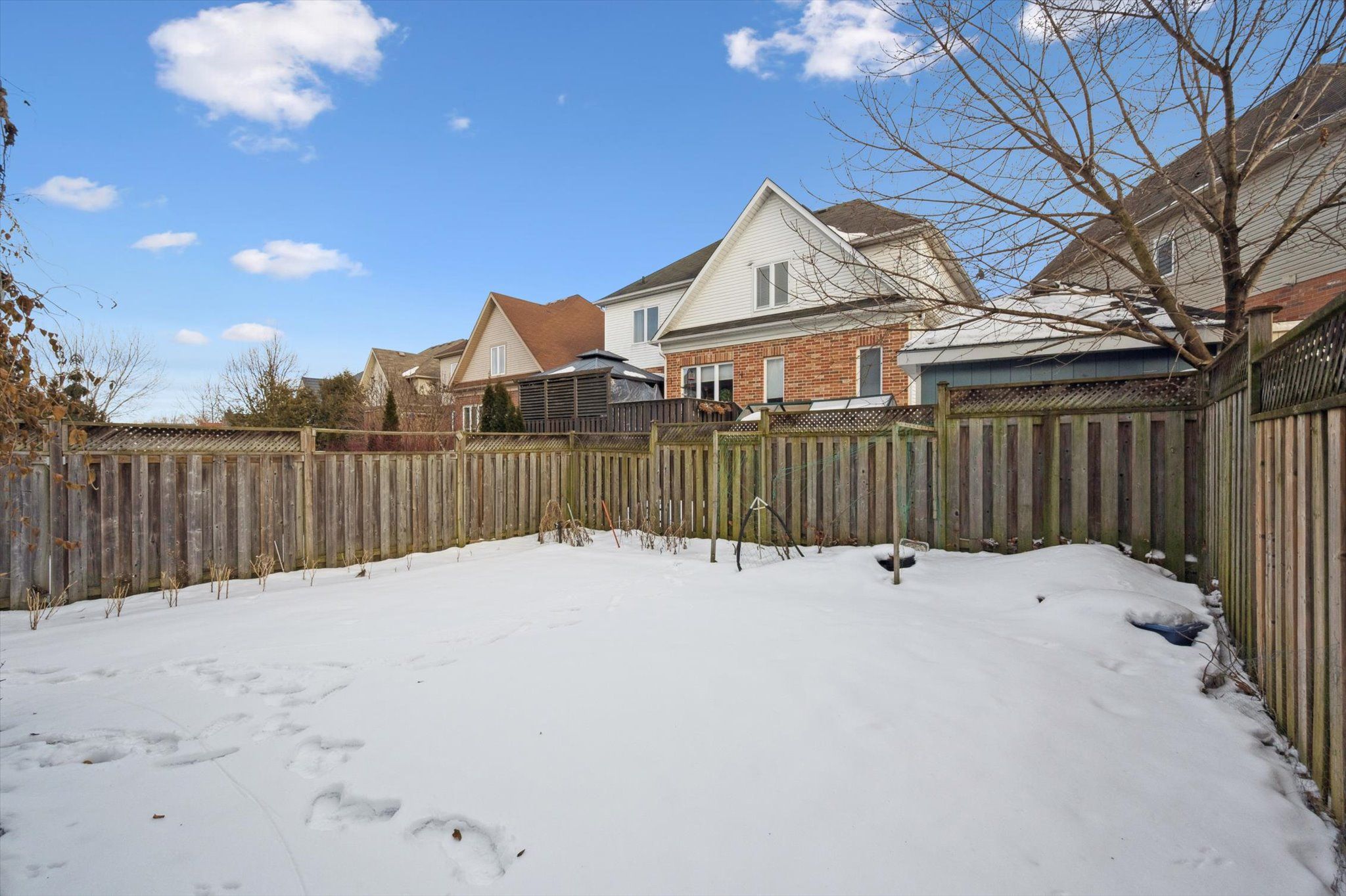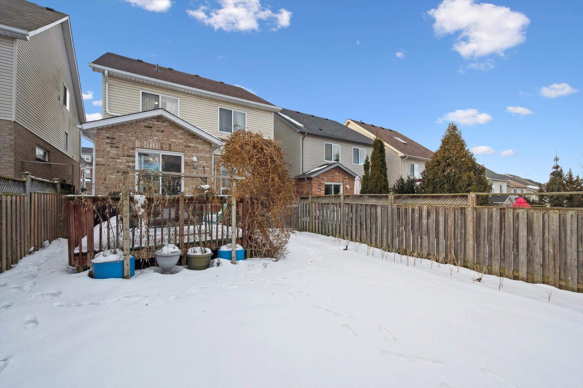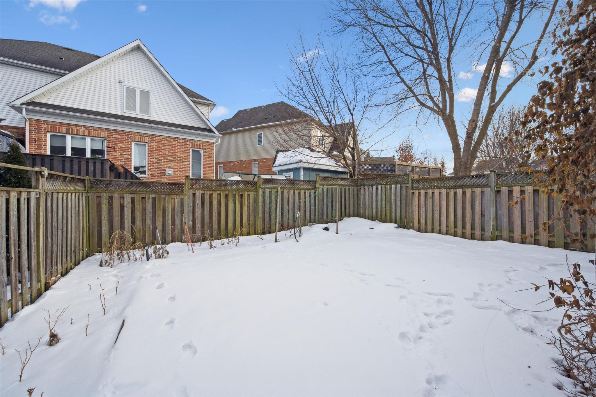 • Fully fenced backyard with a deck, great for relaxation and gatherings.
