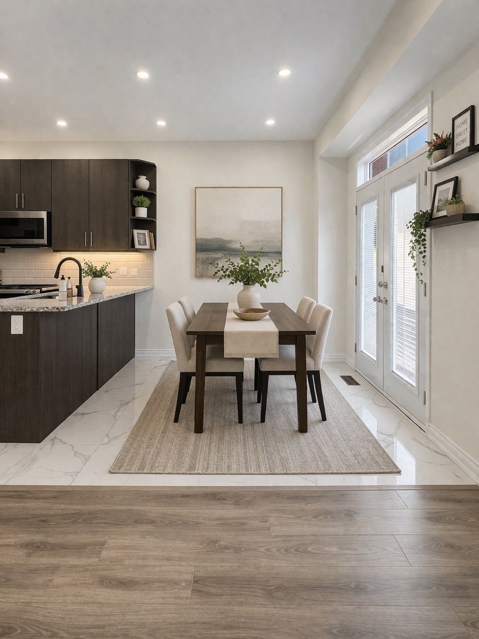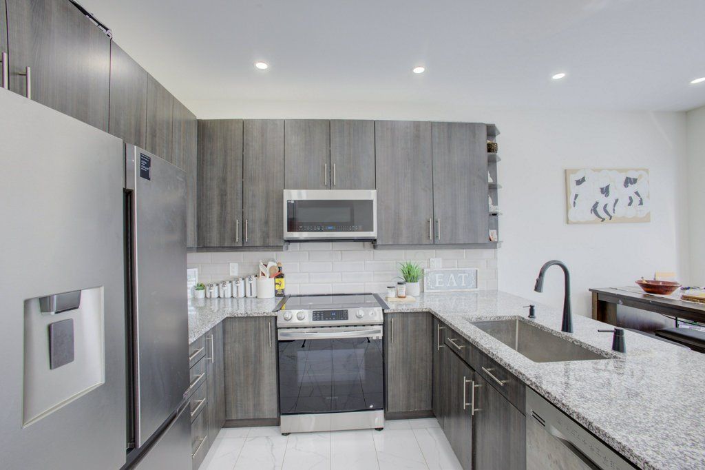 • Stylish kitchen with granite counters, stainless steel appliances, and ample prep space.