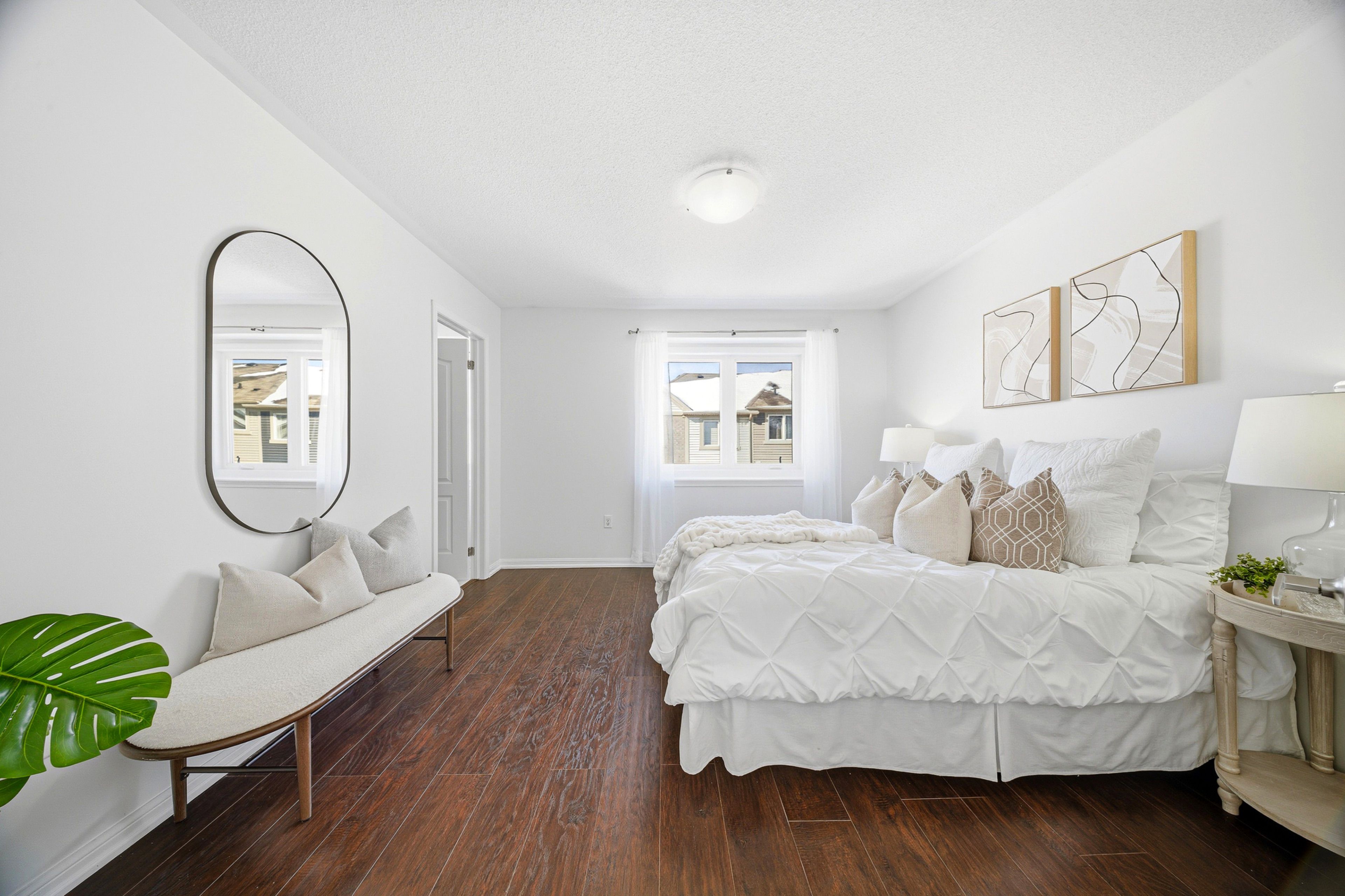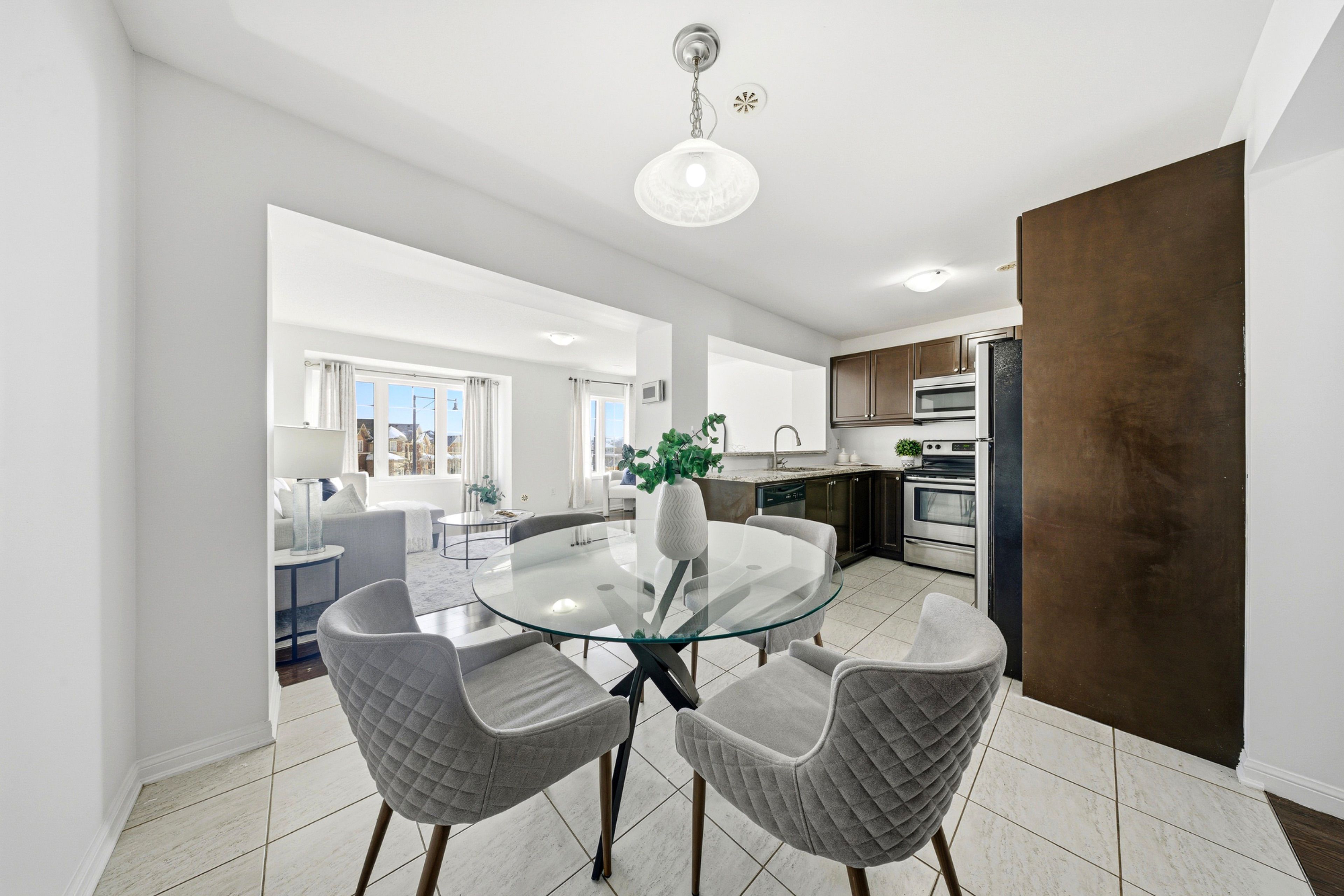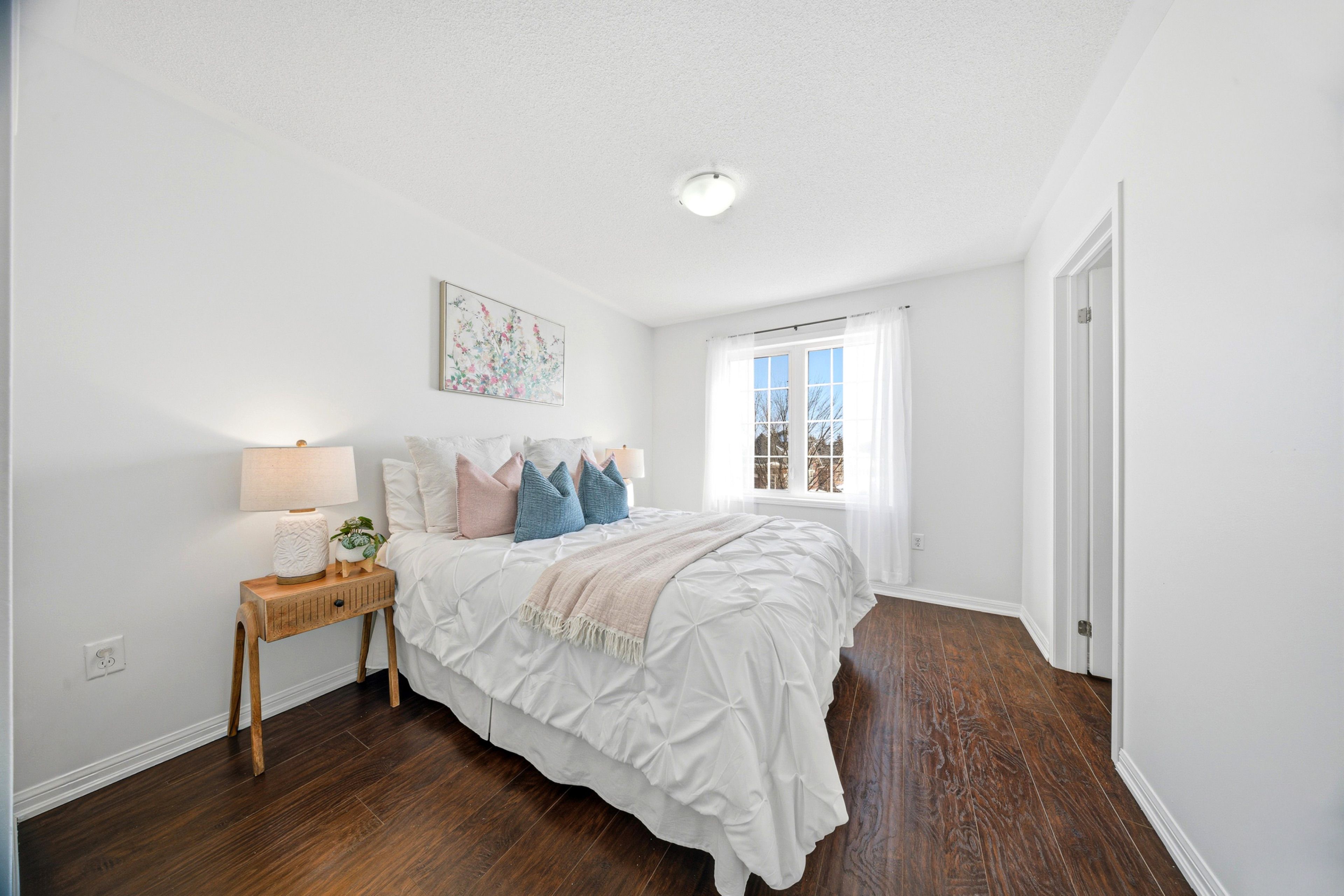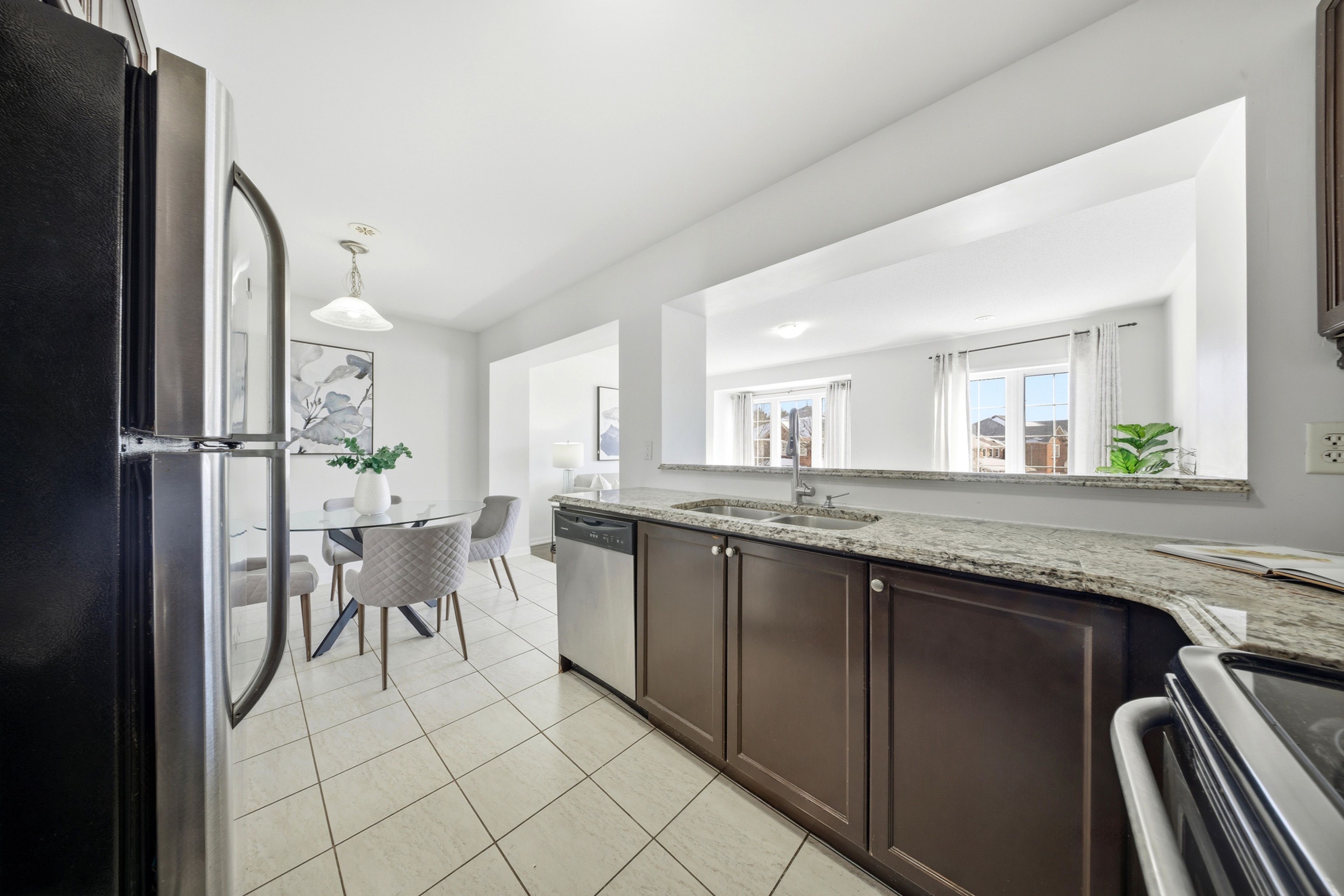 Discover this spacious and beautifully maintained 1875 sq ft end unit townhouse, perfectly positioned across from a serene park in one of the area's most desirable communities. Designed for modern family living, this home has been freshly painted, professionally cleaned, and offers a bright and functional layout filled with upgrades and thoughtful details. Step inside to find separate living and family rooms, creating the ideal balance between entertaining space and everyday comfort. The gorgeous kitchen, stretching the full width of the home, features granite countertops, stainless steel appliances, and abundant cabinetry, all overlooking the cozy family area. Upstairs, the primary suite impresses with its generous size, walk-in closet, and private 4-piece ensuite. The second bedroom also includes a walk-in closet, and every bedroom offers ample space and natural light. The finished lower level adds even more versatility with a bright recreation room and sliding door walkout to the backyard-a perfect spot for relaxing or entertaining. A convenient garage-to-home entry provides everyday ease. Enjoy the benefits of a prime location close to schools, shopping plazas, the go station, library, and parks-everything your family needs is just minutes away. This immaculate end unit combines space, style, and unbeatable convenience-a rare opportunity you don't want to miss!