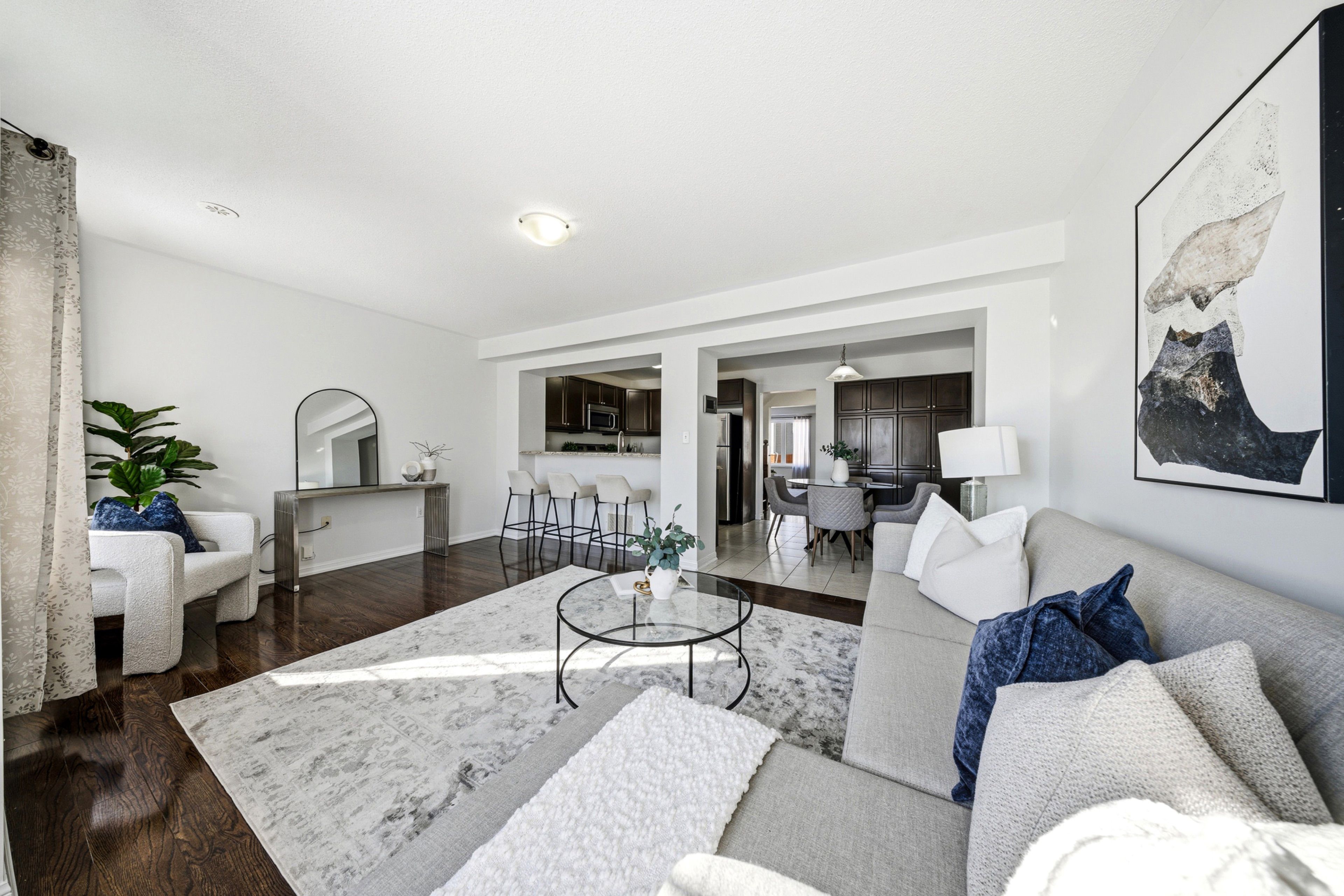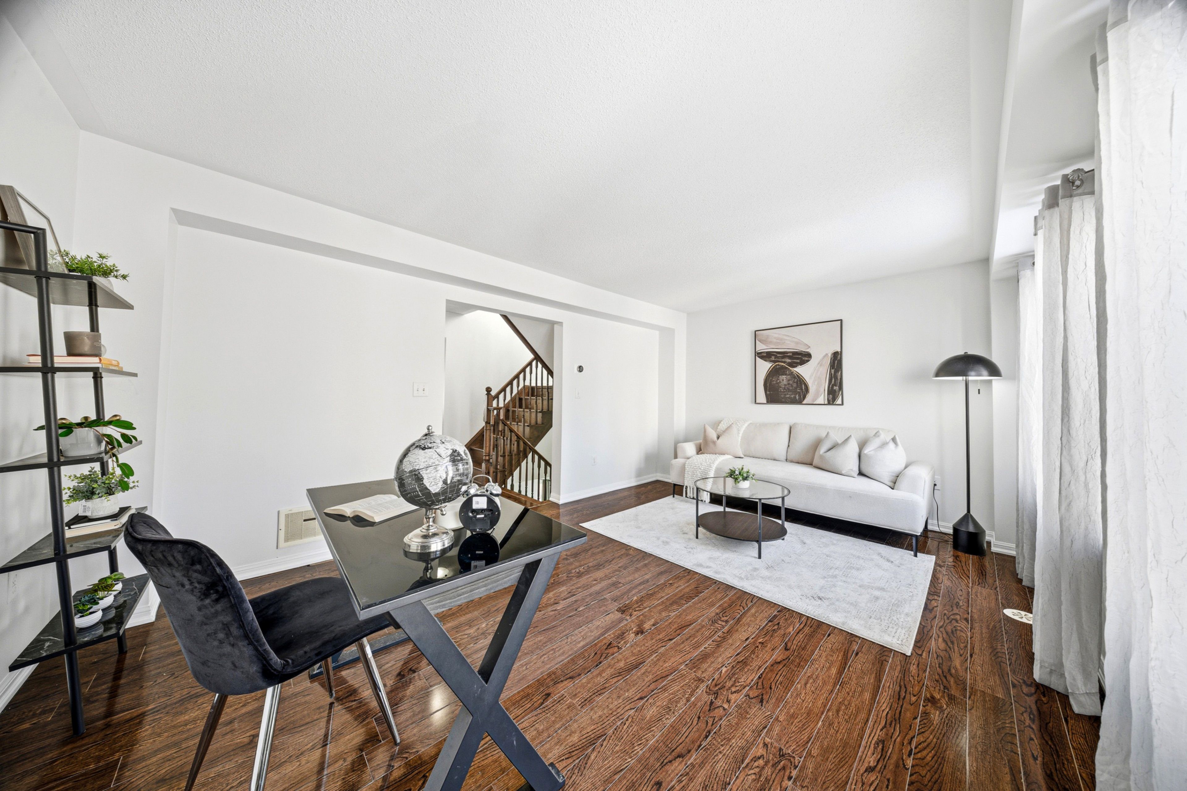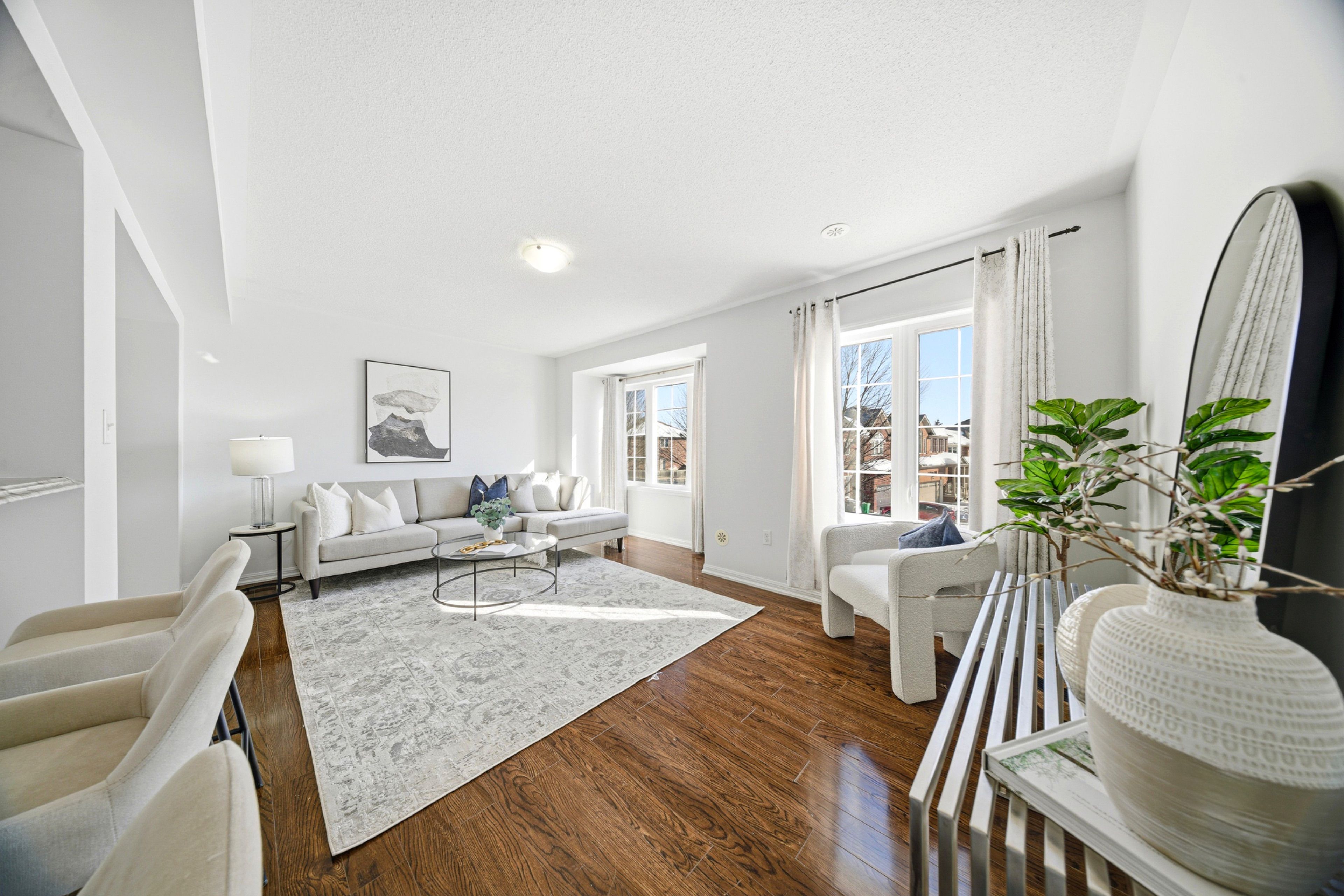 Discover this spacious and beautifully maintained 1875 sq ft end unit townhouse, perfectly positioned across from a serene park in one of the area's most desirable communities. Designed for modern family living, this home has been freshly painted, professionally cleaned, and offers a bright and functional layout filled with upgrades and thoughtful details. Step inside to find separate living and family rooms, creating the ideal balance between entertaining space and everyday comfort. The gorgeous kitchen, stretching the full width of the home, features granite countertops, stainless steel appliances, and abundant cabinetry, all overlooking the cozy family area. Upstairs, the primary suite impresses with its generous size, walk-in closet, and private 4-piece ensuite. The second bedroom also includes a walk-in closet, and every bedroom offers ample space and natural light. The finished lower level adds even more versatility with a bright recreation room and sliding door walkout to the backyard-a perfect spot for relaxing or entertaining. A convenient garage-to-home entry provides everyday ease. Enjoy the benefits of a prime location close to schools, shopping plazas, the go station, library, and parks-everything your family needs is just minutes away. This immaculate end unit combines space, style, and unbeatable convenience-a rare opportunity you don't want to miss!