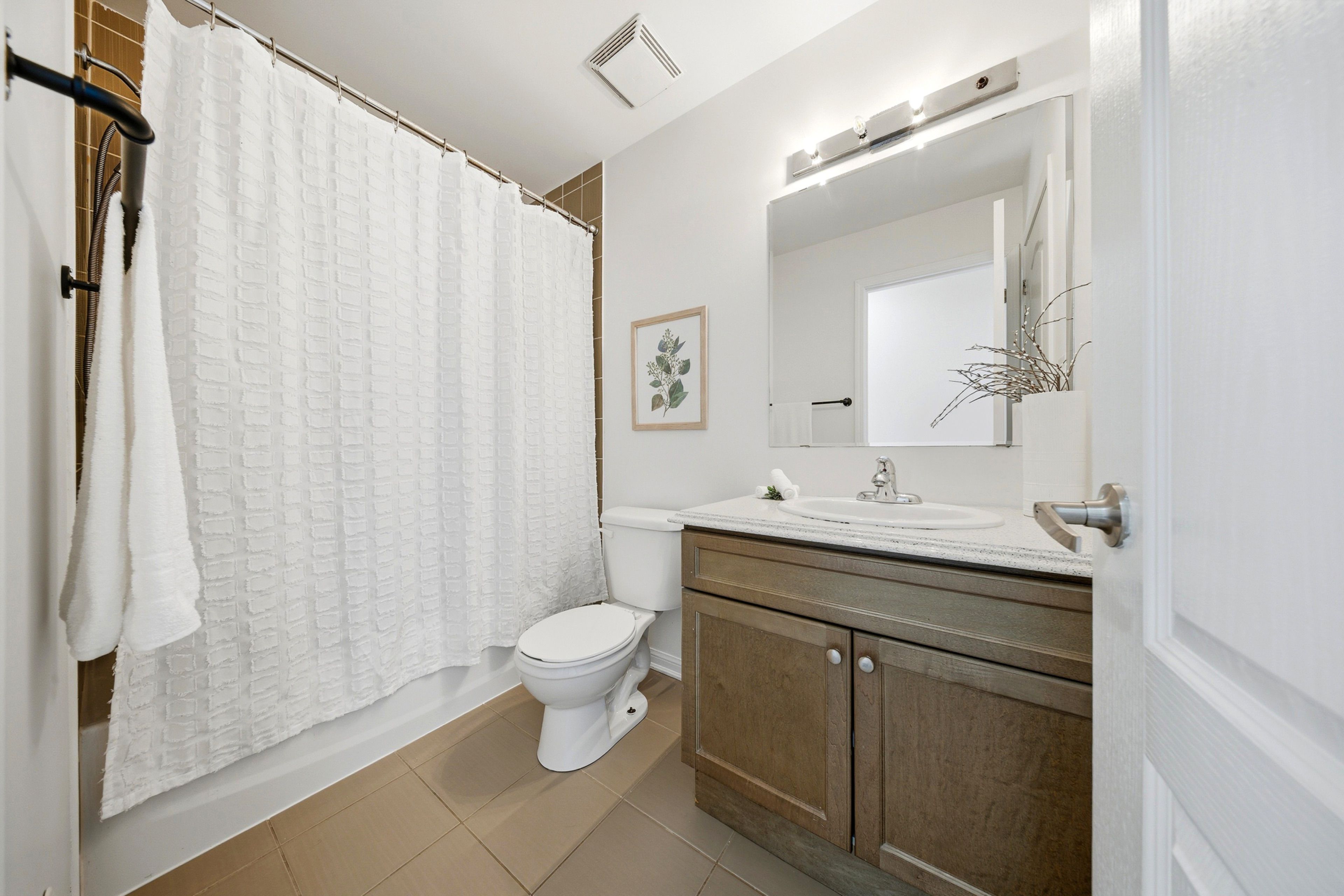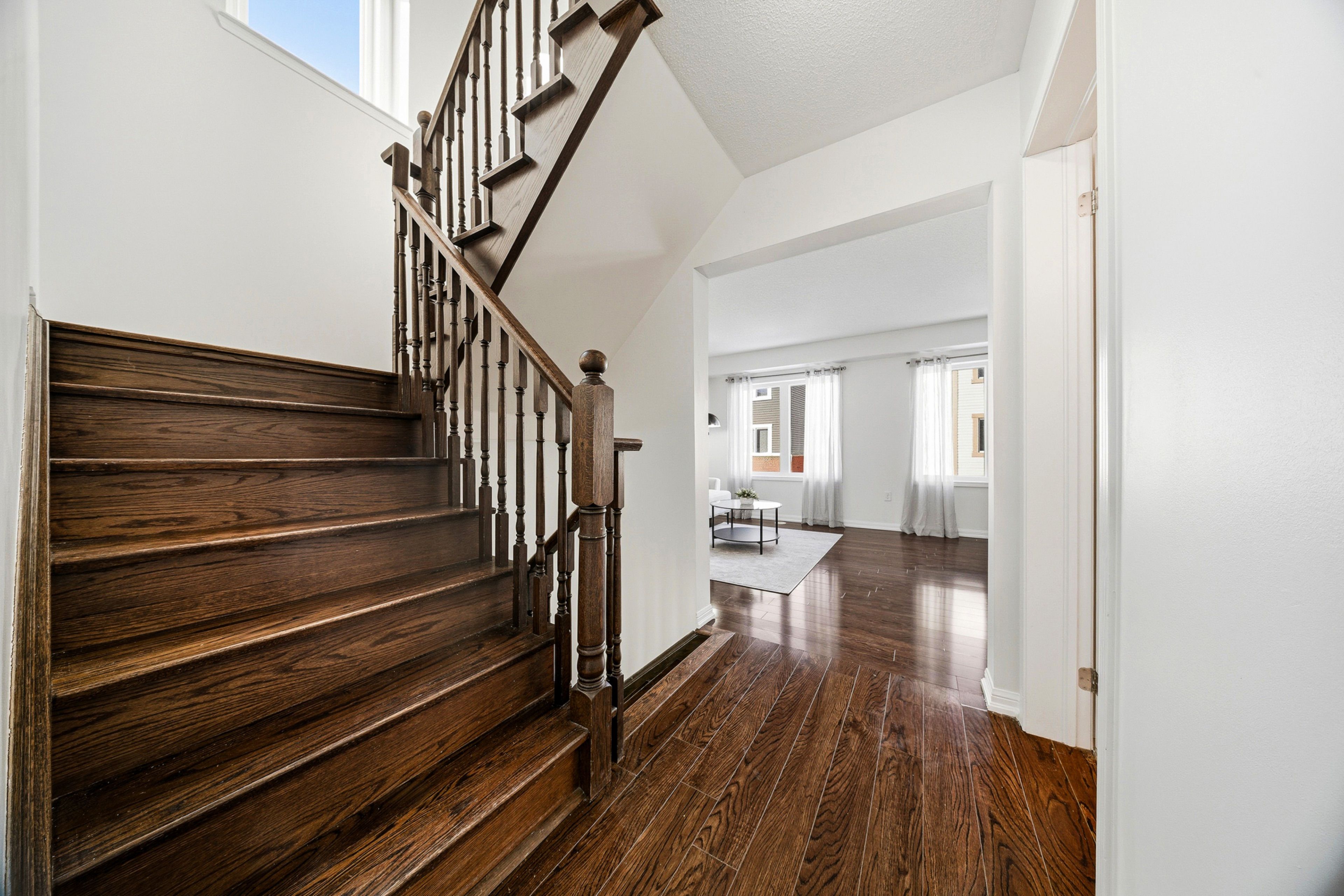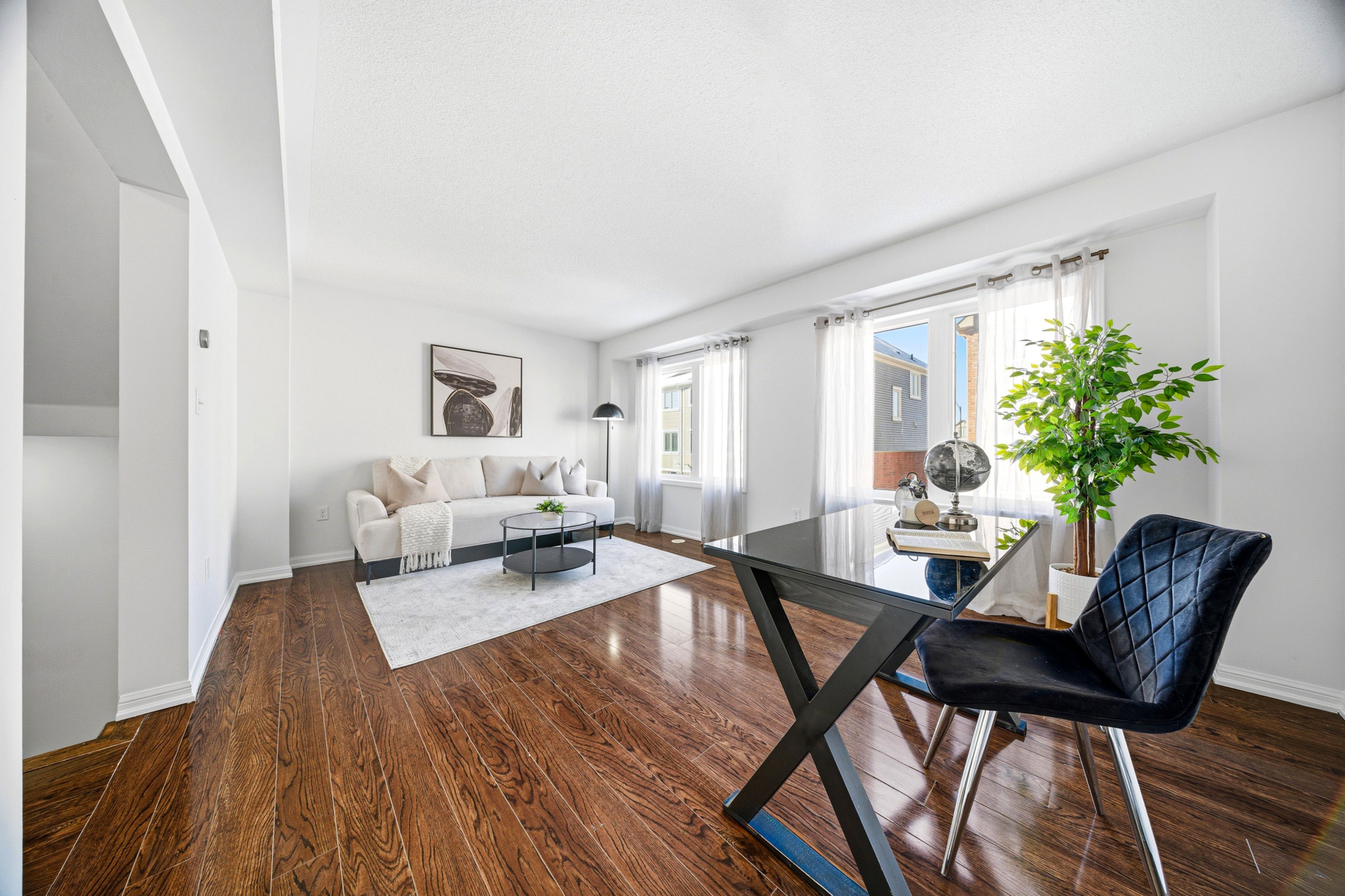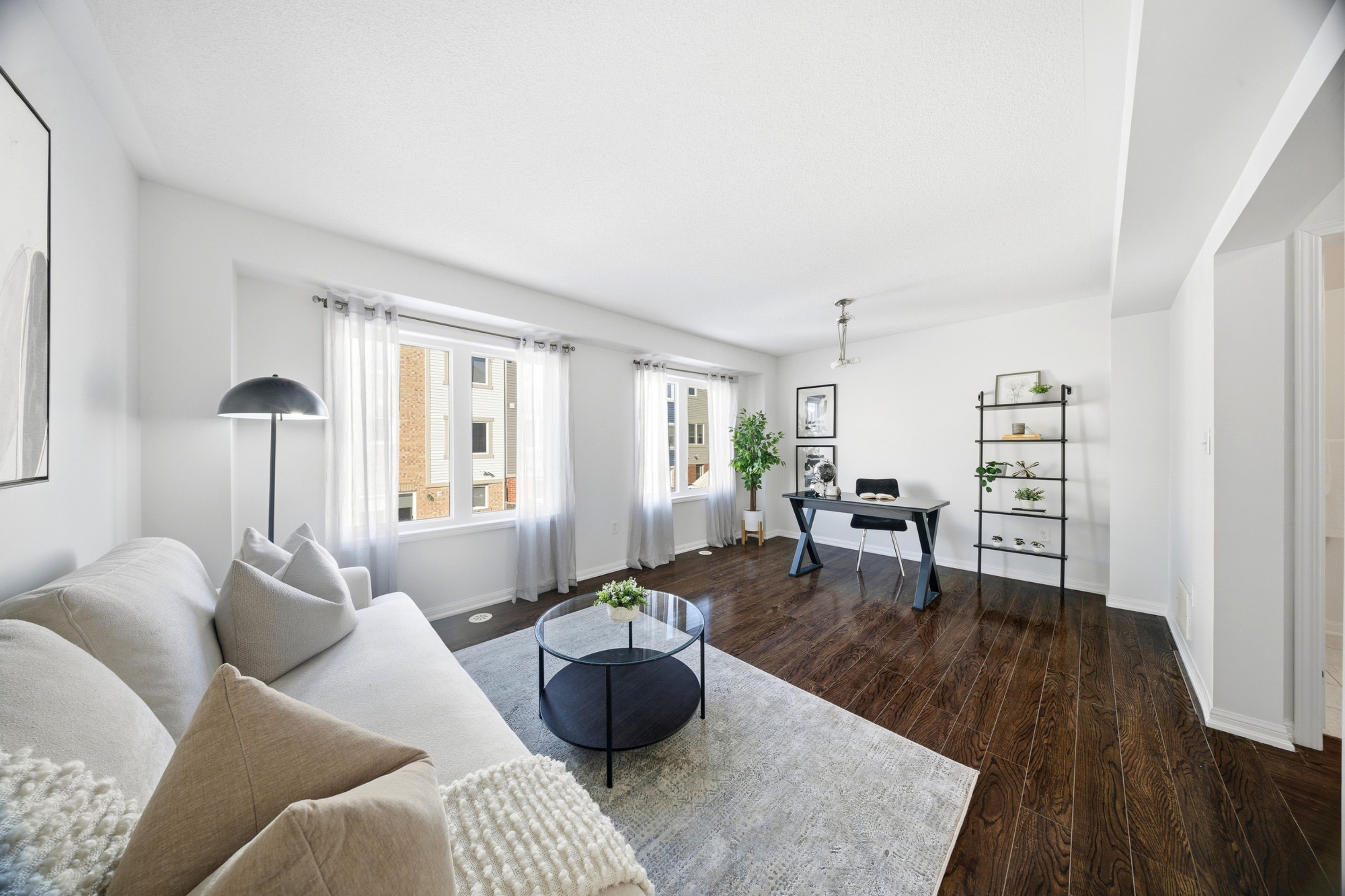 Discover this spacious and beautifully maintained 1875 sq ft end unit townhouse, perfectly positioned across from a serene park in one of the area's most desirable communities. Designed for modern family living, this home has been freshly painted, professionally cleaned, and offers a bright and functional layout filled with upgrades and thoughtful details. Step inside to find separate living and family rooms, creating the ideal balance between entertaining space and everyday comfort. The gorgeous kitchen, stretching the full width of the home, features granite countertops, stainless steel appliances, and abundant cabinetry, all overlooking the cozy family area. Upstairs, the primary suite impresses with its generous size, walk-in closet, and private 4-piece ensuite. The second bedroom also includes a walk-in closet, and every bedroom offers ample space and natural light. The finished lower level adds even more versatility with a bright recreation room and sliding door walkout to the backyard-a perfect spot for relaxing or entertaining. A convenient garage-to-home entry provides everyday ease. Enjoy the benefits of a prime location close to schools, shopping plazas, the go station, library, and parks-everything your family needs is just minutes away. This immaculate end unit combines space, style, and unbeatable convenience-a rare opportunity you don't want to miss!