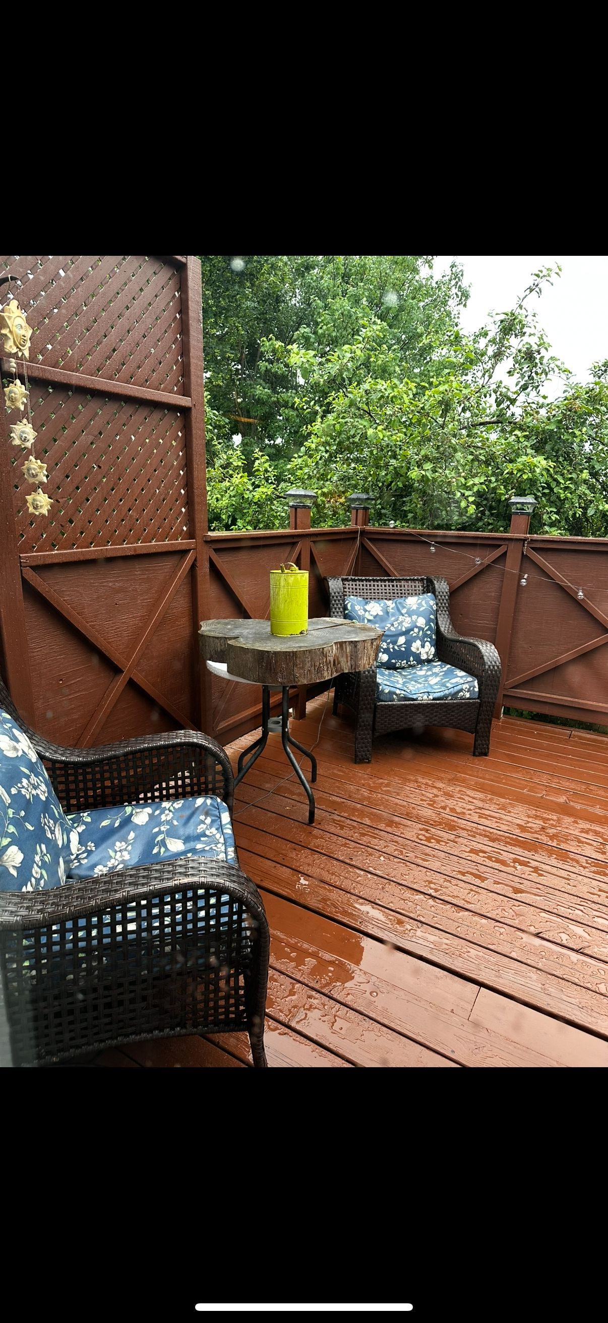 • Beautiful landscaped backyard with a deck for outdoor events.