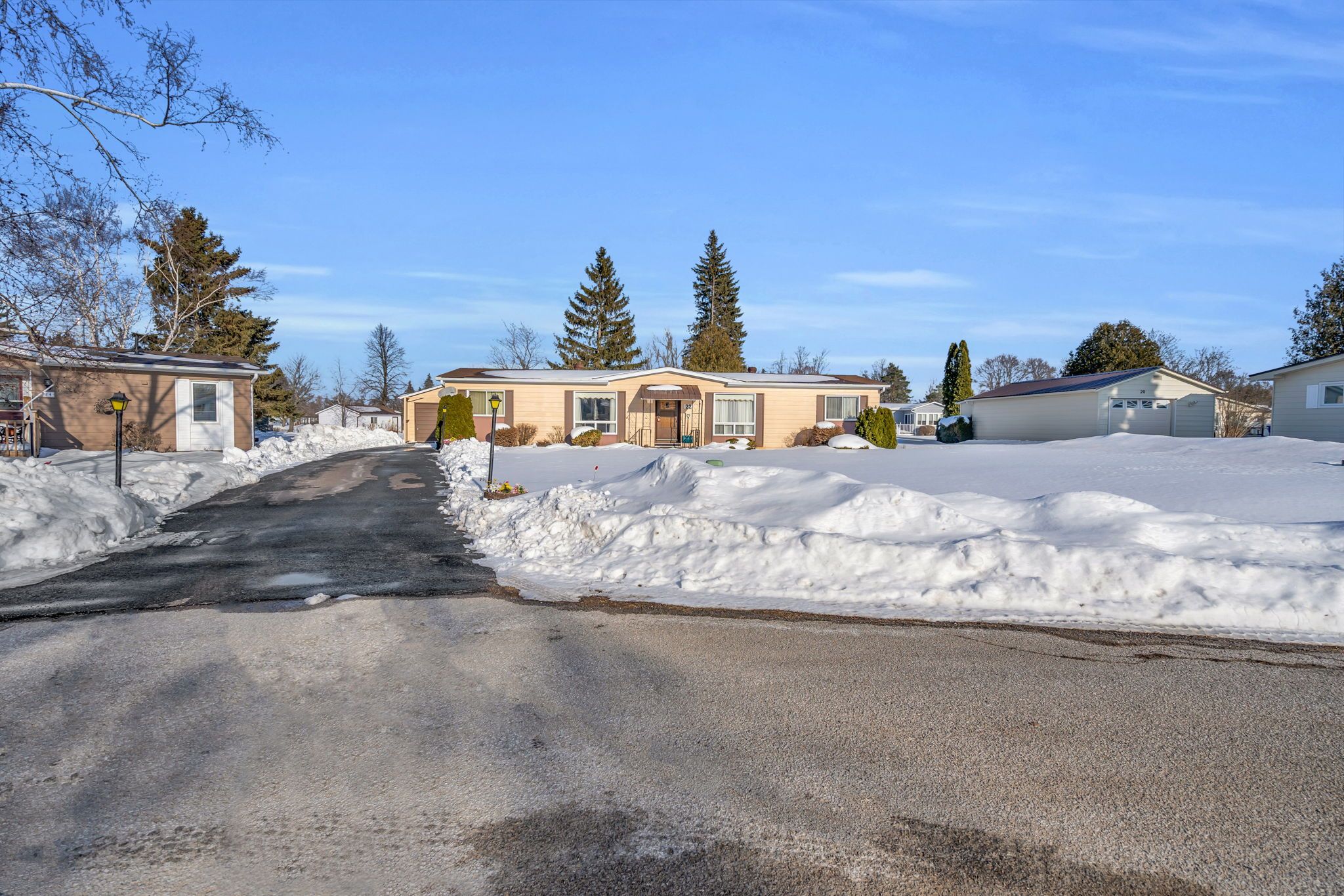 Located in georgina at the beautiful sutton by the lake adult village. The ever-popular devonshire model, a meticulously maintained home and property on a peaceful cul-de-sac. 22 emery court is a perfect blend of great location, great layout, and outstanding pride of ownership. 3 bedrooms, 2 full bathrooms, a large comfortable family room with a walk-out to a freshly painted sun soaked back deck. Large wrap around kitchen with walk in pantry, laundry and additional storage. Off of the kitchen, your breakfast nook and living room are naturally well-lit from the large window. A very large primary bedroom with a 3pc en-suite and walk in closet. Through the dining room you will find 2 additional complimentary bedrooms and another 3-pc bathroom. At the end of a freshly refinished 4 car driveway is a detached 1 1/2 car garage featuring plenty of room for your car, tools, workbench, and holiday decorations. This home is located a short walk or even shorter golf cart ride to the community club house where you will find a pool, pickleball and shuffleboard courts and walking trails. Choose to participate in the endless community activities, or choose to stay in and enjoy the comfort of your own home by the beautiful shores of lake simcoe.