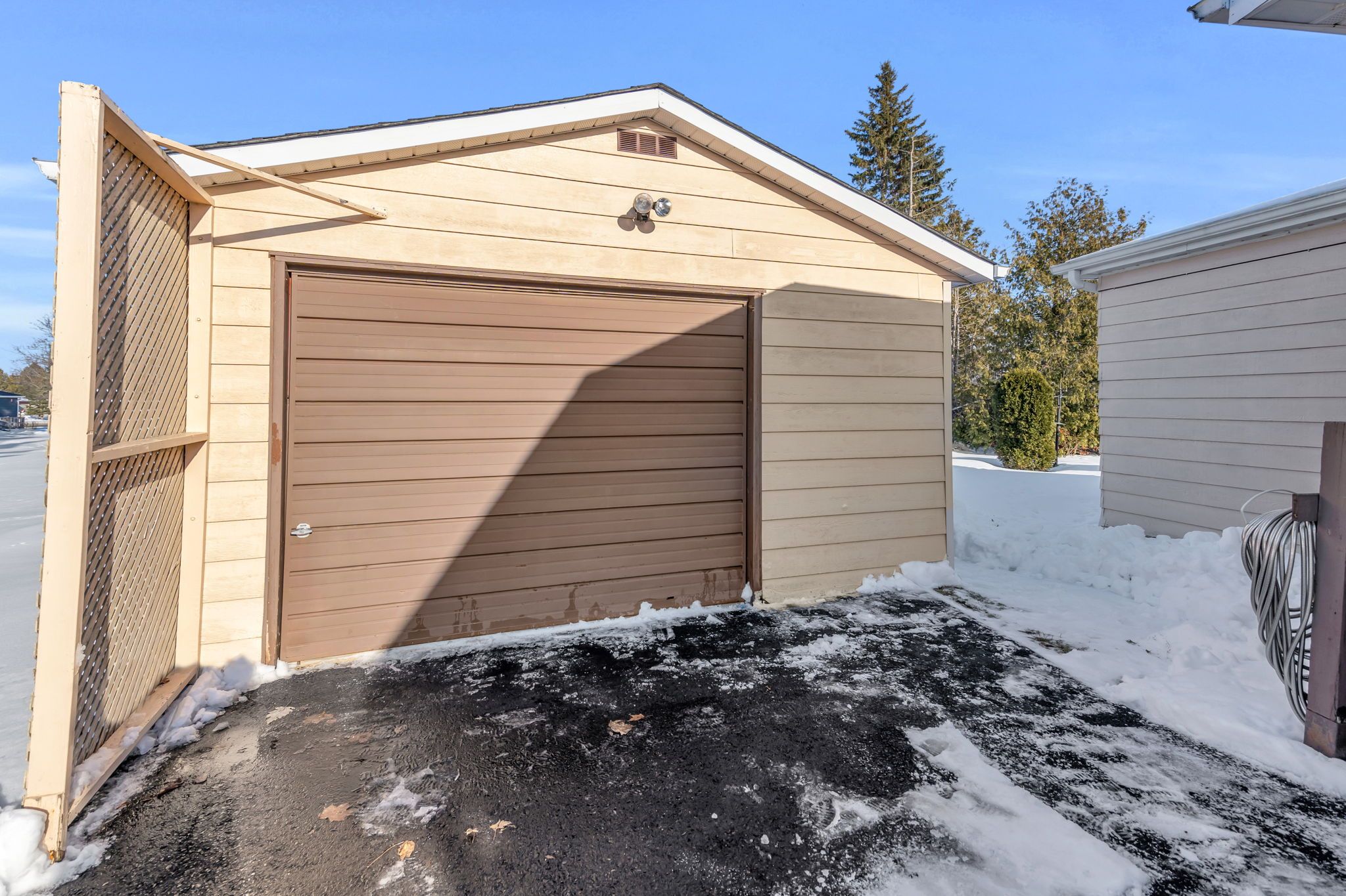 • Detached garage provides ample space for storage and tools.