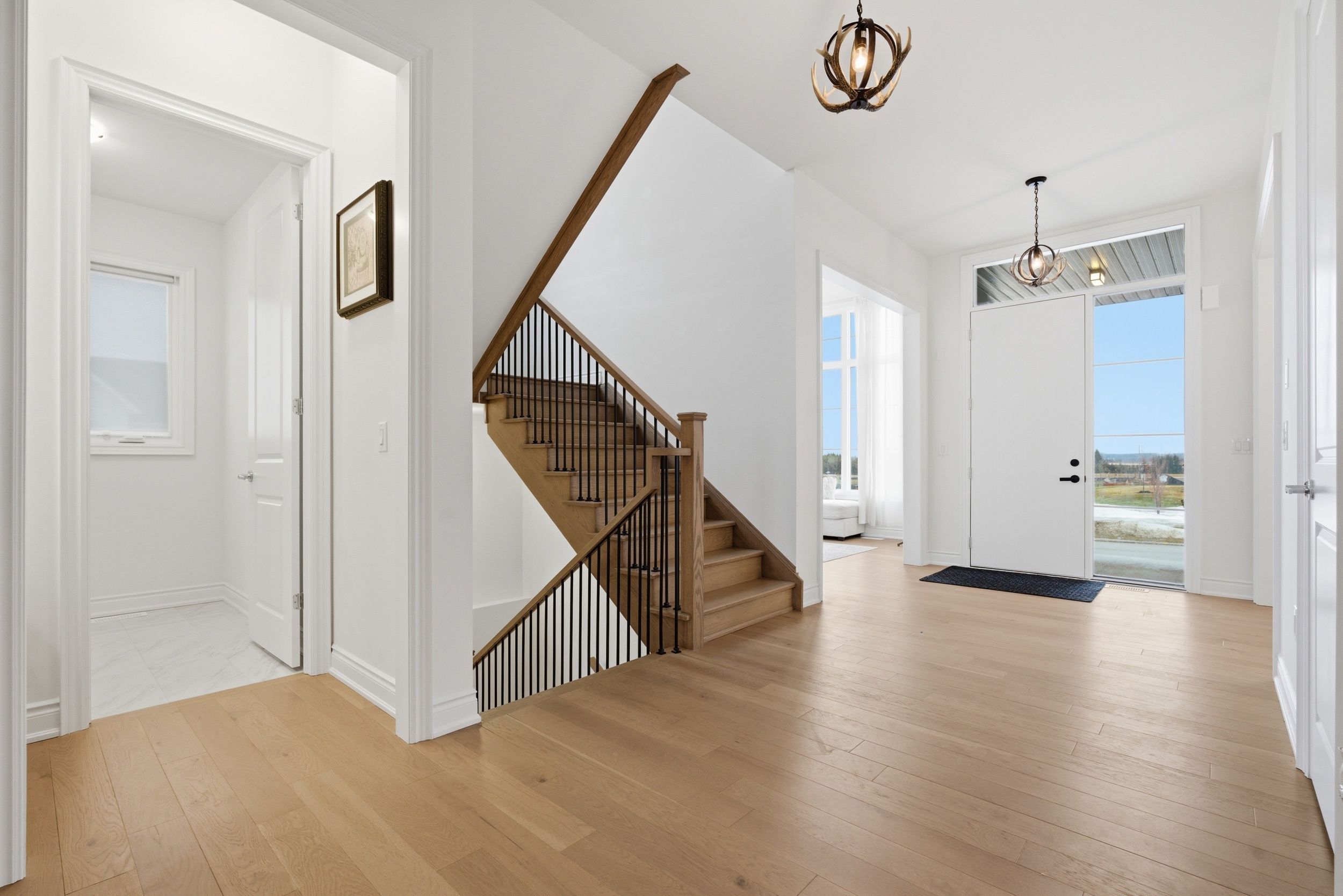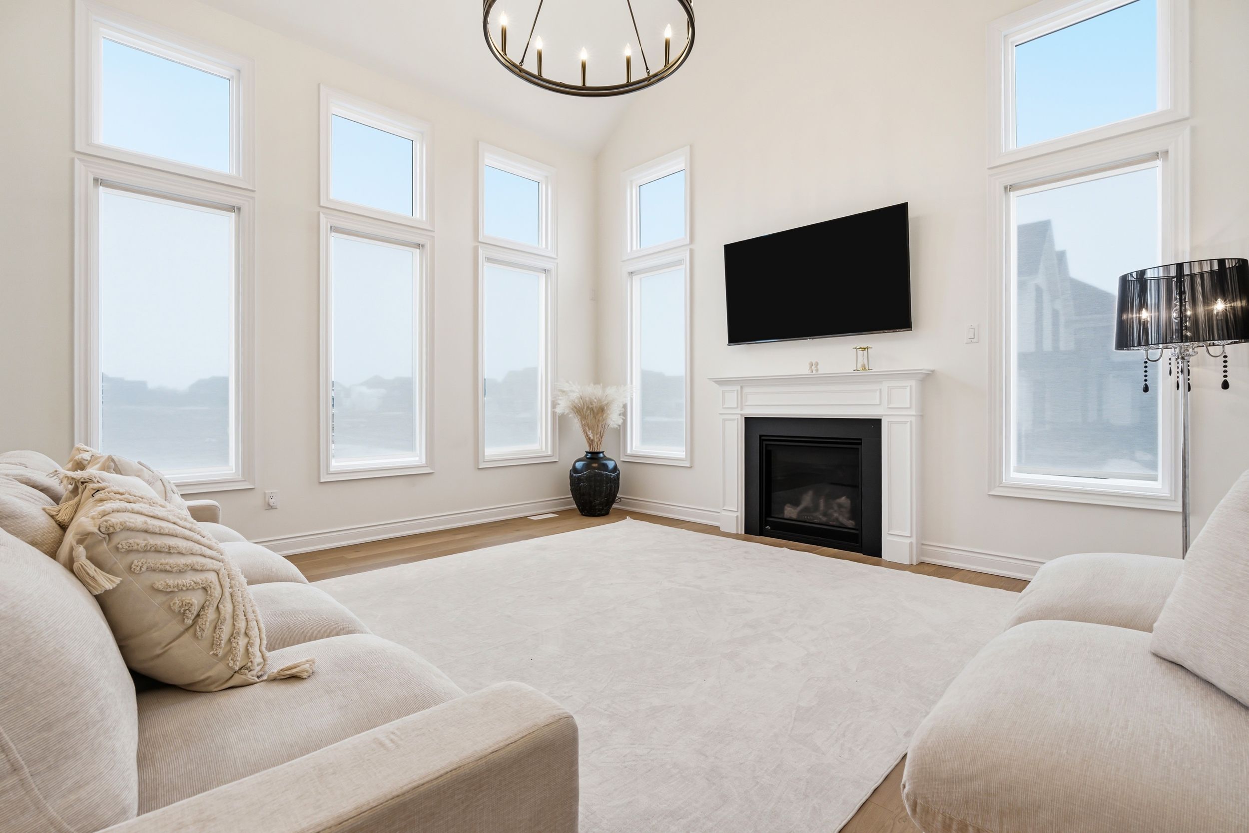 • Natural light floods the home with soaring ceilings and expansive windows.