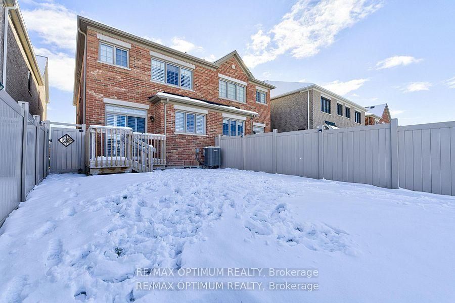 Welcome to this modern 2022 built 4 bedroom semi-detached home in the high-demand bram west community. It offers 1840 sq ft of above-ground living space with a bright open-concept layout. This home features: solid hardwood floors throughout the home, 9-foot ceiling on main floor with smart pot lights & california shutters run throughout the home, adding both style and privacy. The kitchen is a true chef's space, finished with quartz counters, tiled backsplash, large centre island, shaker cabinets, stainless steel appliances with microwave insert, and plenty of workspace for everyday cooking. The breakfast area walkout to deck which leads to fully fenced large backyard. Upstairs, you'll find four spacious bedrooms designed for comfort. Master bedroom has large walk-in closet and spa like 4 pc ensuite, and soaker tub. The home also features a smart doorbell, an ev charger in the garage, and thoughtful upgrades throughout . The unfinished basement with a separate side entrance offers excellent potential for an apartment or in-law suite and includes cold storage, providing added functionality and storage space. Located just minutes from huttonville elementary school, the upcoming embleton community centre, park and right at the mississauga border with easy access to hwy407 and hwy401, this is a fantastic choice for families looking for convenience and a vibrant neighbourhood. Beyond a home, this property gives you modern living, a welcoming community, and excellent accessibility. Don't miss it !
