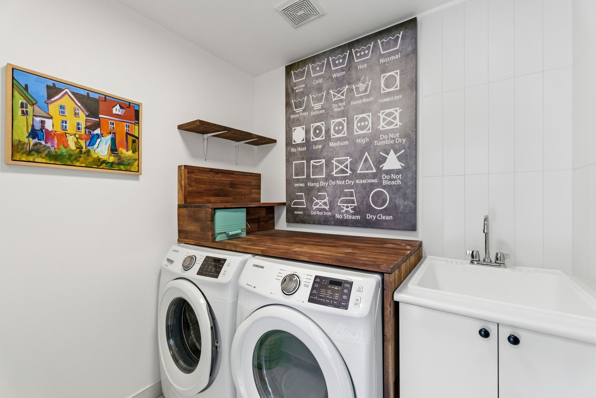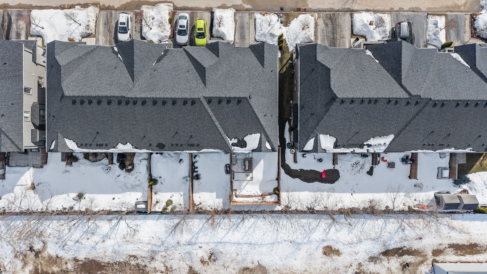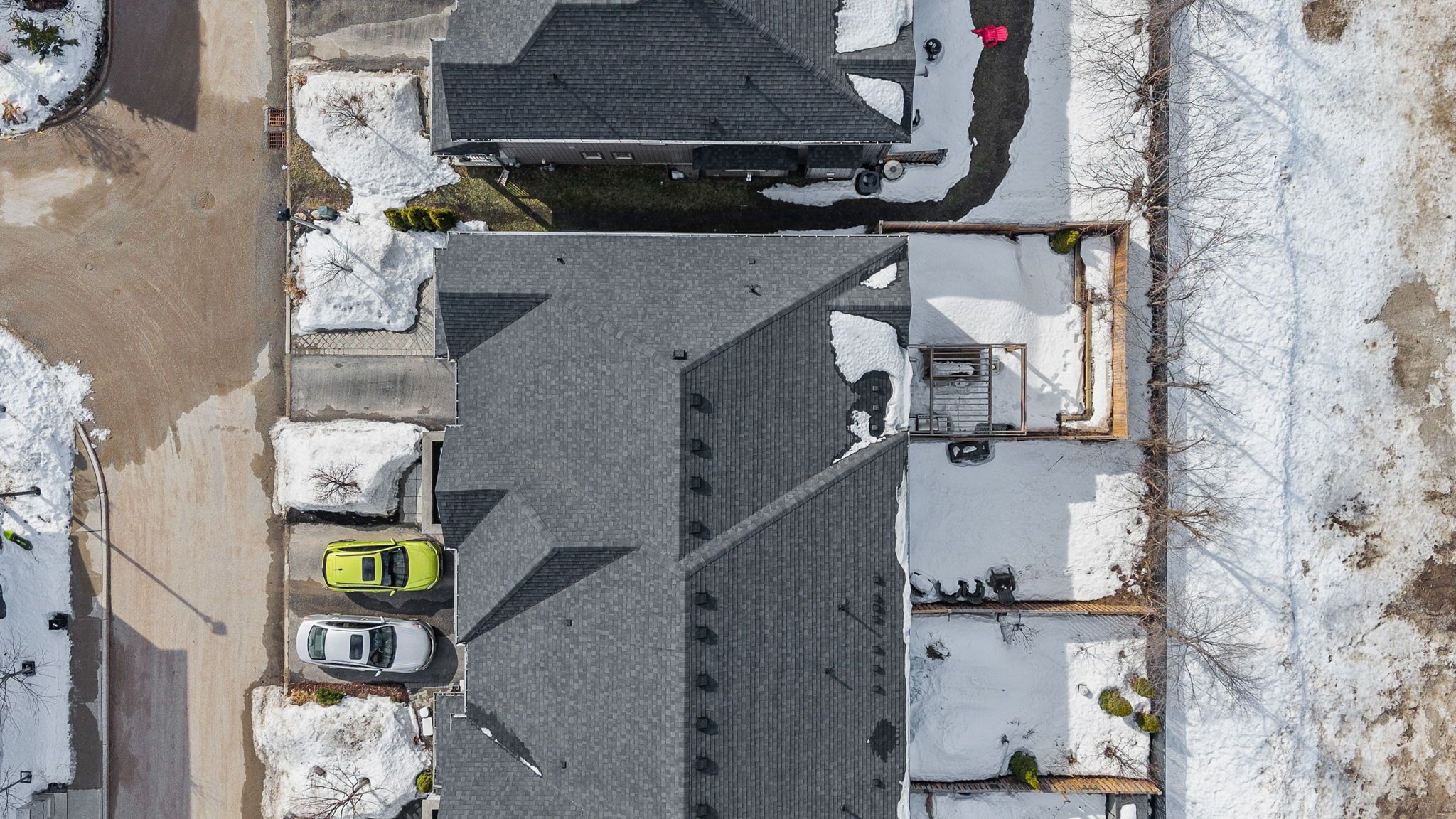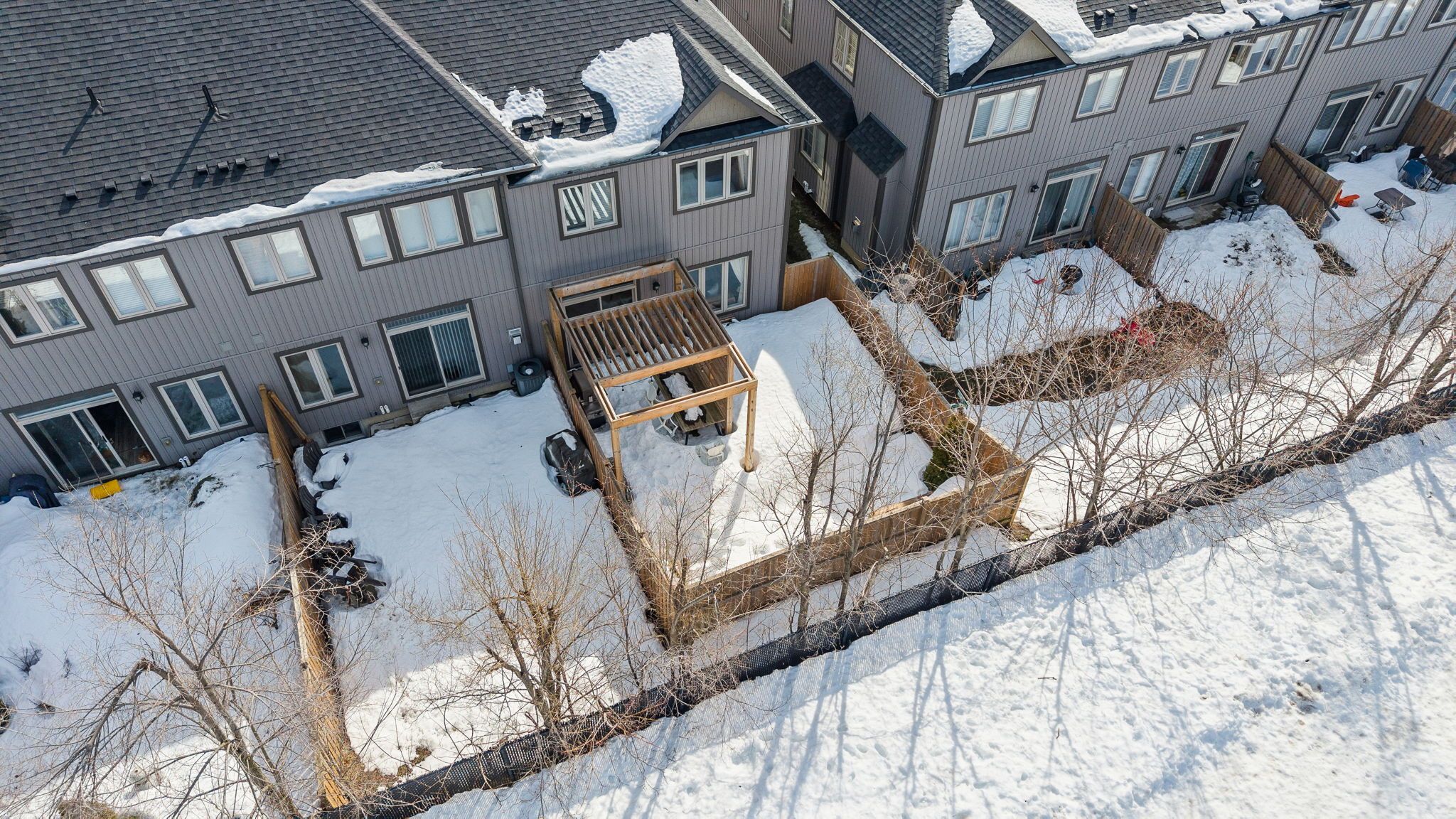 • Fully fenced backyard with deck, backing onto mature trees for privacy.