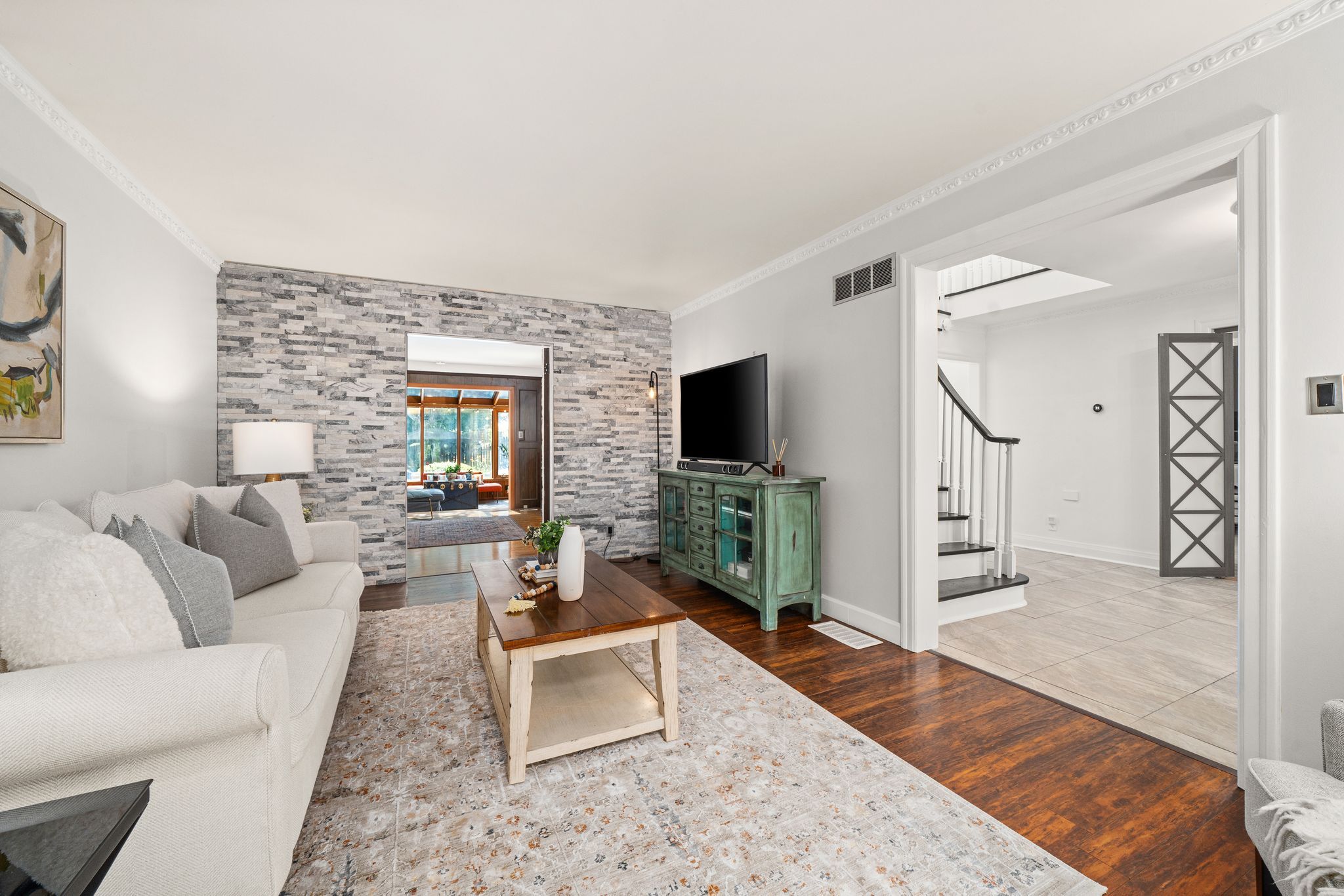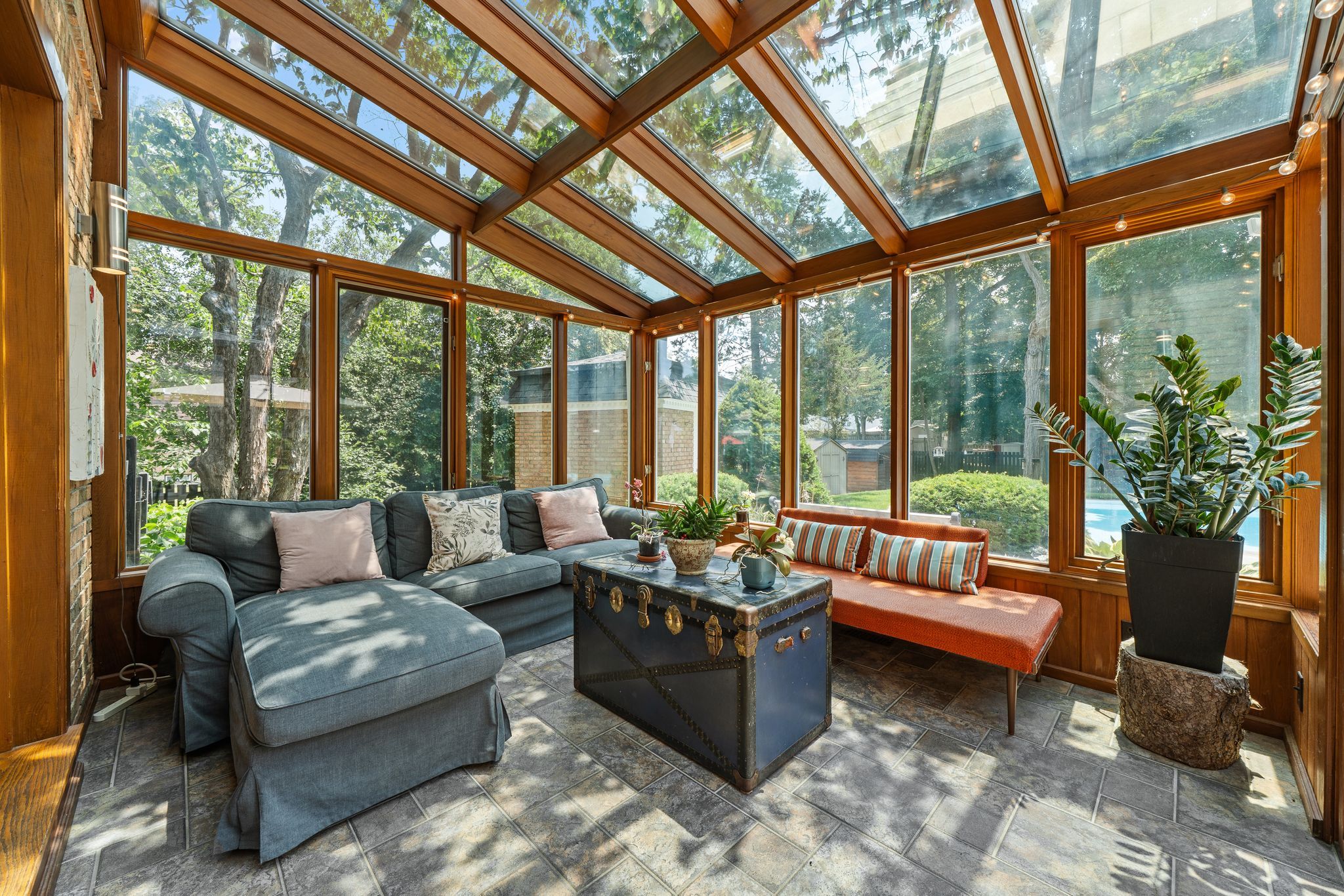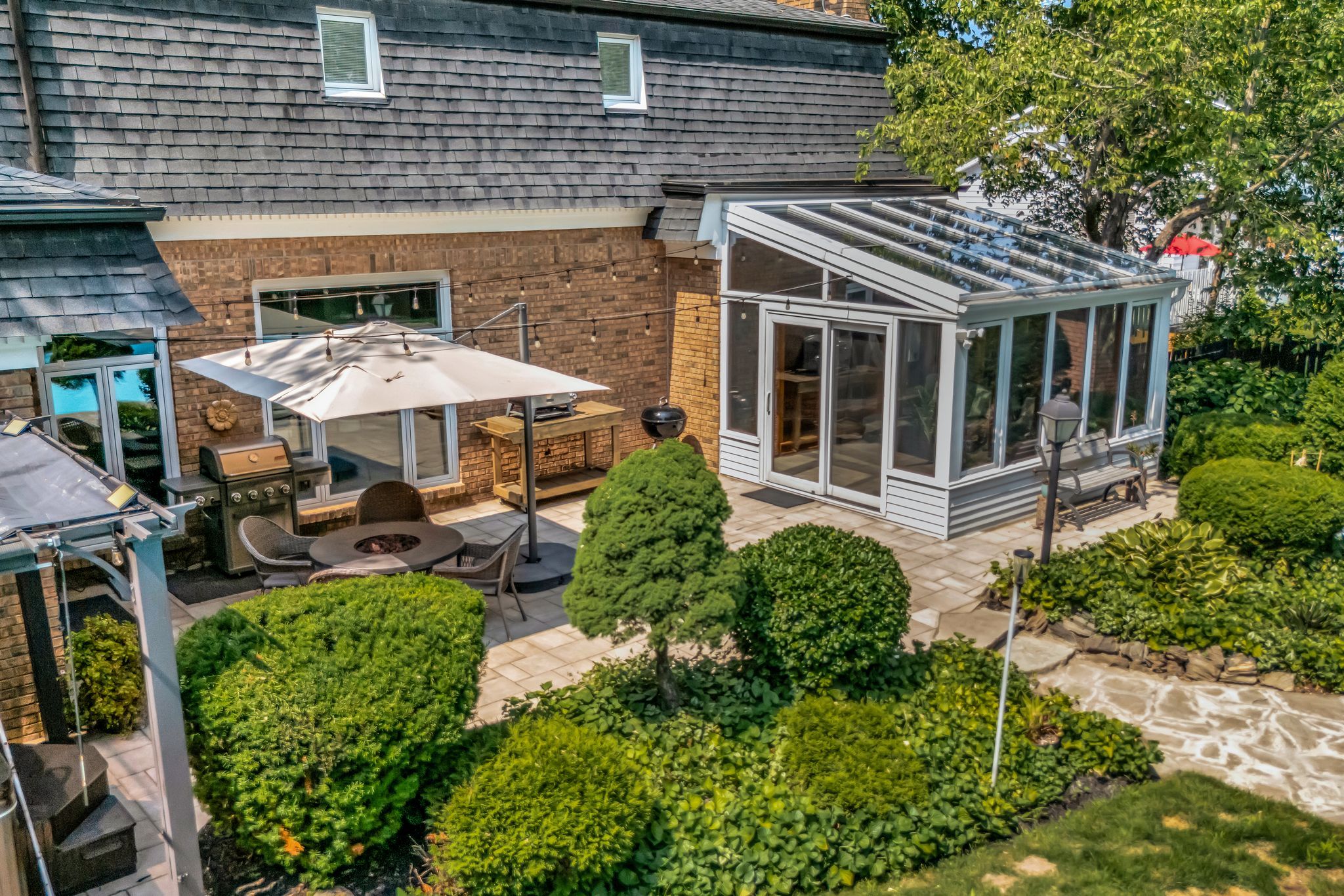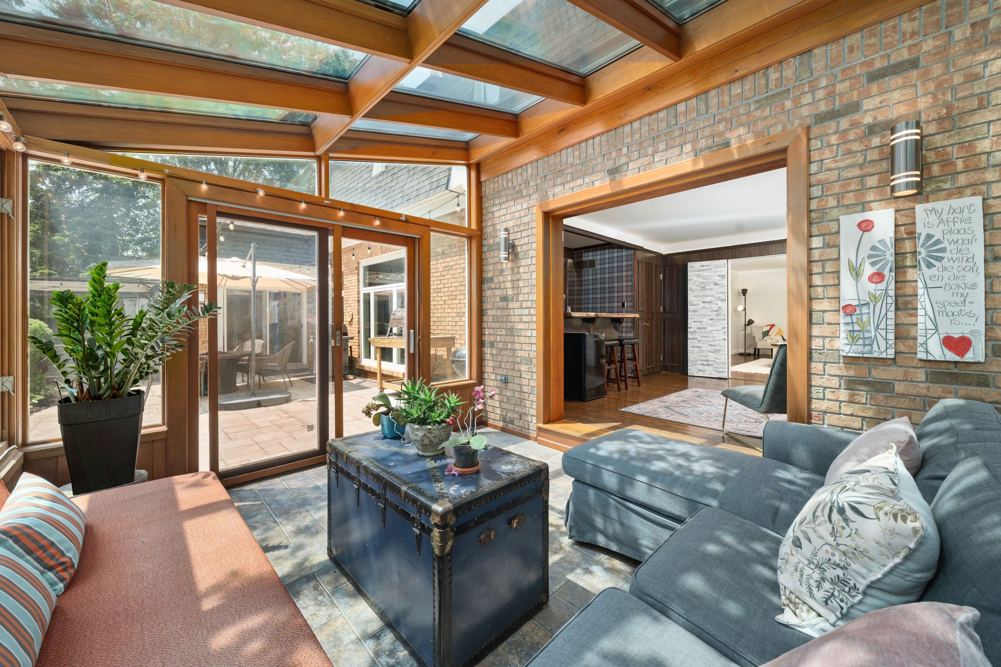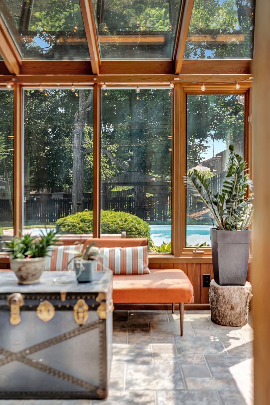 • Bright four-season sunroom connects indoor space with the outdoor area.