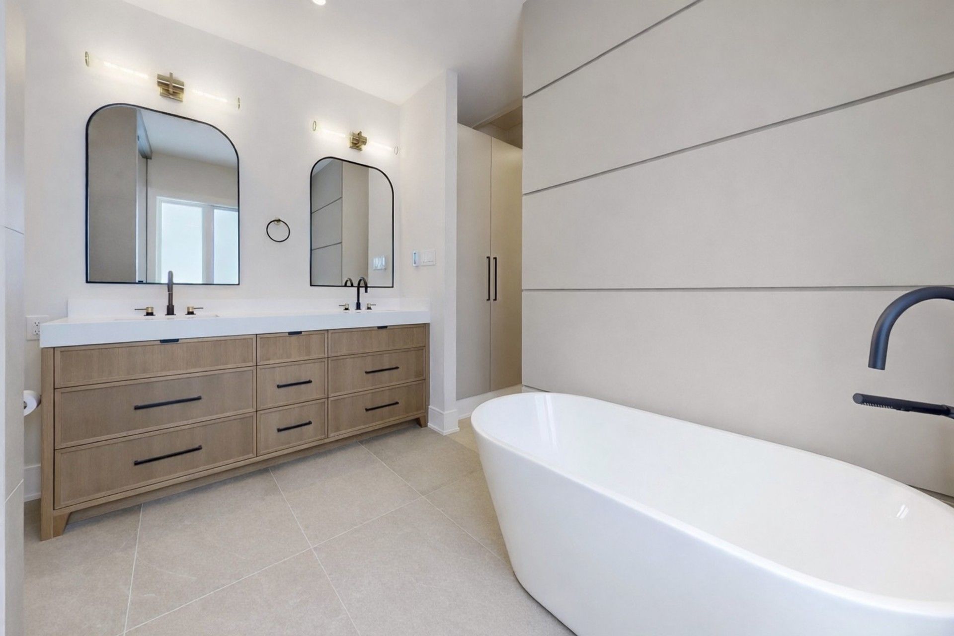 • Bright primary bedroom includes a luxurious ensuite with freestanding tub and double sinks.
