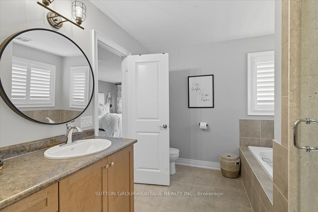 Beautifully crafted highmark home - four-bedroom, four-bathroom residence in one of whitby's most exclusive neighbourhoods. Curb appeal is undeniable with a timeless brick and stone exterior, an asphalt driveway framed with tumbled stone pavers, new garage doors, and thoughtfully designed perennial gardens enhanced by maturing trees including columnar oak, spruce, and a japanese maple. The fully fenced backyard is ideal for entertaining with a custom deck, pergola, and shed, while natural gas connections for both a barbecue and fire table make it the perfect space to gather year-round. An in-ground sprinkler system ensures the grounds are easy to maintain. Inside, the home showcases elegant details and functional design. The main floor features hardwood flooring throughout, extending up the hardwood staircase and across the upper hallway. Soaring nine-foot ceilings and extended eight-foot doors and doorways enhance the sense of space, while coffered ceilings in the living room and family room add architectural character. The kitchen is both stylish and practical, complete with quartz countertops, pantry, double sink with garburator, pot lights, pendant lighting, and a breakfast bar. The mudroom, with direct access to the garage, offers excellent storage and organization for busy households. Upstairs, the primary suite provides a private retreat with a large walk-in closet and a luxurious five-piece ensuite. The second bedroom includes its own four-piece ensuite, while the third and fourth bedrooms share a spacious five-piece jack-and-jill bath. Modern conveniences include electric vehicle readiness with a 240v outlet and breaker space for a level two charger. Located close to highway 407 for easy commuting, and minutes to schools, parks, and shopping, this home offers the perfect blend of luxury, convenience, and community living. Detailed features room by room is attached.