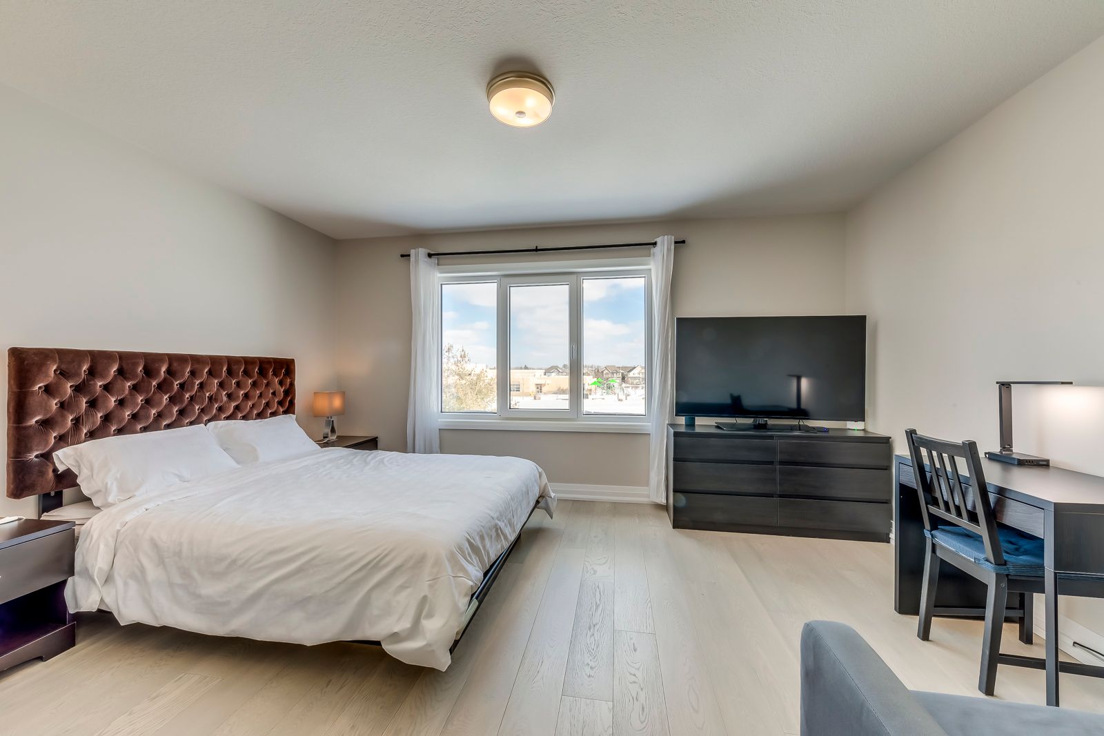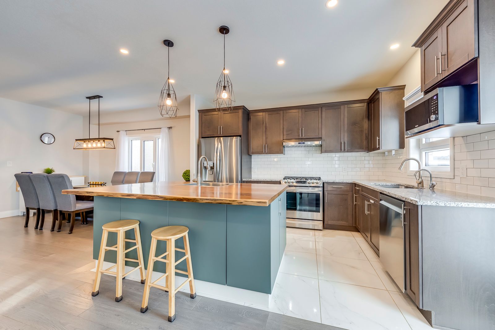 • Upgraded 5-bed, 5-bath home with an open-concept living area.