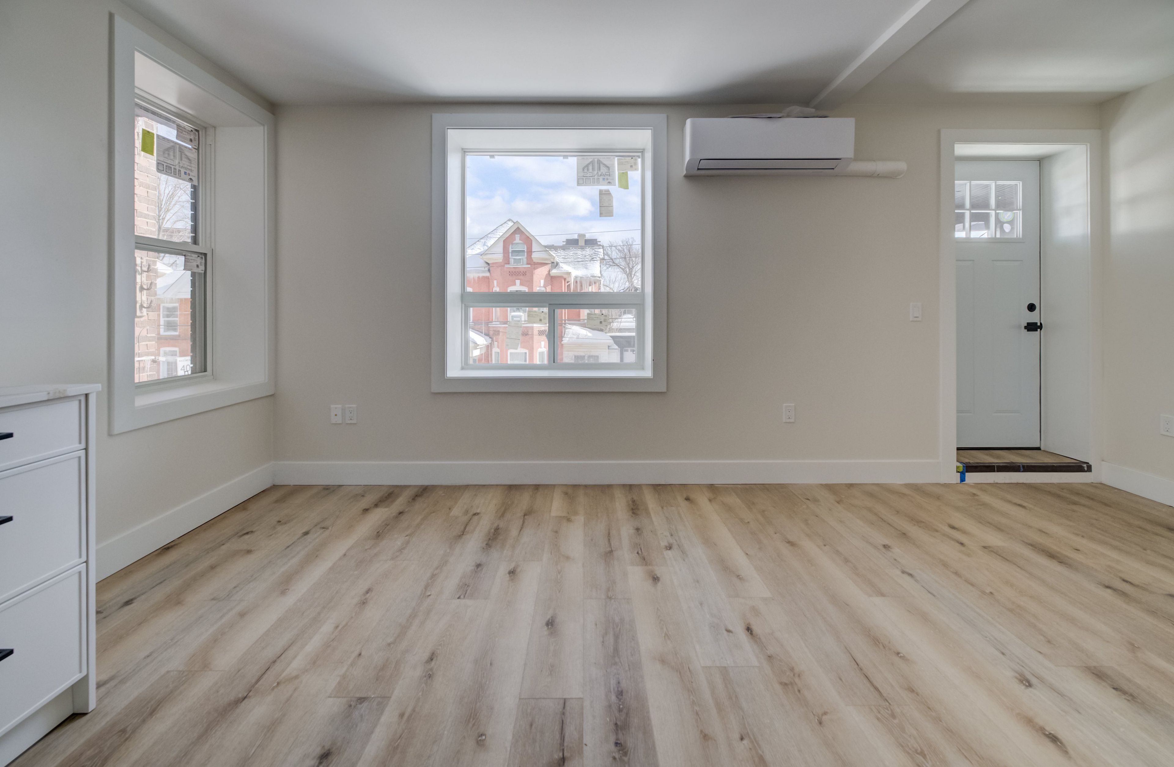Welcome to 22 grant, located in the heart of hamiltons this stunning, newly renovated 1-bedroom, 1-bathroom unit offers a perfect blend of modern luxury and historic character. Housed within a beautifully restored white-brick property with bold black accents, this suite features an open-concept layout with wide-plank vinyl flooring, recessed lighting, and a ductless heat pump for year-round climate control. The brand-new kitchen is the heart of the homeee, crisp white cabinetry with a black sink, and modern appliances. The bathroom is a standout feature, offering a spa-like atmosphere with a marble and glass surround. Conveniently located near landmarks like j. C. Beemer park and hamilton general hospital, highway access, and transit , this unit offers a fresh, turnkey living experience in a desirable community.