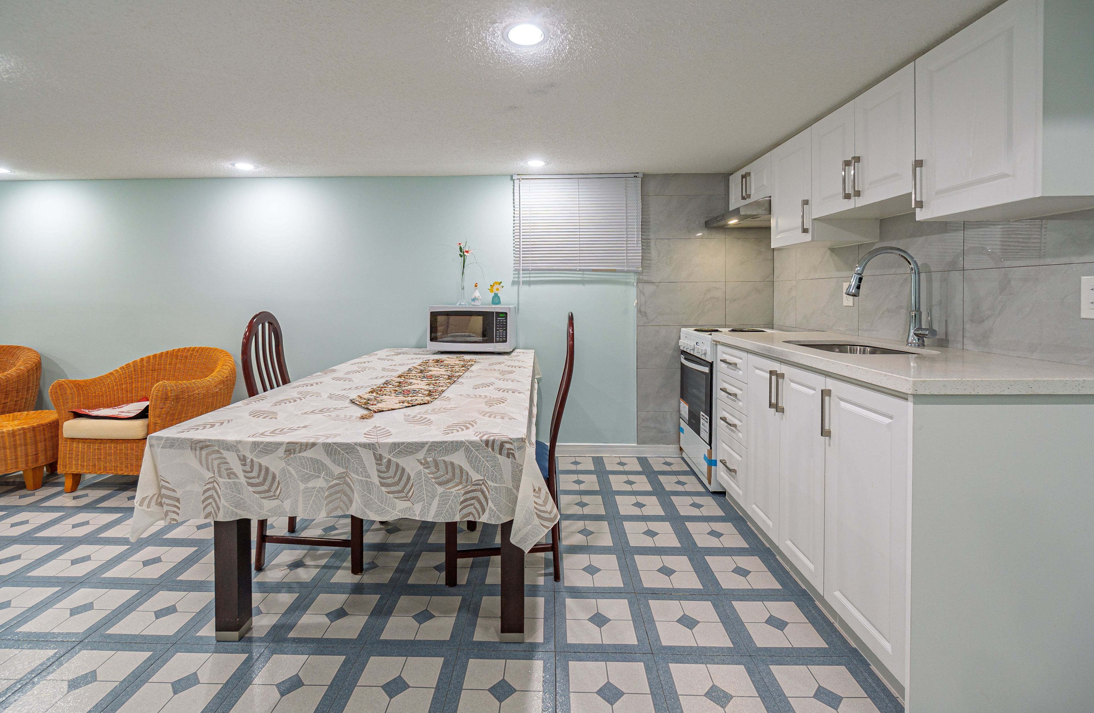 • Newly renovated kitchen with plenty of cabinet space for hosting.