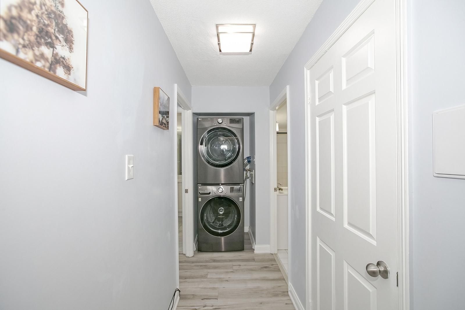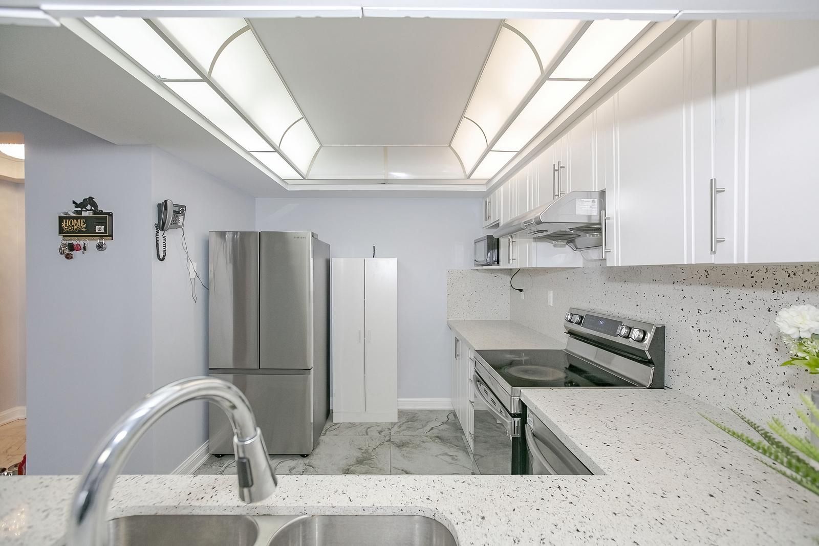 Check out this beautifully renovated two large bedroom + solarium, two-bathroom condo that combines modern style and ultimate comfort. The updated kitchen boasts sleek countertops and brand-new stainless steel fridge and stove. Enjoy new flooring, blinds, and a washer/dryer for added convenience. Both bathrooms have been renovated for a fresh, contemporary feel. All renovation done in 2023. The unit also comes with two underground parking spaces and a storage locker. Your maintenance fee covers hydro, heat, water, cable tv, and security services with a gatehouse. Plus, you'll have access to an impressive range of on-site amenities, including a large indoor saltwater pool, hot tub, billiards room, two gyms, car wash & vacuum service, tennis courts, basketball court, party room, and more! Located in a prime area with easy access to transit, parks, highways, hospitals, and shopping, this is an opportunity you won't want to miss!