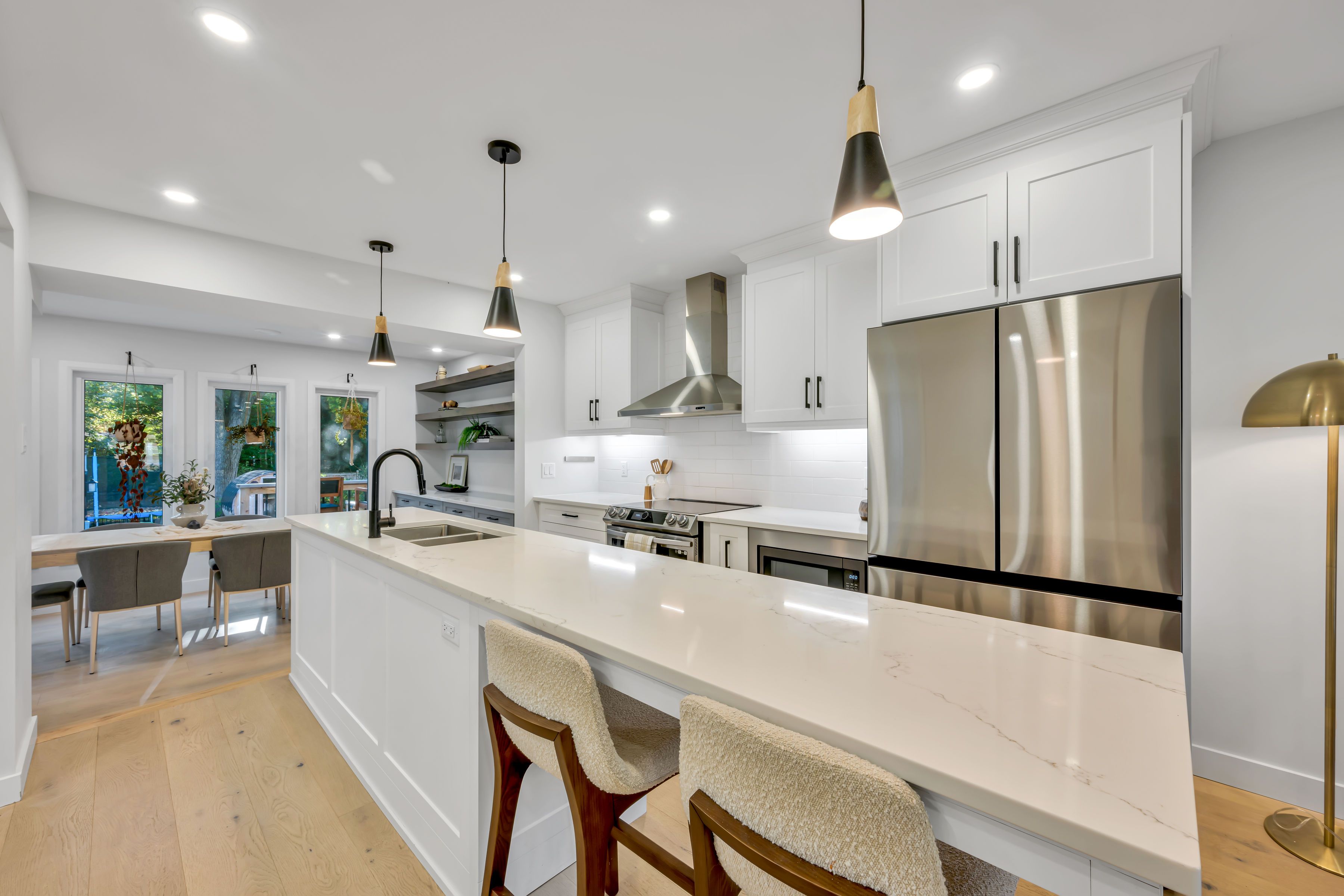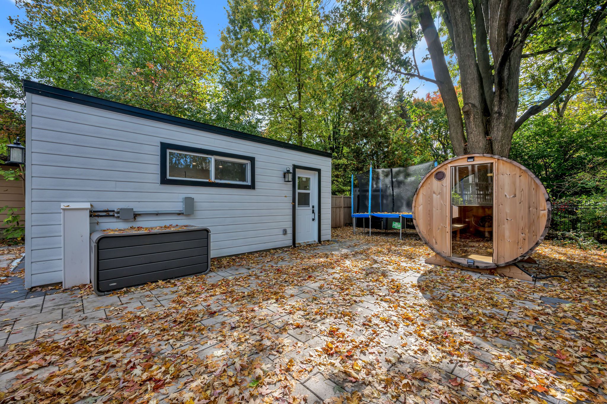 Experience elevated living in this fully remodelled 3+1 bedroom, 3. 5 bathroom home, where every detail has been thoughtfully curated. From top to bottom & front to back, no surface has been left untouched in this beautiful renovation and addition. Step inside to find gorgeous wide-plank hardwood flooring throughout, a bright, open-concept main level that's perfect for both everyday living & entertaining. The designer kitchen boasts a striking 12-foot island, quartz countertops, custom cabinetry & high-end stainless steel appliances. The spacious living room features a beautiful brick-surround decorative fireplace, while the large dining area includes a built-in buffet offering both elegance & extra storage. A stylish 2-piece bath, rear deck access & a custom front entry closet complete the main floor. Upstairs, retreat to your spectacular primary suite with a private balcony, large walk-in closet & a spa-inspired 5-piece ensuite with a custom-tiled shower & double-sink vanity. Two additional bedrooms - one with its own walk-in closet along with a beautifully appointed 4-piece family bath, provide comfort & space for the whole family. The fully finished lower level offers extra-high ceilings, a large family room, den or guest bedroom, 3-piece bath, laundry & ample storage perfect for versatile living. Step outside to your private backyard oasis situated on a premium deep lot, featuring over $200,000 in professional front-to-back landscaping, brand new 2 tiered-deck, hot tub & dry sauna. Thoughtful stonework, mature plantings, ambient lighting & functional outdoor living zones create a resort-like experience at home. A heated, finished outbuilding provides a quiet retreat for a home office, gym, or creative studio! Ideally located just steps from bank street shops, restaurants, cafés & moments from the rideau river, where you can launch your kayak, paddle board, or canoe at linda thom park. This is old ottawa south living at its finest!