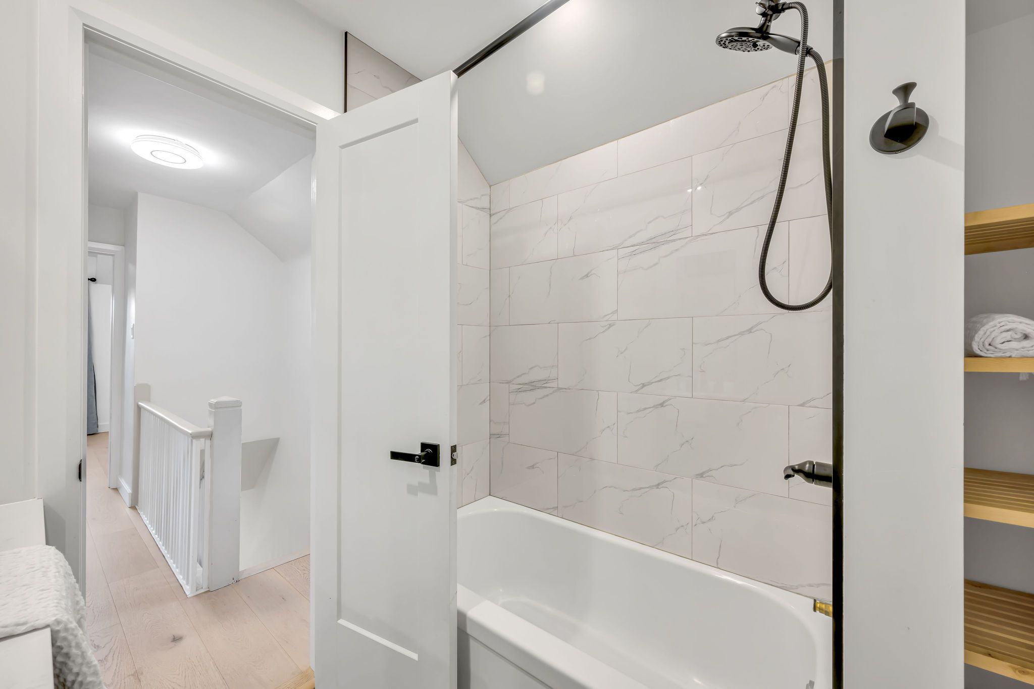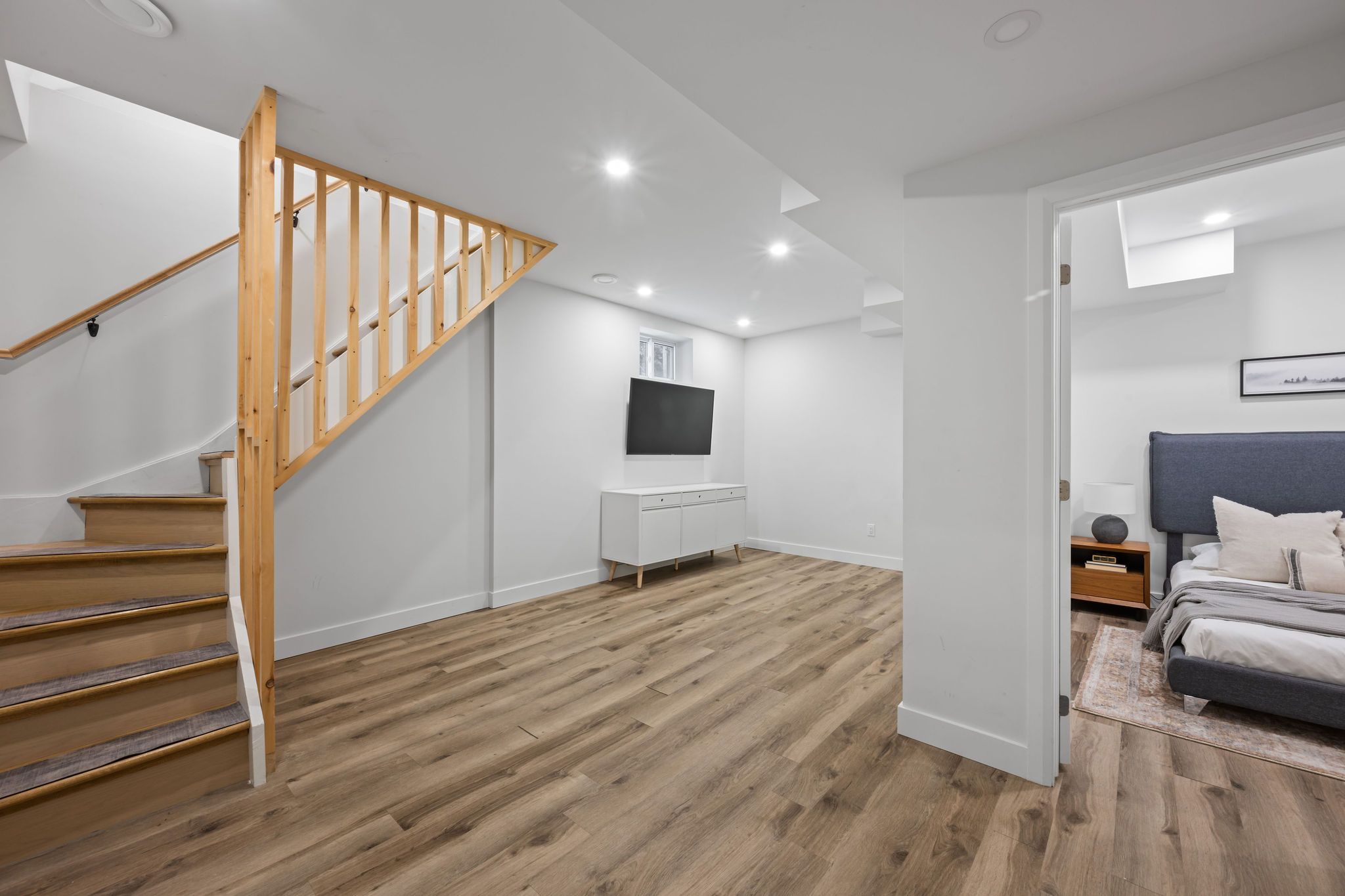 • Bright, open-concept main level with wide-plank hardwood flooring throughout.
