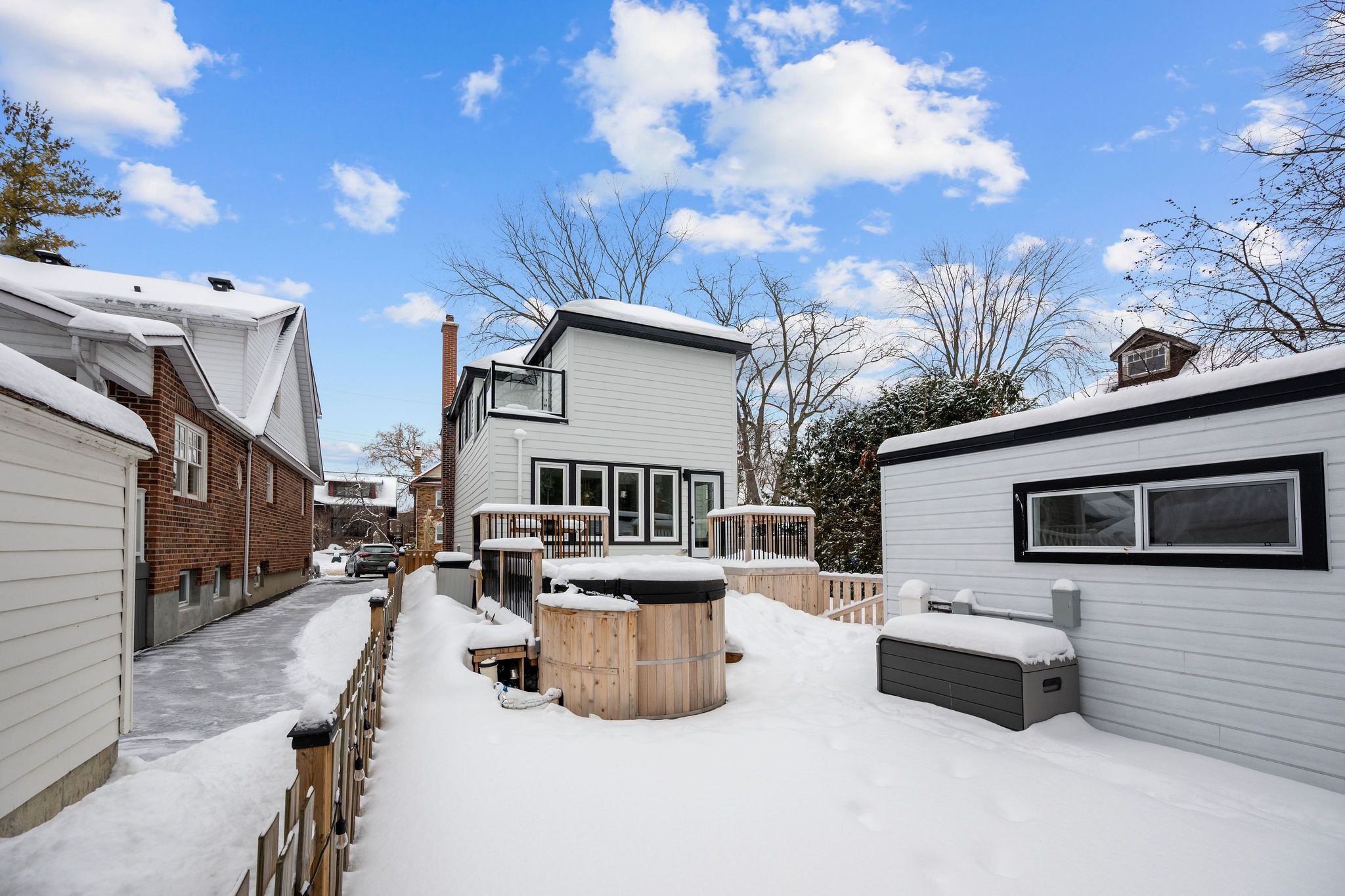 Enjoy refined and sophisticated living in this fully remodelled 3+1 bedroom, 3. 5 bathroom home where all the details have been thoughtfully curated. From top to bottom & front to back, no surface has been left untouched in this beautiful renovation and addition. Step inside to find gorgeous wide-plank hardwood flooring throughout, a bright, open-concept main level that's perfect for both everyday living & entertaining. The designer kitchen boasts a striking 12-foot island, quartz countertops, custom cabinetry & high-end stainless steel appliances. The spacious living room features a beautiful brick-surround decorative fireplace, while the large dining area includes a built-in buffet offering both elegance & extra storage. A stylish 2-pc bath, rear deck access & front entry closet complete the main floor. Upstairs, retreat to your spectacular primary suite with a private balcony, large walk-in closet & a spa-inspired 5-piece ensuite with a custom-tiled shower & double-sink vanity. Two additional bedrooms - one with its own walk-in closet along with a beautifully appointed 4-piece family bath, provide comfort & space for the whole family. The fully finished lower level offers extra-high ceilings, a large family room, den or guest bedroom, 3-piece bath, laundry & ample storage perfect for versatile living. Step outside to your private backyard oasis situated on a premium deep lot, featuring over $200,000 in professional front-to-back landscaping, brand new 2 tiered-deck, hot tub & dry sauna. Thoughtful stonework, mature plantings, ambient lighting & functional outdoor living zones create a resort-like experience at home. A heated, finished outbuilding provides a quiet retreat for a home office, gym, or creative studio! Ideally located just steps from bank street shops, restaurants, cafes & moments from the rideau river, where you can launch your kayak, paddle board, or canoe at linda thom park. This is old ottawa south living at its finest!