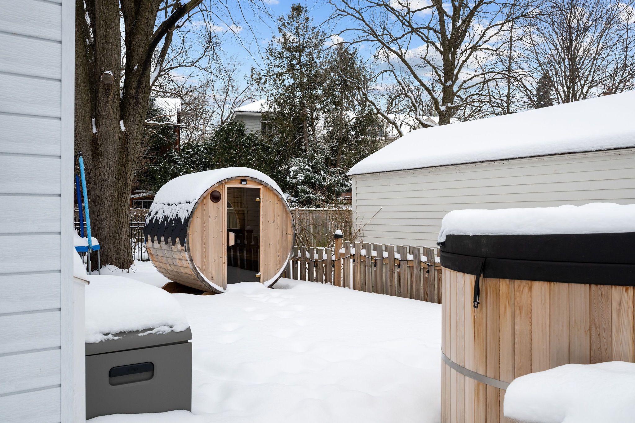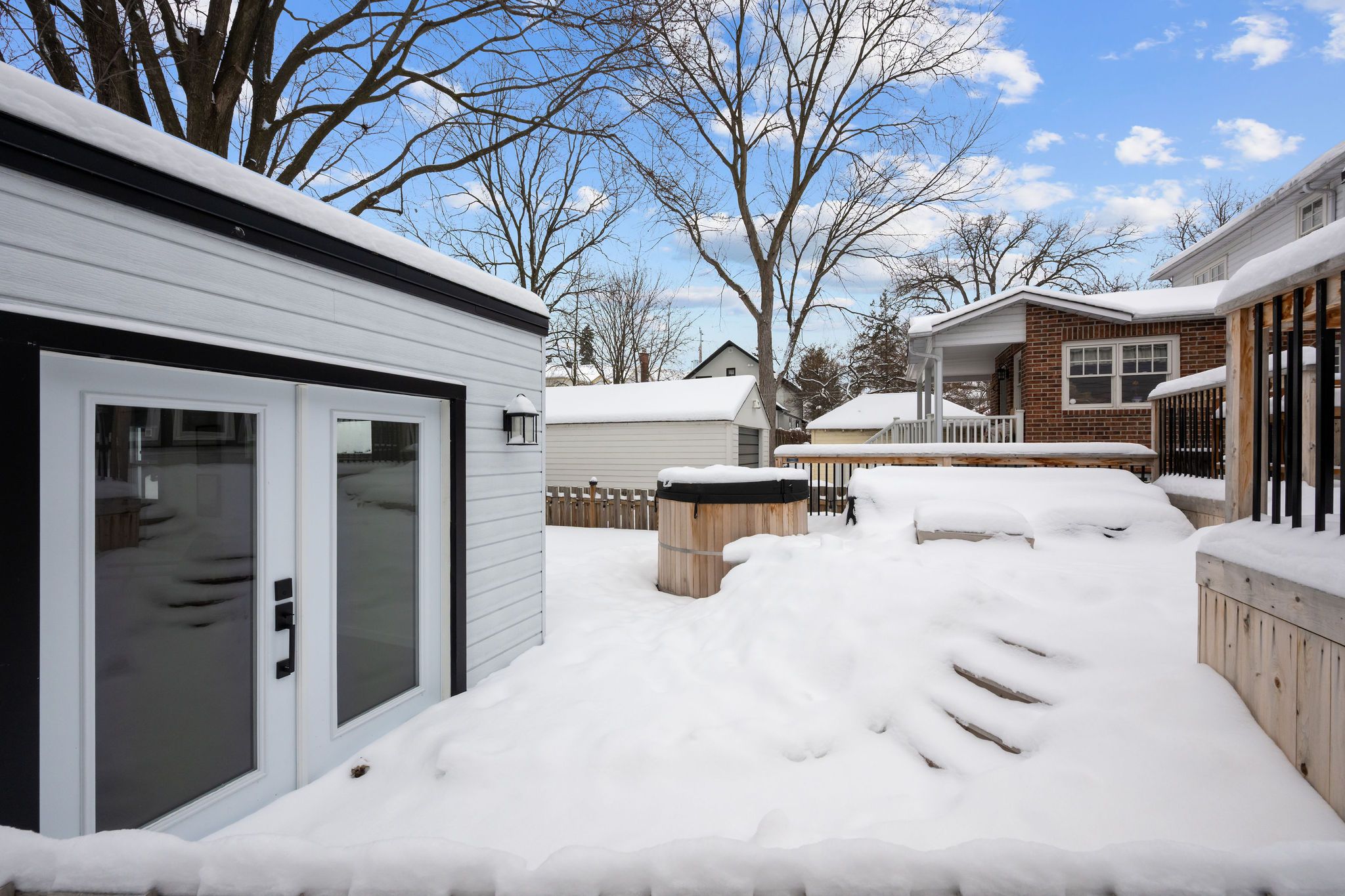 • Private backyard oasis with a new deck, hot tub, and beautiful landscaping.
