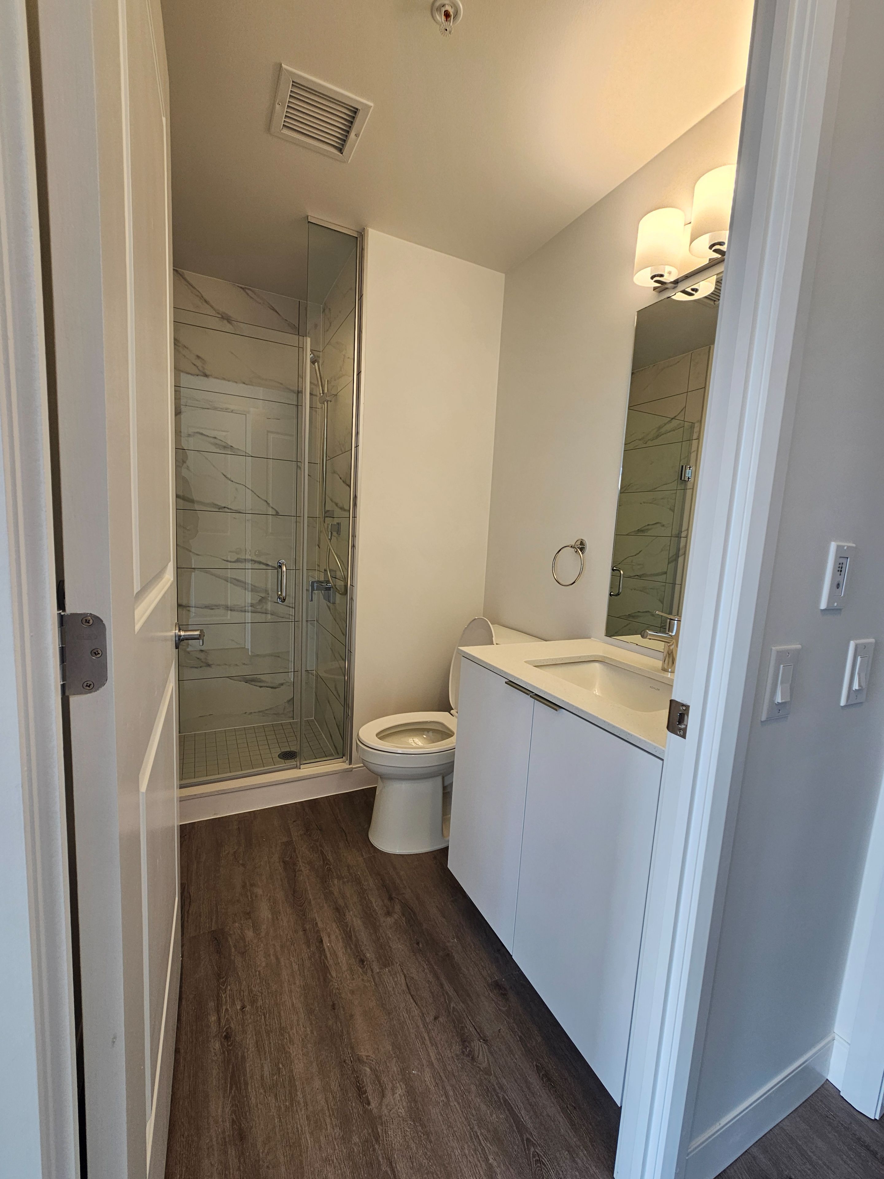 • Modern finishes with quartz countertops and in-suite laundry for convenience.