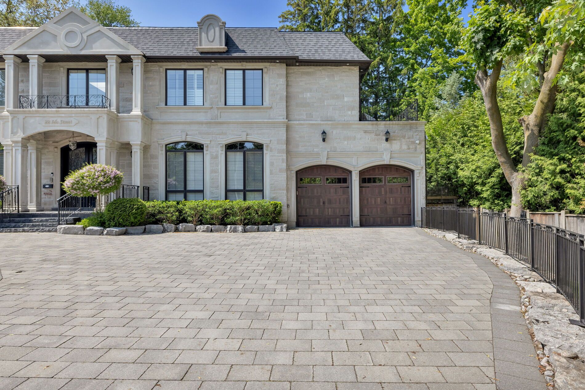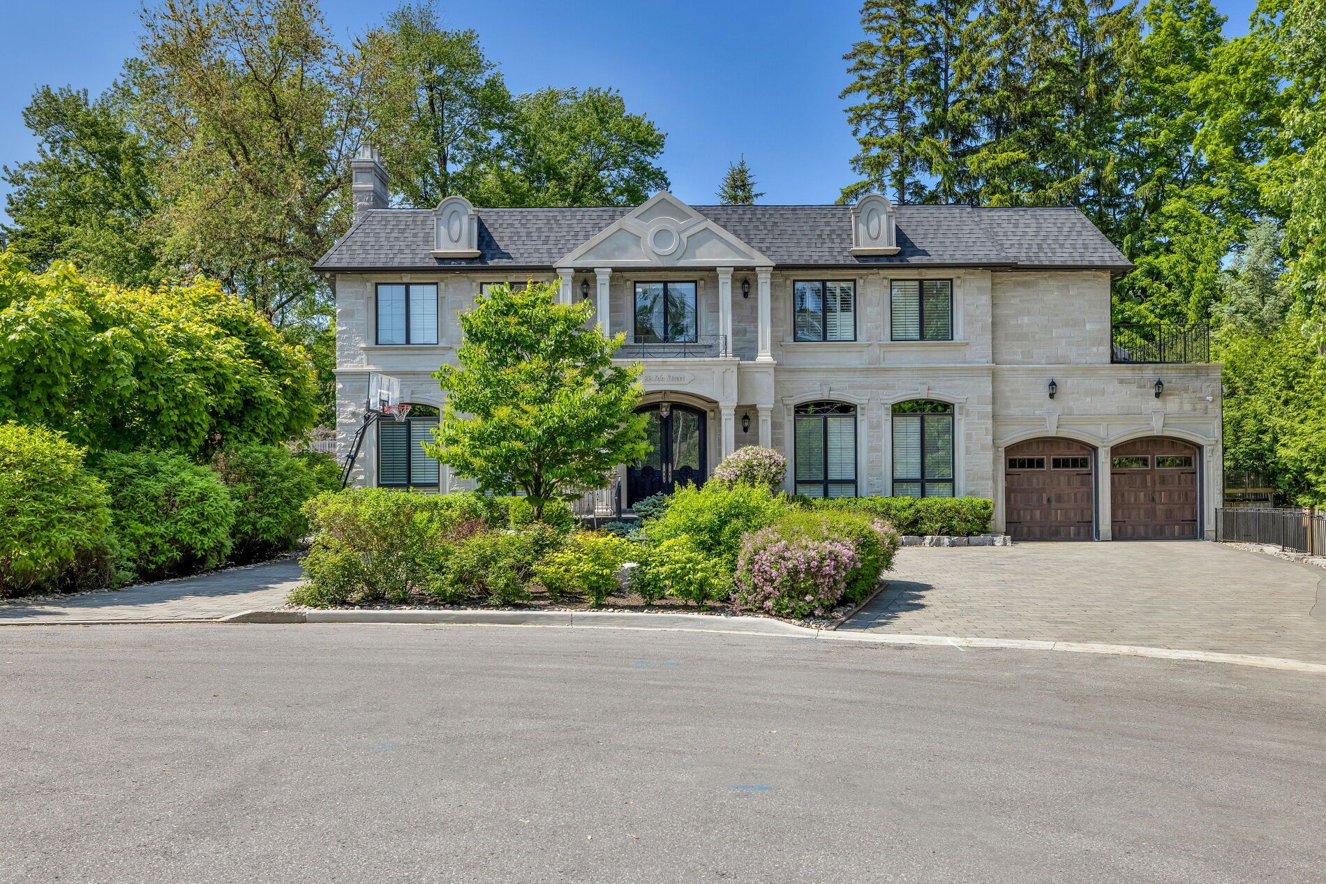 Welcome to 22 ida - a custom-built, french chateau-inspired estate that stands as a true masterpiece of craftsmanship and timeless elegance, nestled on a prized corner lot in a quiet cul-de-sac embraced by mature trees. Spanning more than 6,700 sqft of finished living space, this home offers an unparalleled blend of sophisticated design & modern comfort. Step inside to discover 5 spacious bedrooms & 7 opulent bathrooms, with exquisite hardwood & marble flooring throughout. The grand spiral staircase with wrought iron detailing sets the tone for the refined interiors, complemented by full panelled library, intricate crown moldings, & four fireplaces. Designed for the most discerning chef, the gourmet kitchen is equipped with top-of-the-line wolf & subzero appliances, custom cabinetry, & an oversized island, perfect for entertaining. The primary suite is a true retreat, boasting a walk-in closet & a spa-inspired ensuite. This extraordinary residence is a rare offering, blending timeless luxury with modern convenience in an unbeatable setting. Extras additional standout features include a glass-enclosed wine cellar, nanny quarters, a sophisticated bar, a private home theatre, and more. The exterior showcases the beauty of natural louisiana stone, enhancing the homes grand presence