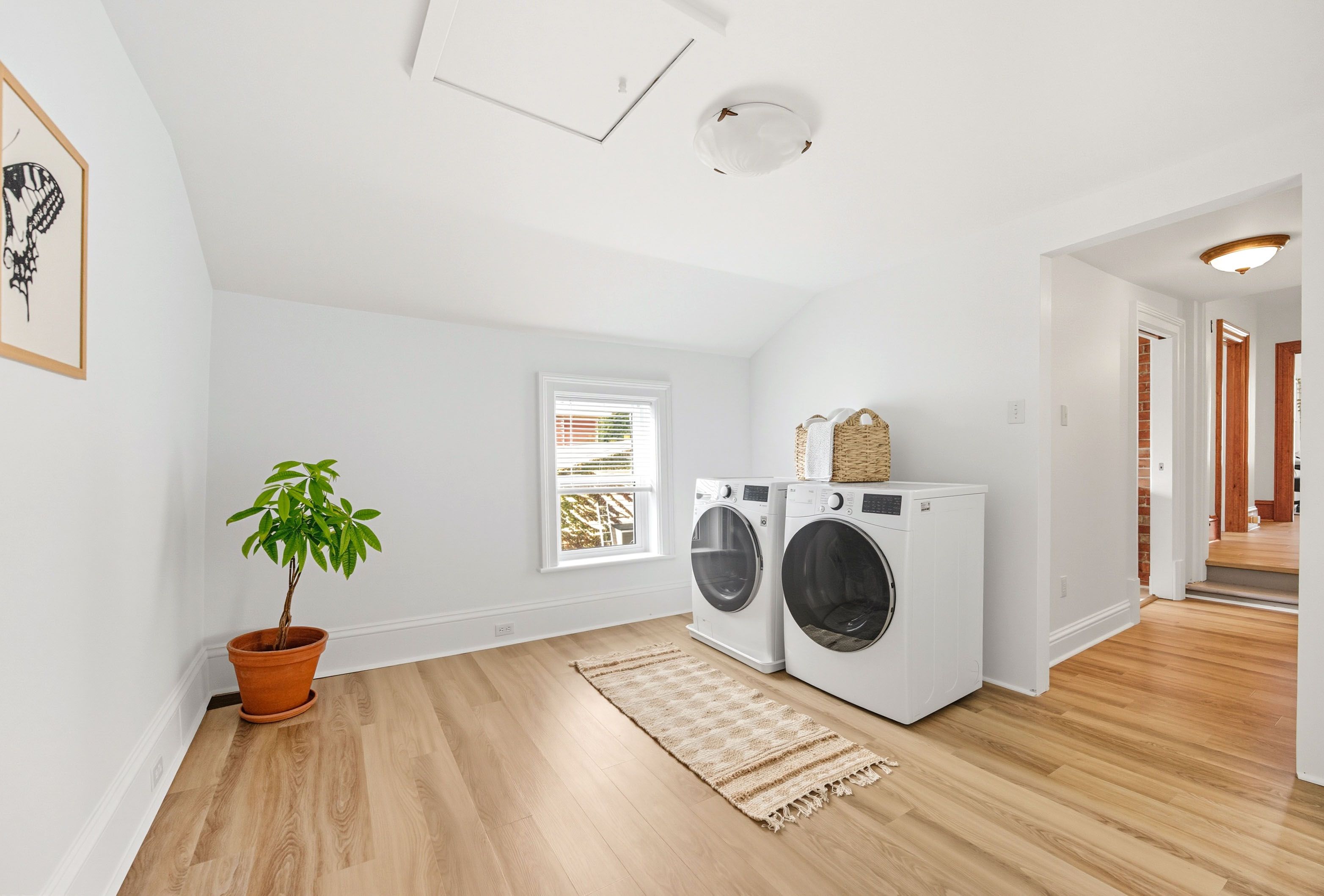 When we say move-in ready, we truly mean it. Simply pack your bags and settle in-everything has already been thoughtfully taken care of. Beyond the beautiful cosmetic updates, this home has seen major upgrades where it matters most: roof (2025), windows (2024), furnace and a/c (2022), flooring (2025/2021), attic and crawl space insulation (2022), new appliances (2022/2023), and even a 240-amp copper wiring system. The list goes on, giving you complete peace of mind-no unexpected expenses, no extra work, just effortless living from day one. This stunning 1,700 sq. Ft. Home is rich in character, featuring exposed brick accent walls, soaring ceilings, and oversized windows that flood the space with natural light. You'll find three generously sized bedrooms, each with its own closet, plus the added convenience of a second-floor laundry area for easy day-to-day living. Step outside to enjoy a spacious backyard with parking for up to four vehicles-perfect for families and entertaining alike. And the location truly seals the deal: just steps from grocery stores, schools, parks, gyms, the pool, and the vibrant downtown strip. This isn't just a home that looks right-it's one that feels right the moment you walk in.