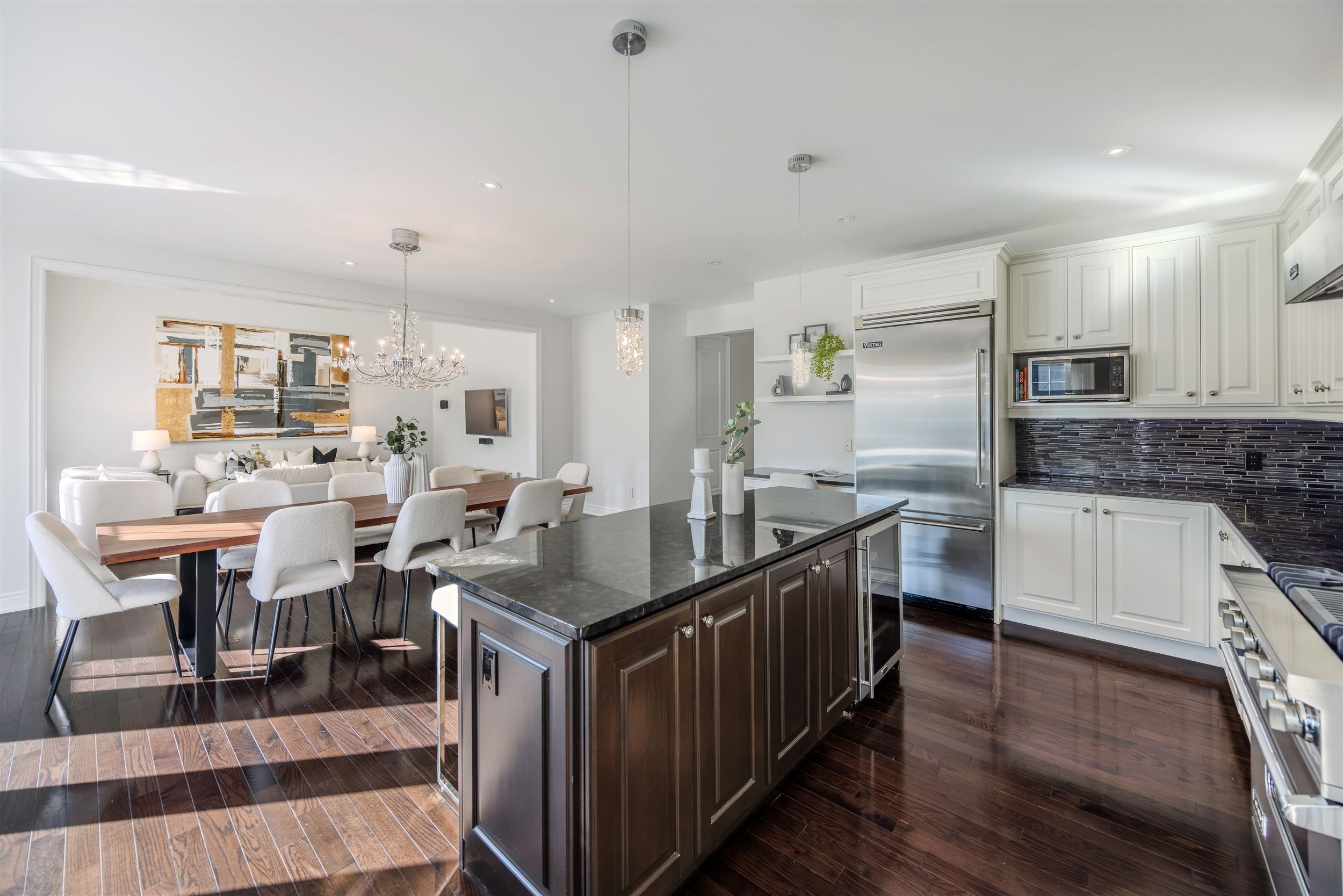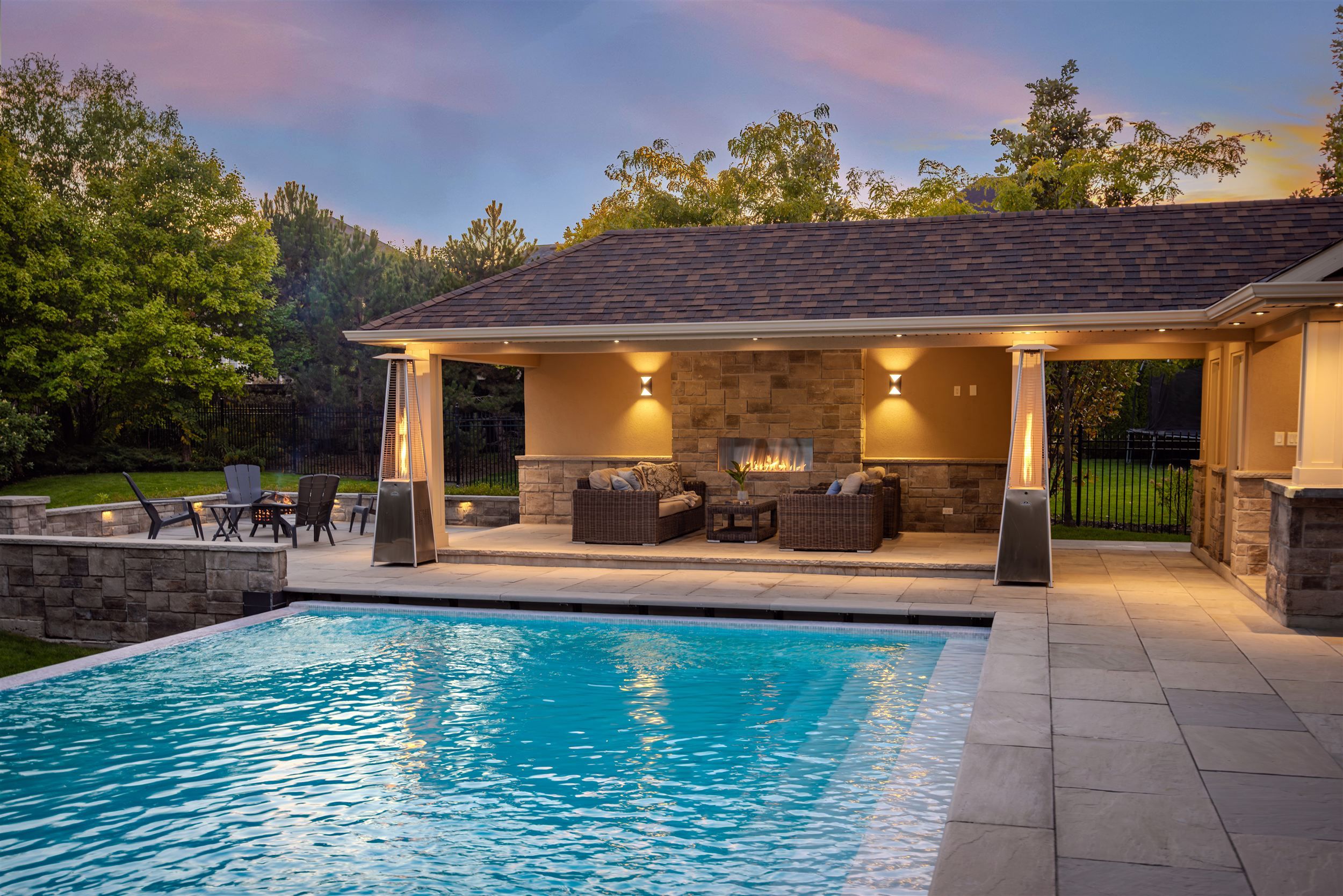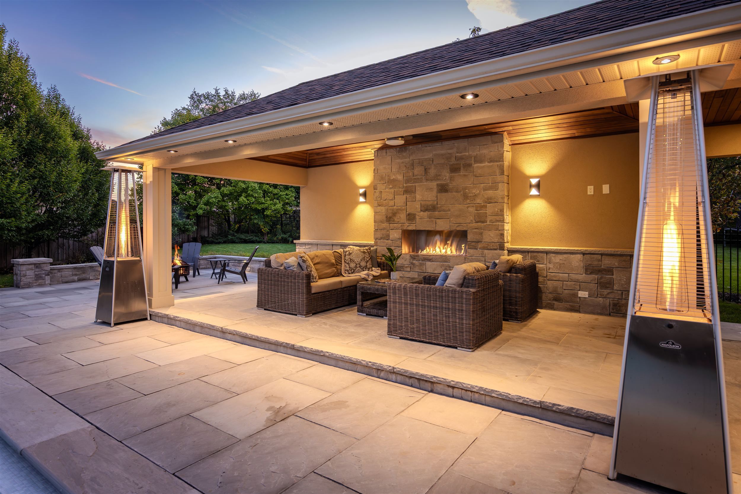 A backyard like this rarely becomes available and is a rare gem! 0. 32 acre lot (as per mpac) featuring a 20' x 26' inground concrete salt water pool with a two-sided spillover infinity edge, glass mosaic waterline tiles and a custom full-length (36') solid concrete entry steps. Enjoy resort-style amenities w/ an approx. 650 sq. Ft. Custom cabana, complete with a stone gas fireplace, cedar ceilings, a 2-piece outdoor bathroom, rough-in for outdoor shower,cedar change room, and an outdoor kitchen equipped with a large concrete counter-top, built-in bar fridge, napoleon grill & burner, & sink. The professionally landscaped yard includes approx. 1500 sq. Ft of natural stone patio and pool decking, architectural stone walls, raised planter beds, stone walkways, and landscape lighting throughout. Mature trees ensure privacy, while a large irrigated lawn area offers theperfect play space for kids. Step inside to a beautifully designed home featuring a main floor office w/ cathedral ceilings& a large window overlooking the front yard, a formal living room w/ gas fireplace and an extended laundry/mudroom with access door into tandem garage, plus a variance for an added tandem garage that can be built (as per seller's). The gourmet kitchen is equipped with high-end viking appliances and the family room features cathedral ceilings and a large upgraded window overlooking the pool, creating a stunning focal point. The basement has been professionally finished and offers a spacious recreational/games room, a 3-piece ensuite with steam shower & infrared sauna, a r/i for bar/kitchenette and two additional rooms that can be used as a bedroom and office or as additional storage areas. Perfectly situated on a quiet exclusive court, this property has great curb appeal illuminated by exterior pot lighting, it combines luxury, privacy and convenience- a true entertainer's paradise and family retreat!