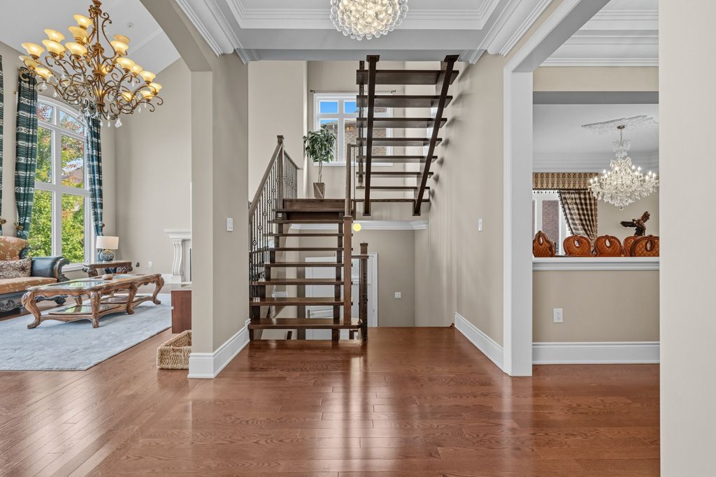 • Impressive foyer and living room with high ceilings and big windows.