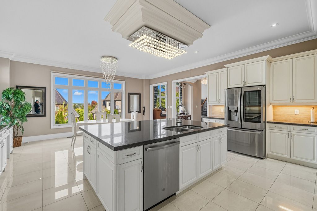• Gourmet kitchen with a breakfast area and access to a private deck.