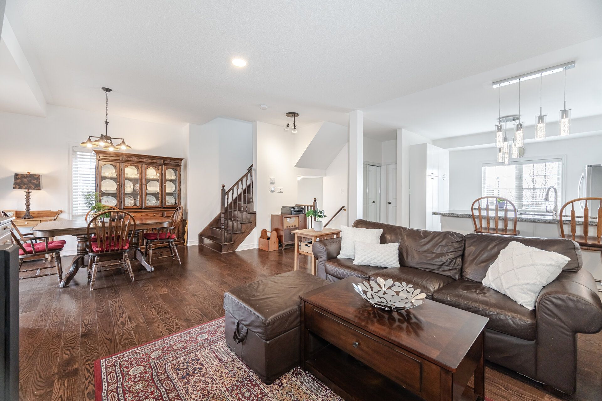 A great opportunity to own an executive freehold endunit townhouse with a double car garage situated in caledon east's family friendly pathway community - move in ready! This bright well maintained home offers a functional open concept floor plan with 9 ft ceilings and boasts approx 1949 sq ft of luxury living space. Features include an upgraded gourmet kitchen with stainless steel appliances, granite countertops, centre island, breakfast bar and a bonus wall of pantry cupboards for additional storage space. The oversized great room is perfect for entertaining and allows for a formal dining space with a walkout to a covered balcony (22 ft x 10 ft). Hardwood floors can be found on the main living area. The two(2) car garage offers home entry plus 2 car parking in the driveway. An oak staircase leads to the upper level featuring 3 ample sized bedrooms - primary with ensuite (sep shower and tub) and a convenient upper floor laundry. An added bonus is the main floor family room that could easily be repurposed as a 4th bedroom, home office or gym. Additional storage can be found in the basement level. Neutral decor and good curb appeal in a great accessible location. Enjoy some of the extensive amenities -only minutes away including the caledon east community complex offering a fitness centre, pool and arena as well as easy access to soccer and baseball fields and the caledon biking and walking trail system - schools and shopping nearby too! Show with confidence!